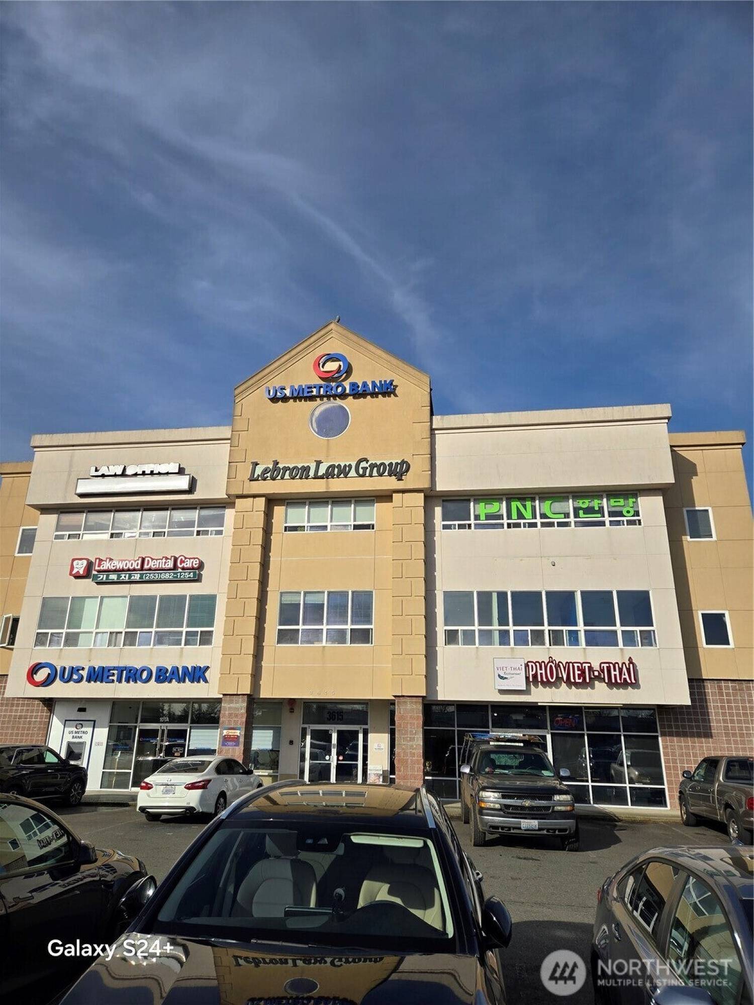 Three-story office building in Lakewood's business district.
