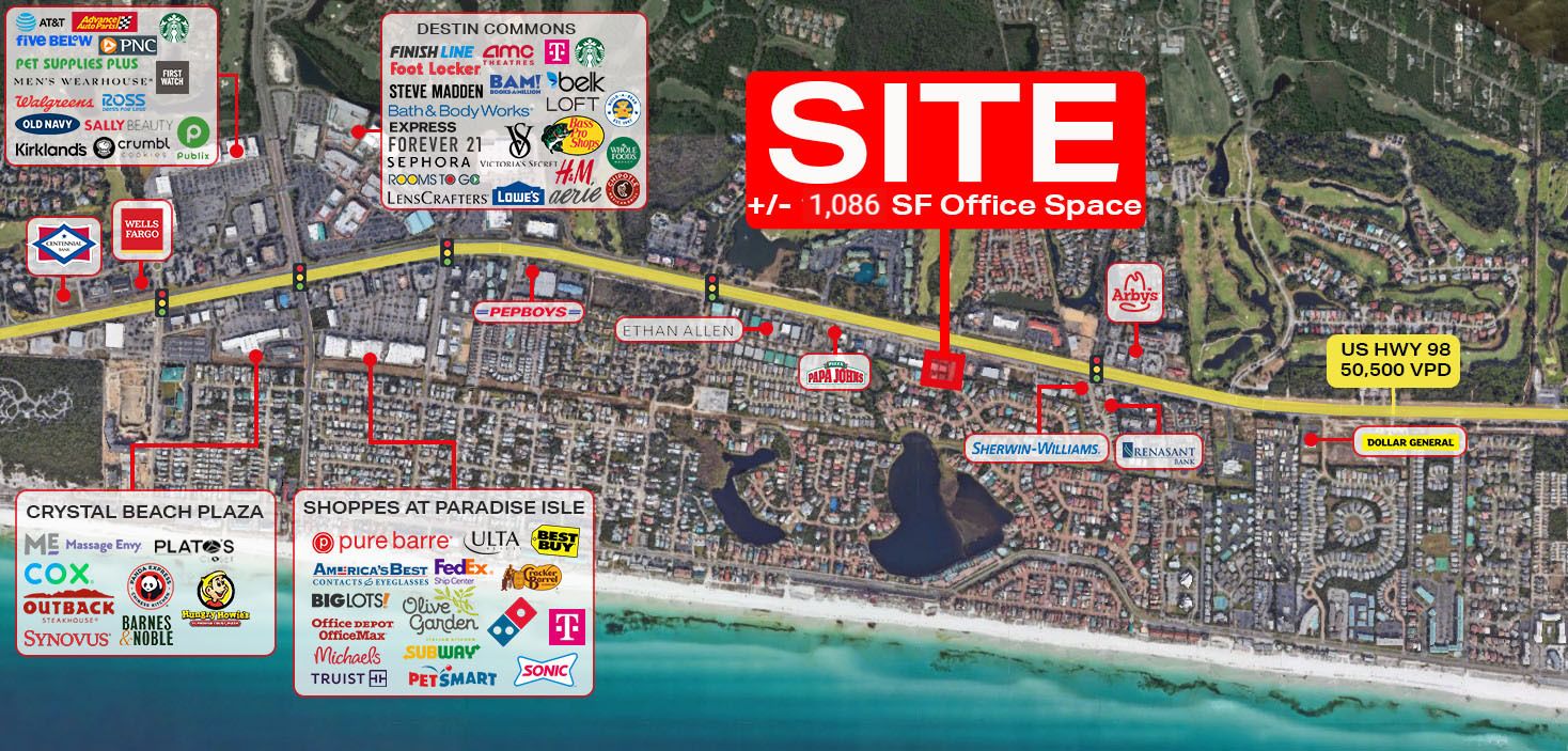 1,086 SF office/retail space near Destin's attractions and beaches.