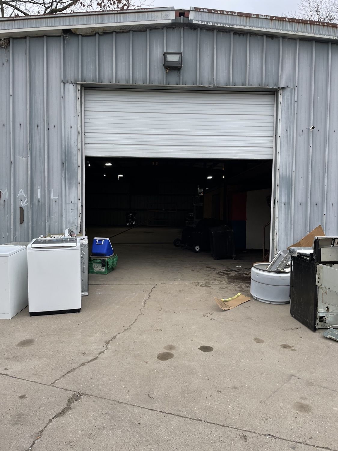 Retail center with storage building on Gratiot Avenue.