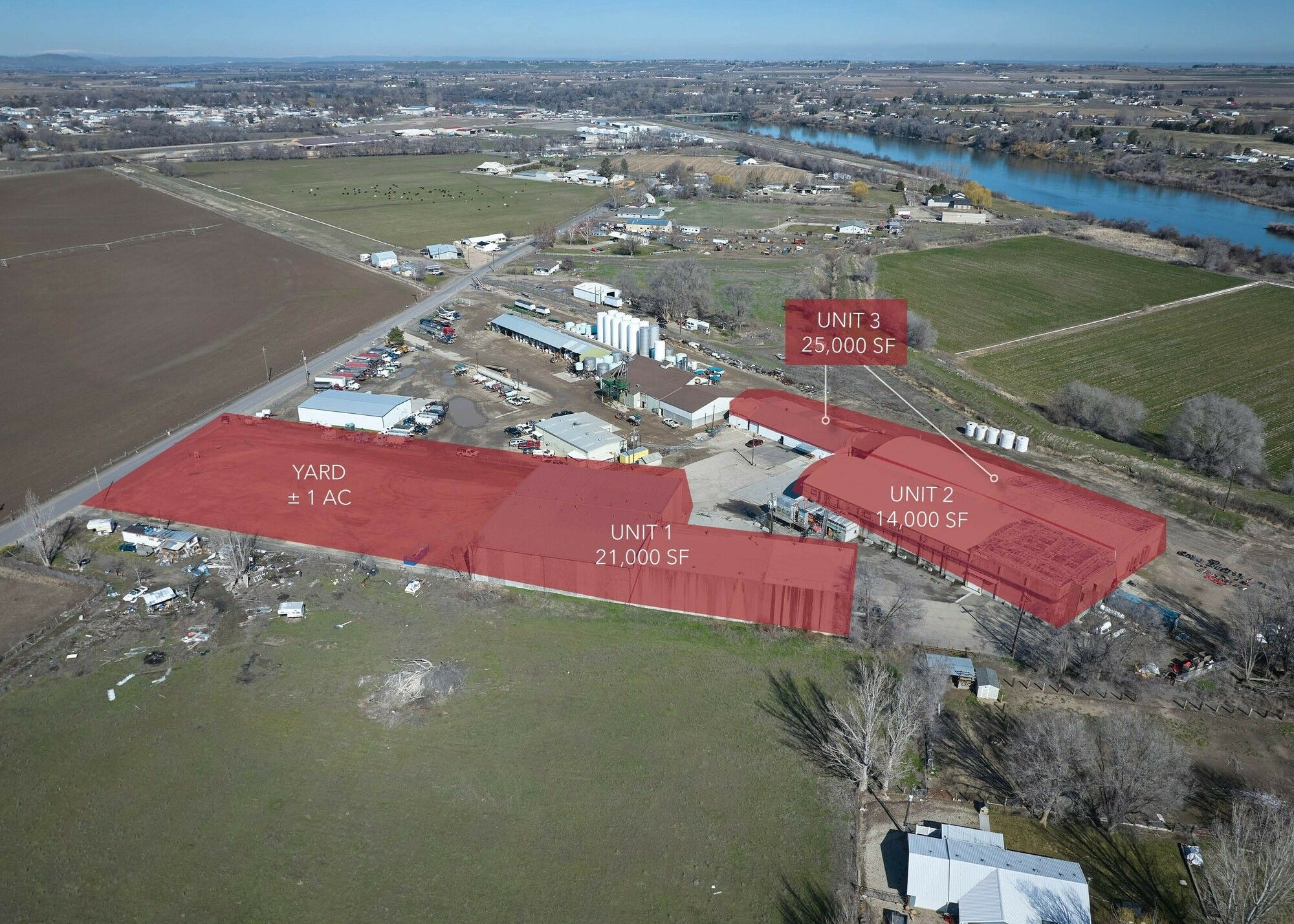 Industrial and yard space for lease with cooling storage.