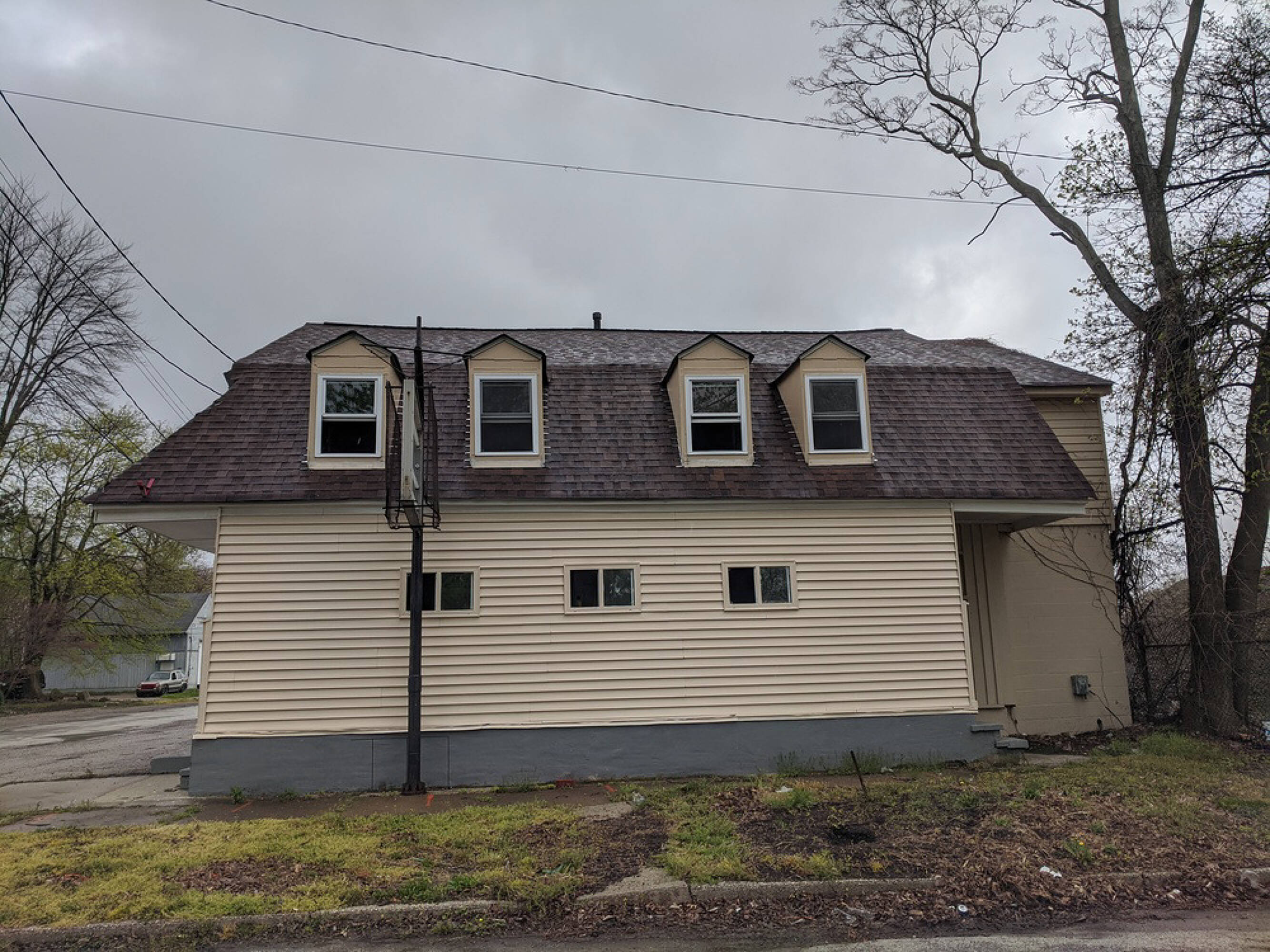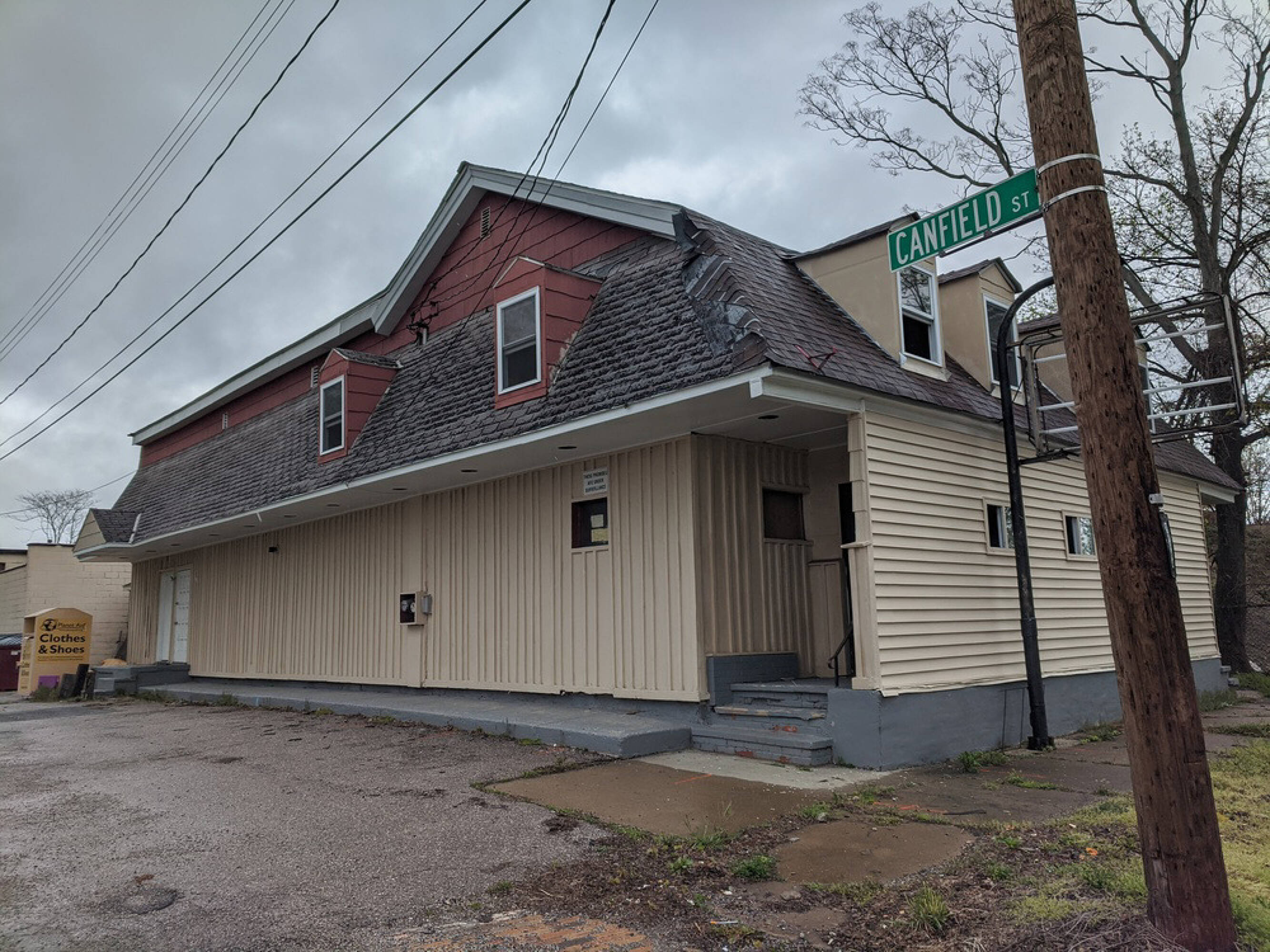 Historic mixed-use building in downtown Painesville, Ohio, ready for renovation.