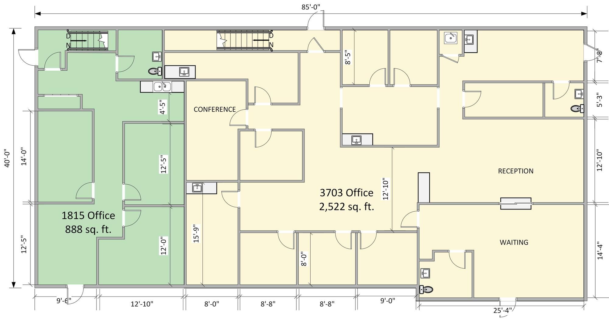 Office spaces for lease with finished lower levels.