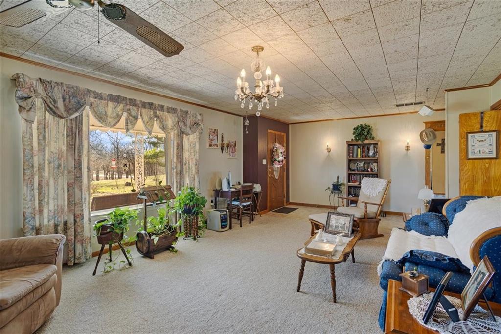 Well-maintained home, metal shop, and ponds on scenic land.
