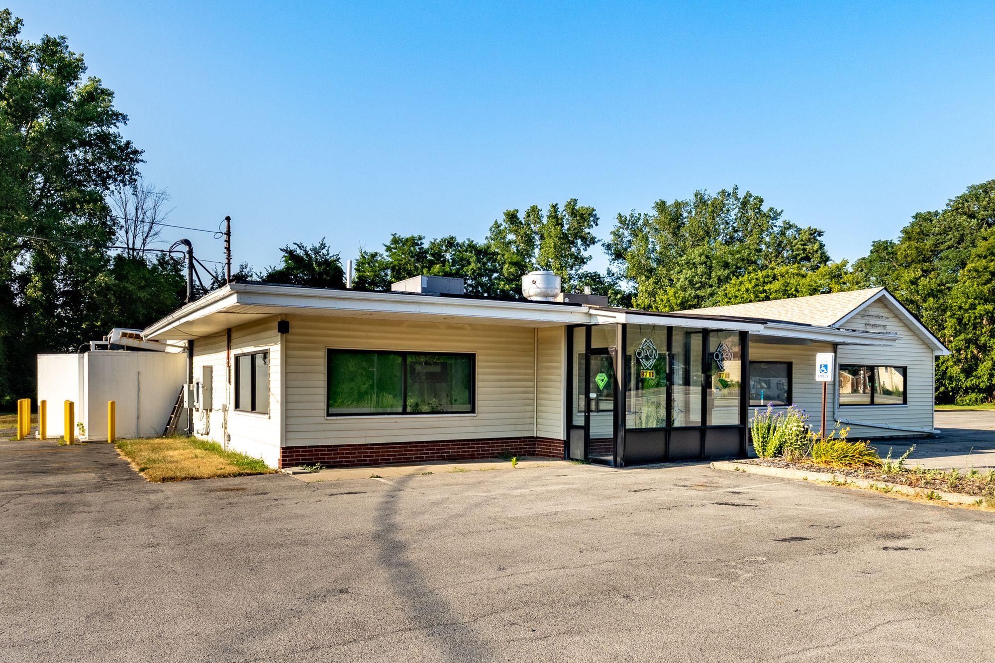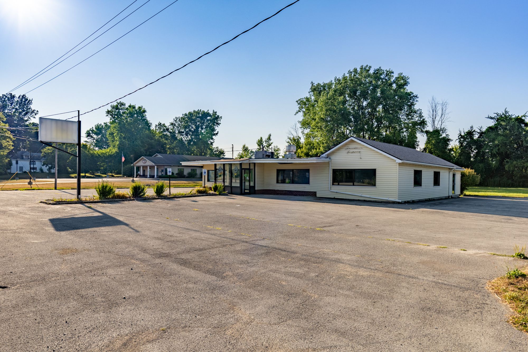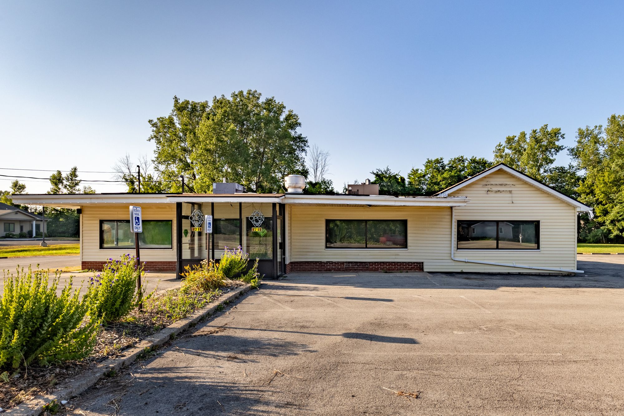 Versatile commercial space with high visibility and extensive parking.