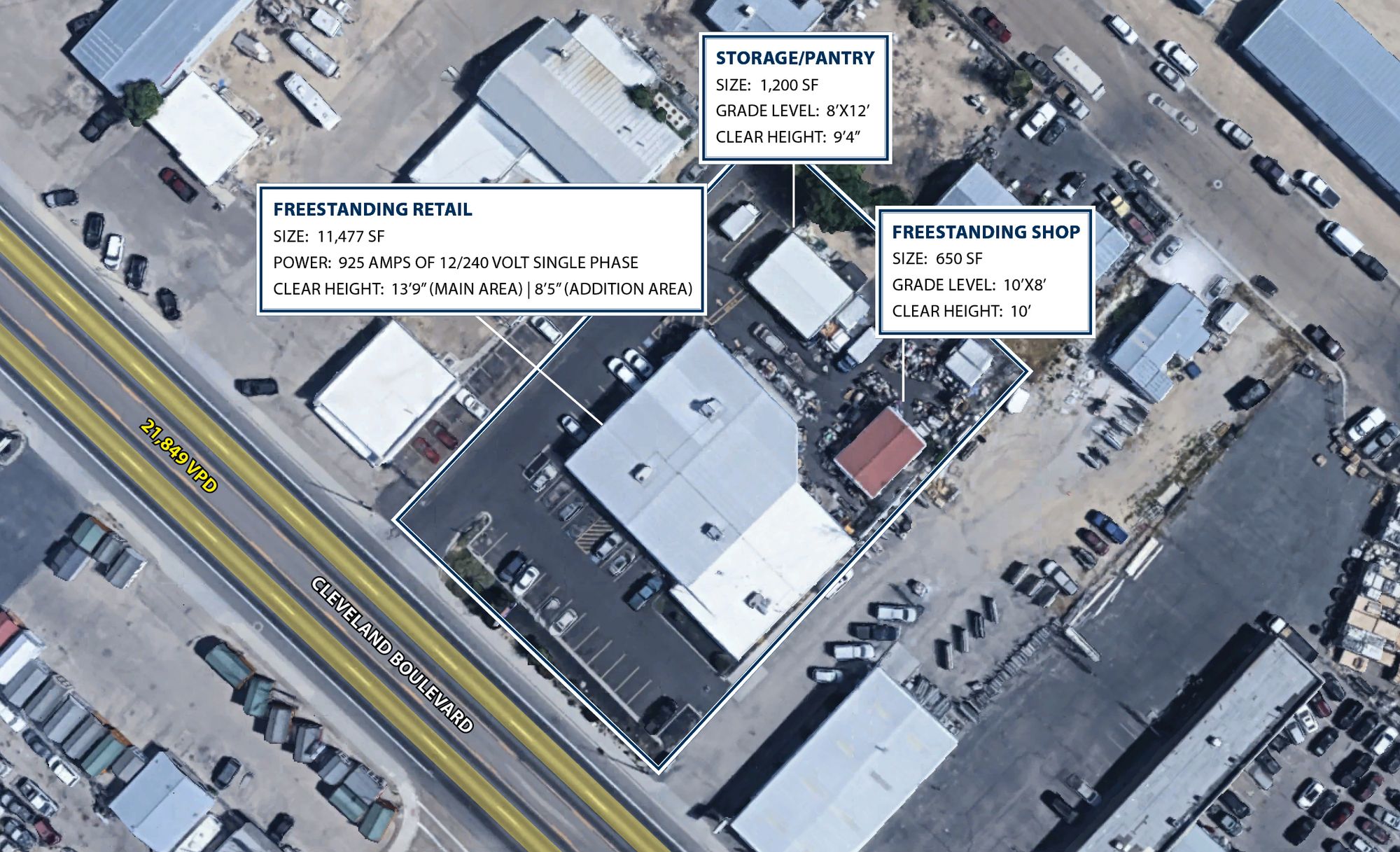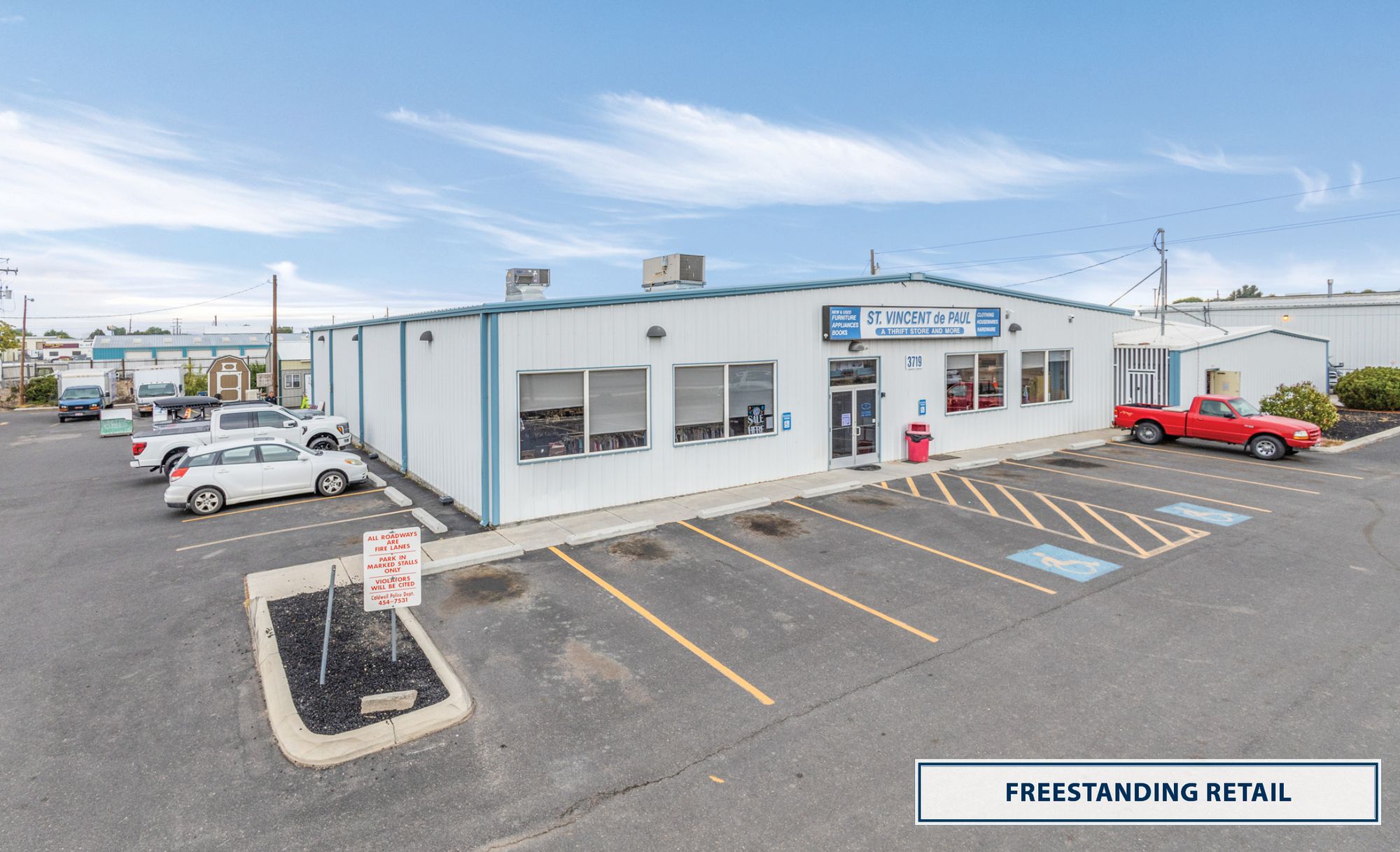 Freestanding retail/industrial flex property with high-visibility frontage.