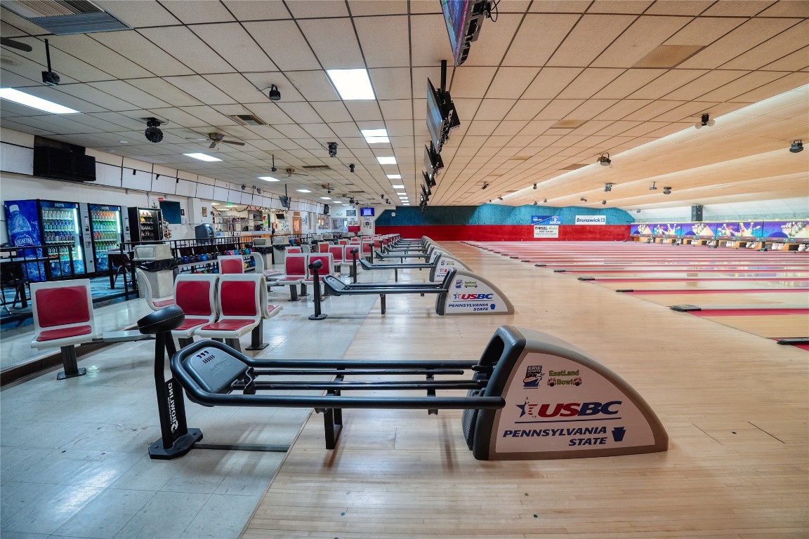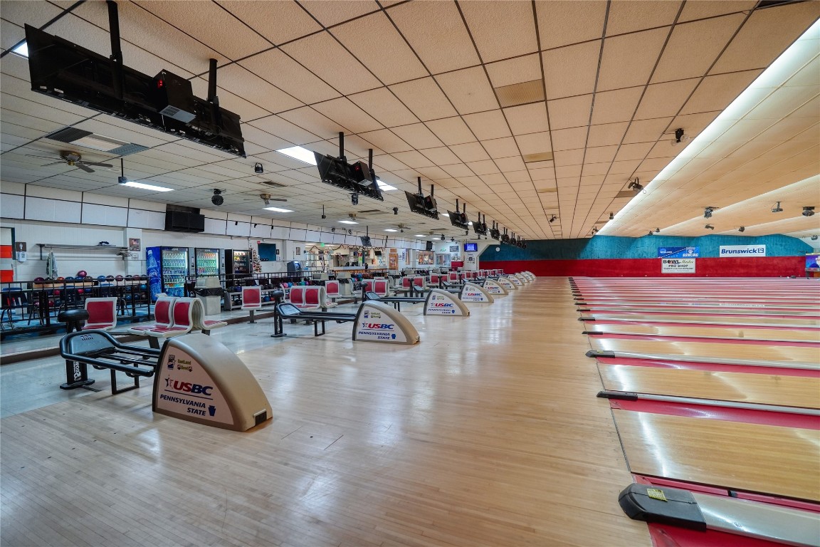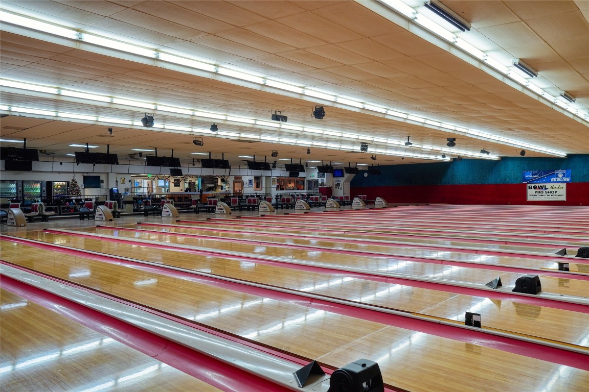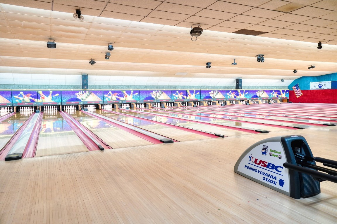Fully operational bowling alley with bar, restaurant, and parking.