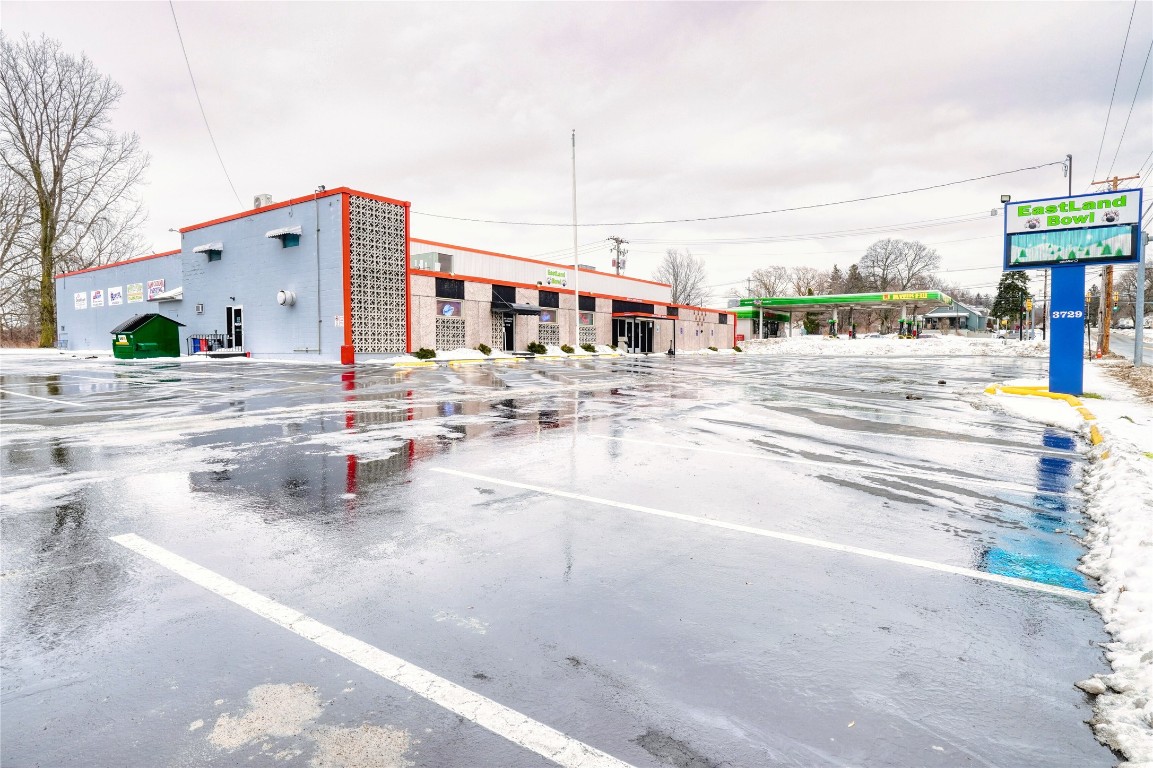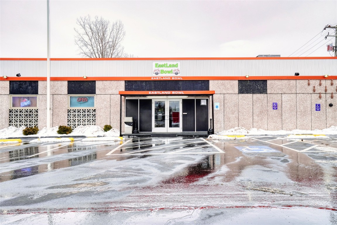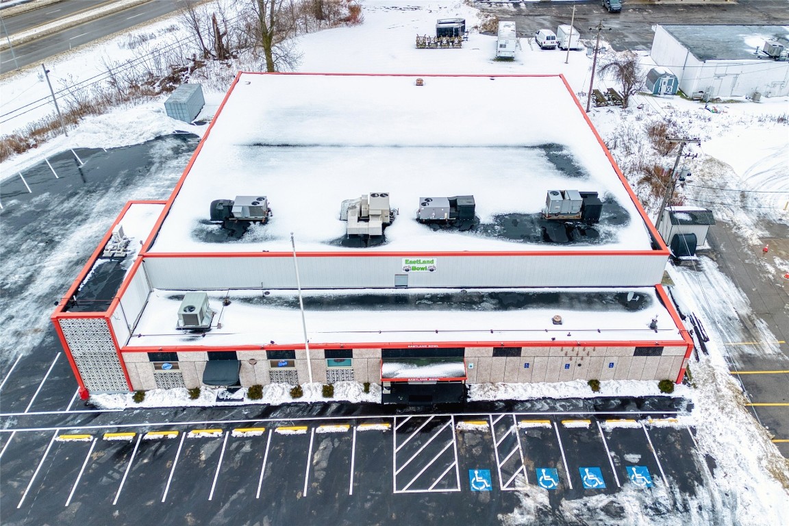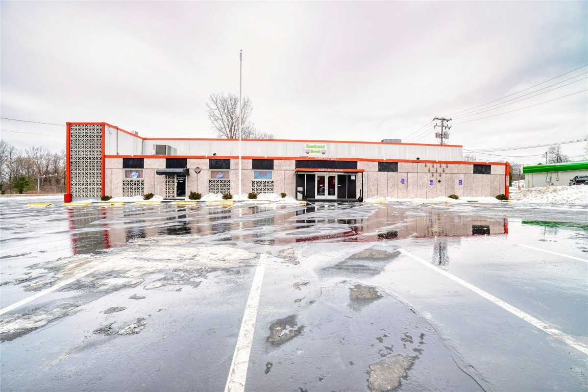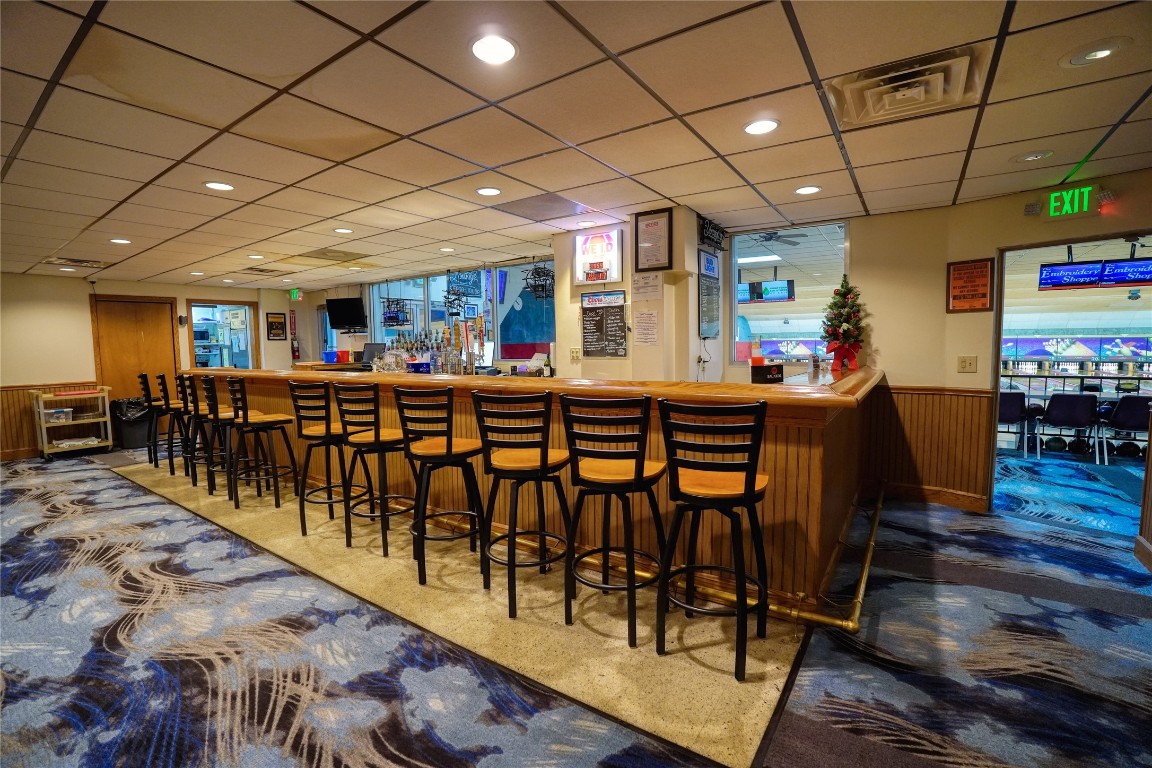 Fully operational bowling alley with bar, restaurant, and parking.