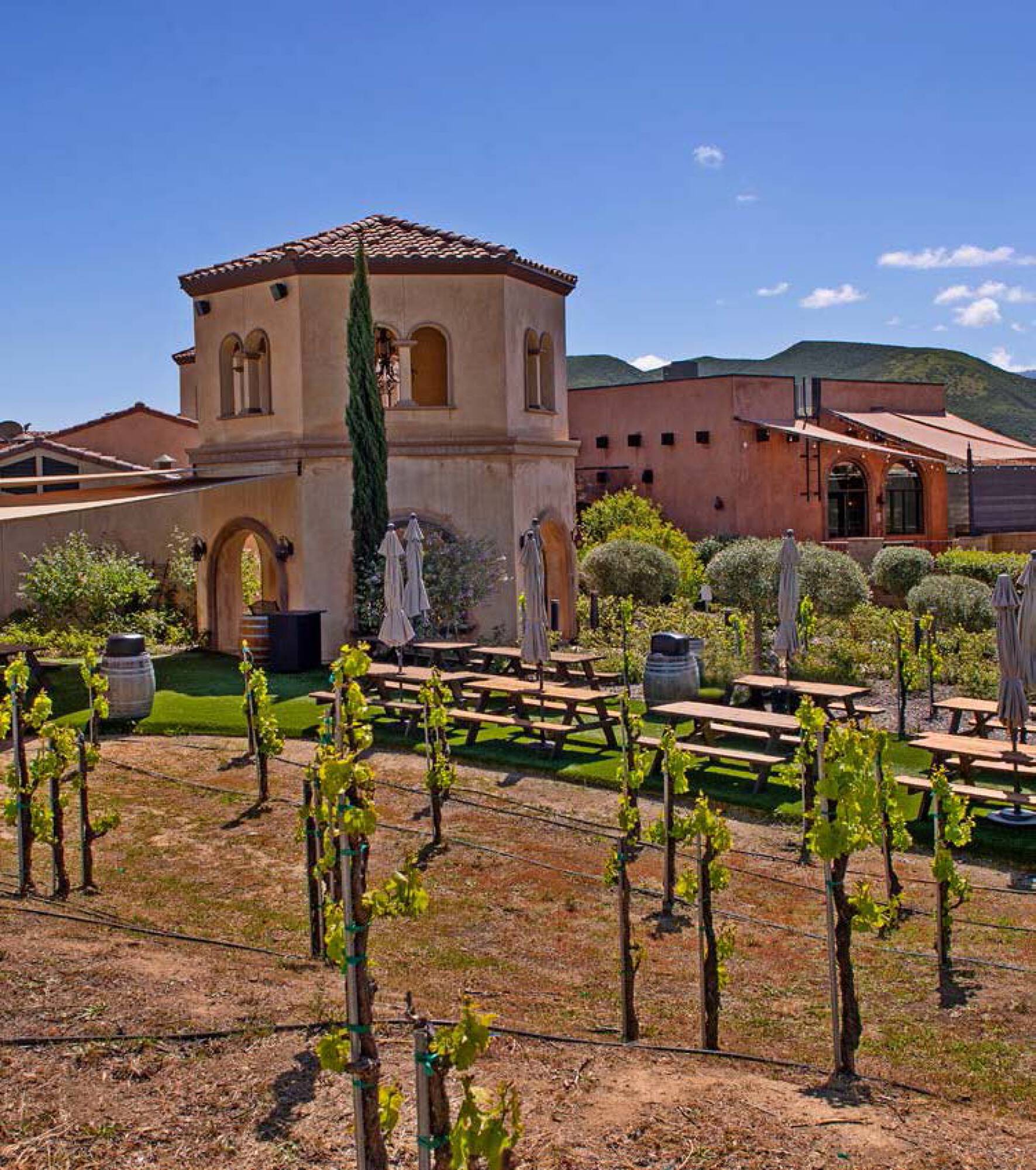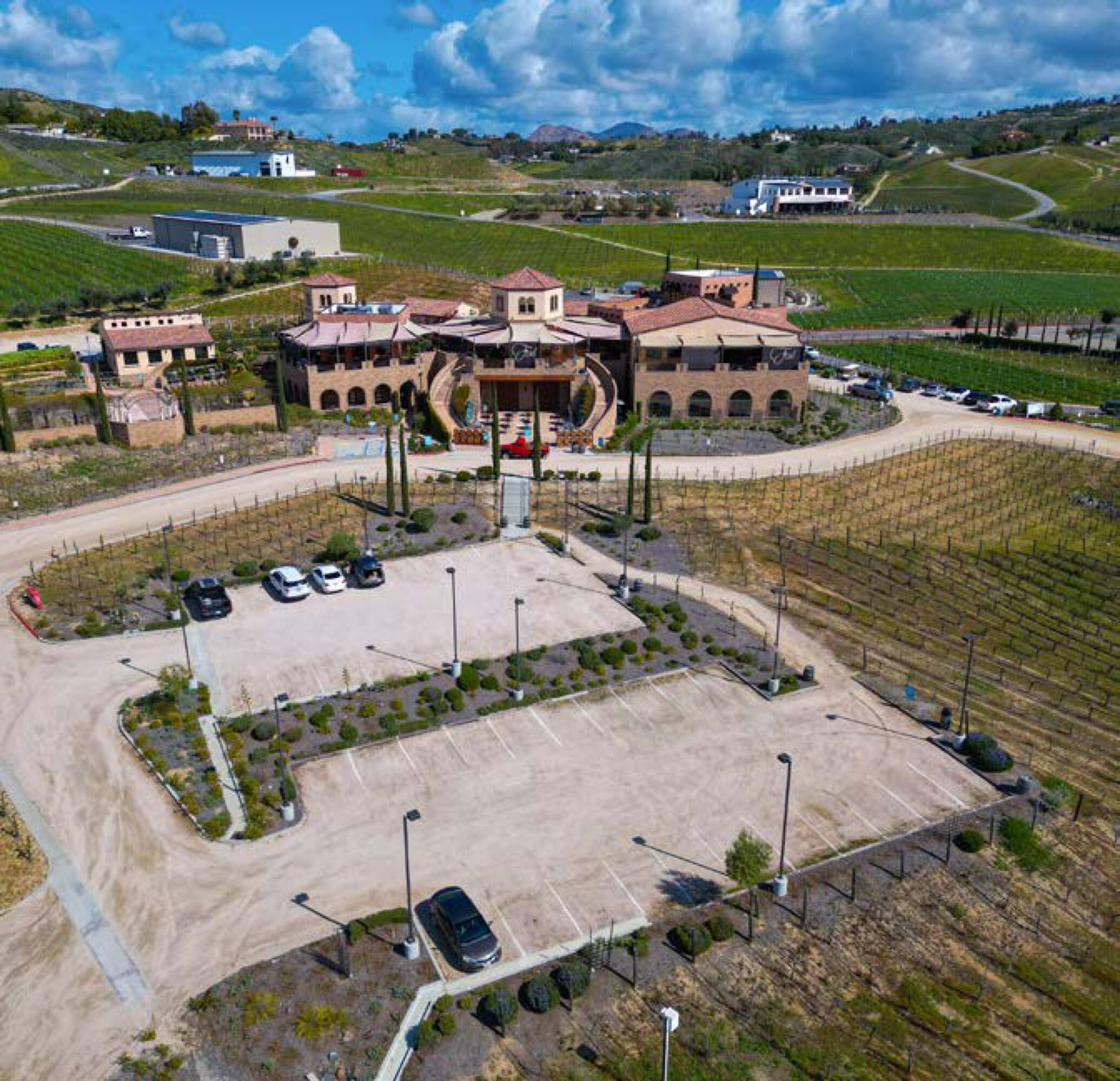 Located on the renowned De Portola Wine Trail in Temecula Valley Wine Country, this iconic winery property features approximately 11 gross acres improved with a premier, fully entitled winery, hospitality, and event facility. The property includes over 24,000 square feet of enclosed improvements and approximately 15,500 square feet of covered patios, along with vineyard plantings, expansive event spaces, commercial kitchens, a tasting room, and a banquet hall. The property benefits from favorable entitlements granted by Riverside County, including winery and tasting room use, special occasion and banquet hall use, approved hours for special events (10:00 AM – 10:00 PM), up to 104 special occasion events per year, and up to 200 guests per special occasion event, as well as unlimited wine club or private events. The property features a comprehensive and highly flexible layout designed to accommodate multiple simultaneous activities, including a wine tasting room with bar and retail space, restaurant and bistro-style dining areas, a large banquet hall with stage, bar, and seating, multiple commercial kitchens designed for high-volume catering, private dining rooms, meeting rooms, and lounges, bride and groom suites and private preparation rooms, landscaped ceremony and event venues, multiple covered and open-air patios with vineyard views, and production, storage, and support areas adaptable to alternative uses. The scale and configuration of the improvements allow for exceptional flexibility across hospitality, events, and private or leased operations. The property offers significant flexibility and upside for future ownership, including continued operation as a winery or tasting venue under new ownership and management, event-driven revenue through weddings, public concerts, and private functions, lease to third-party winery, event or hospitality operators, corporate retreat, private club, or brand experience destination, cultural, lifestyle, or legacy estate for private ownership, and potential structured investment strategies.