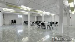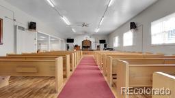 Spacious church with daycare, offices, commercial kitchen, and seating.