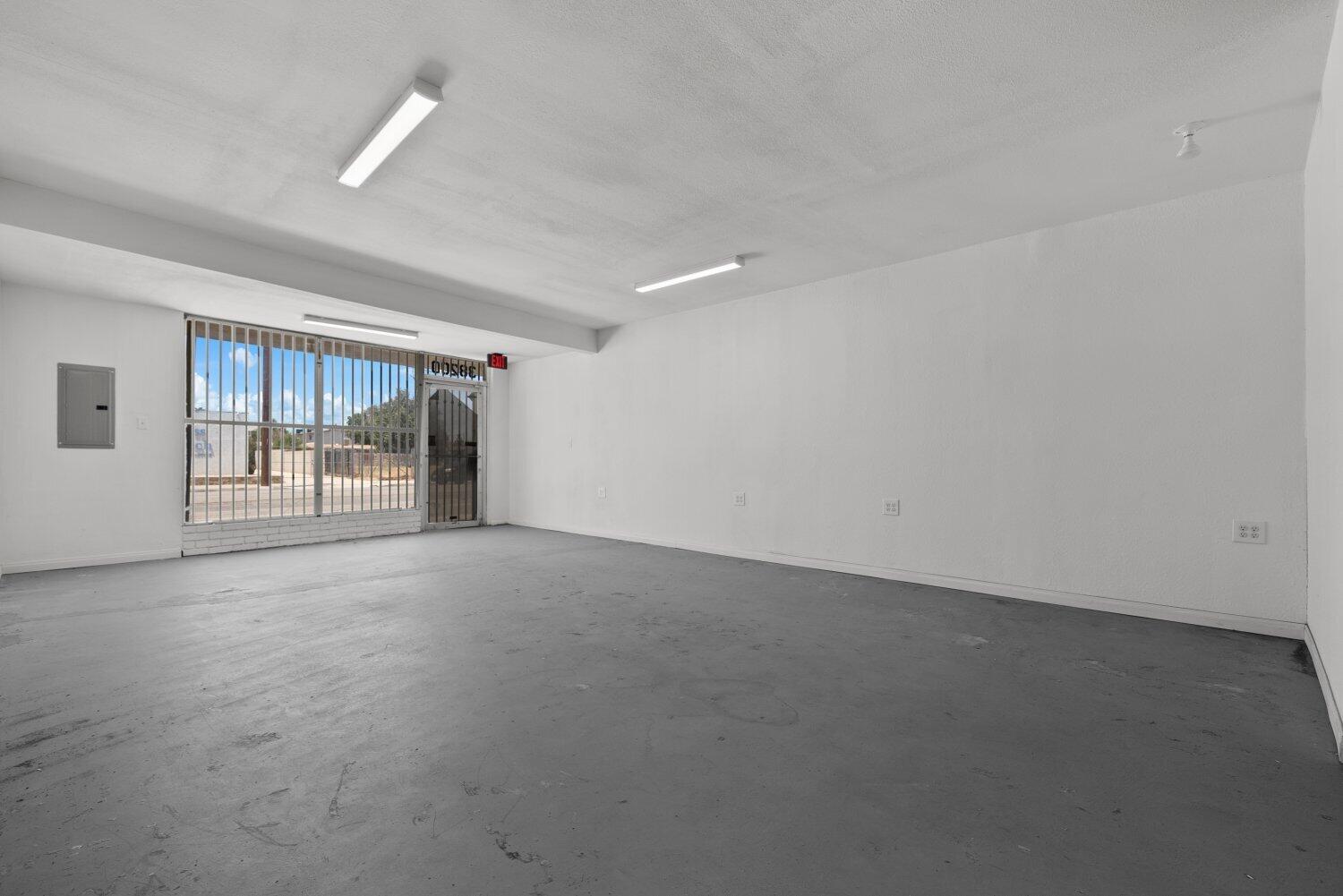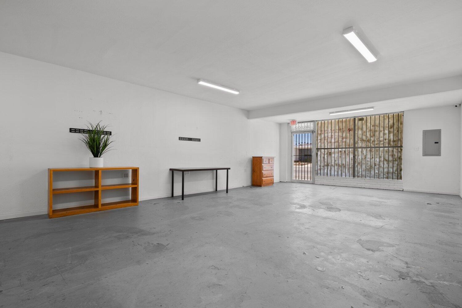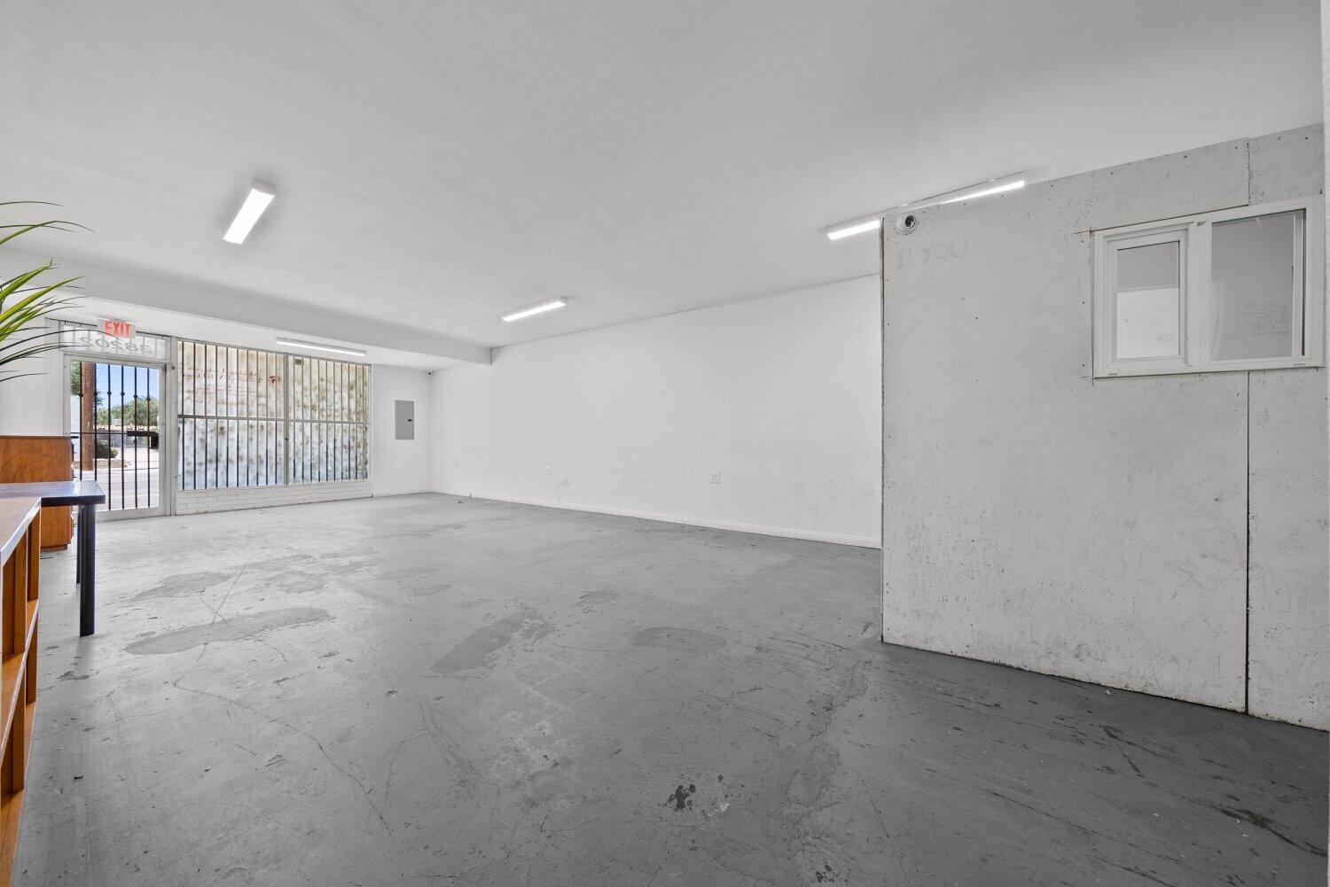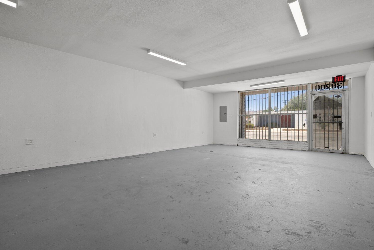 This Palmdale property offers an investment opportunity with 1,517 sq. ft. of space on a 2,567 sq. ft. lot. The interior is bright and provides possibilities for a variety of businesses or creative ventures. A bathroom is located at the back of the property. The rear area is enclosed with a gate.