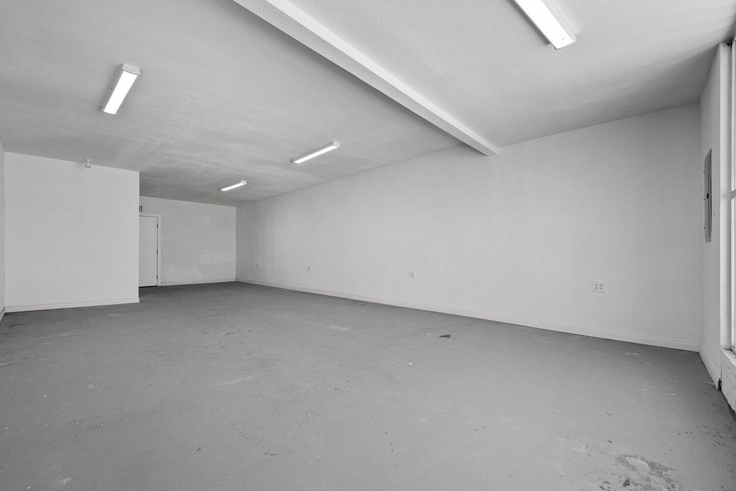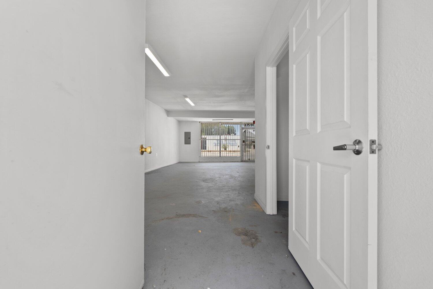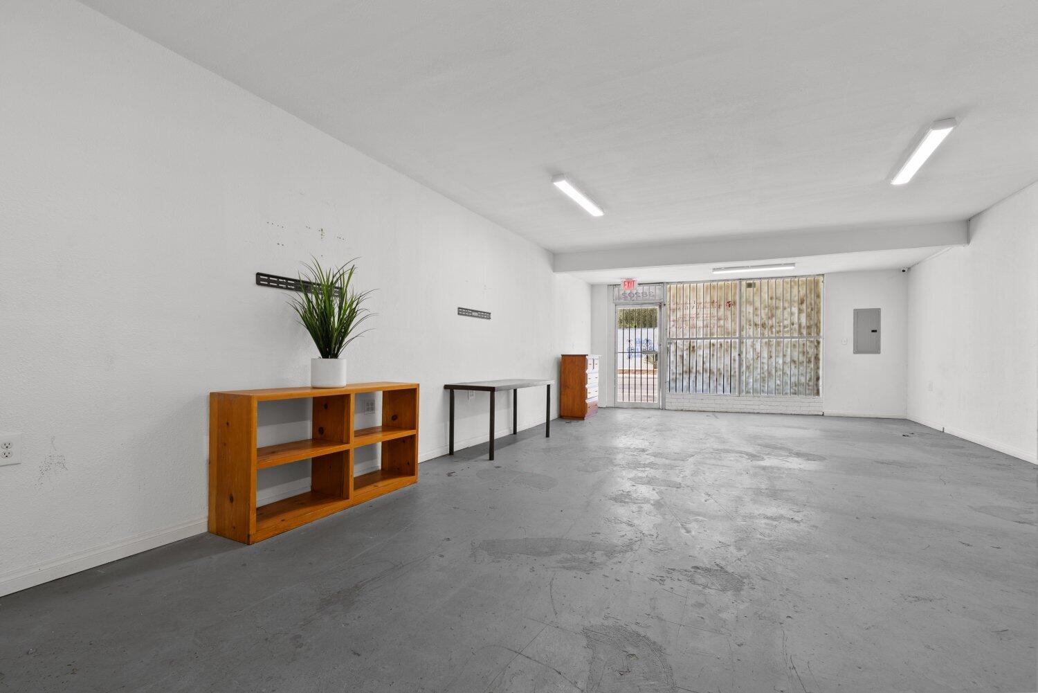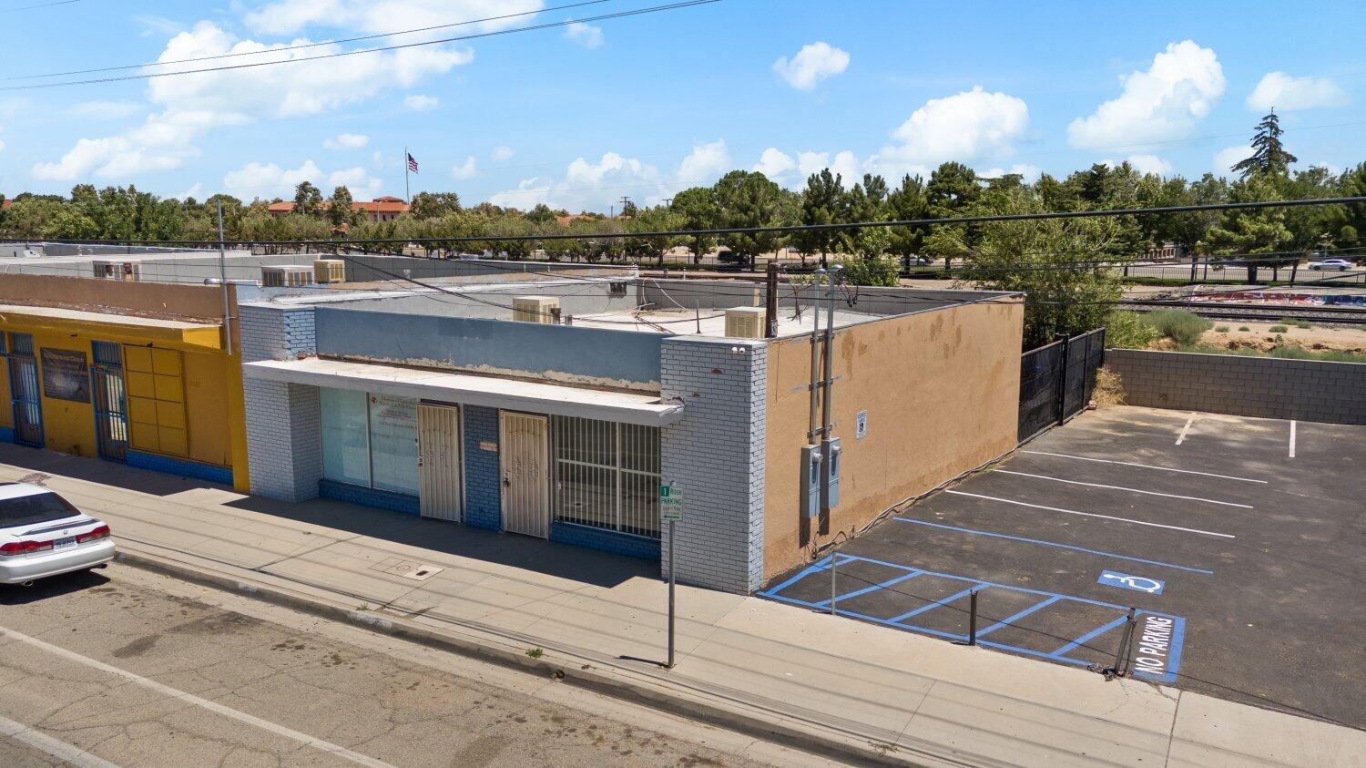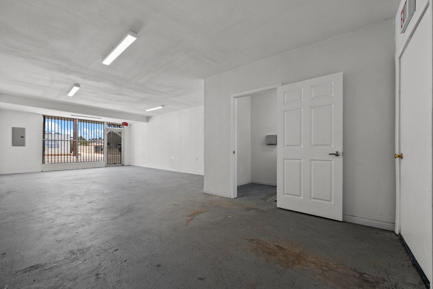 This Palmdale property offers an investment opportunity with 1,517 sq. ft. of space on a 2,567 sq. ft. lot. The interior is bright and provides possibilities for a variety of businesses or creative ventures. A bathroom is located at the back of the property. The rear area is enclosed with a gate.