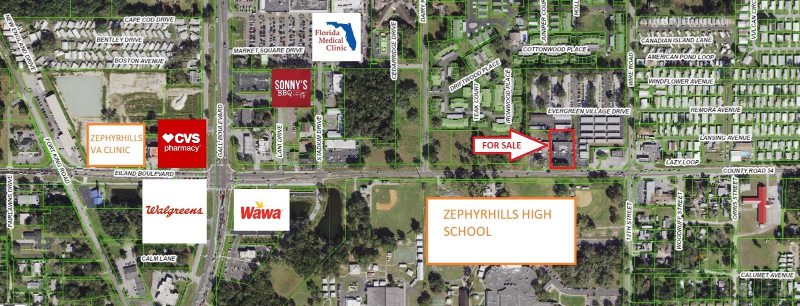 Commercial property available for rent in Zephyrhills, Florida.
