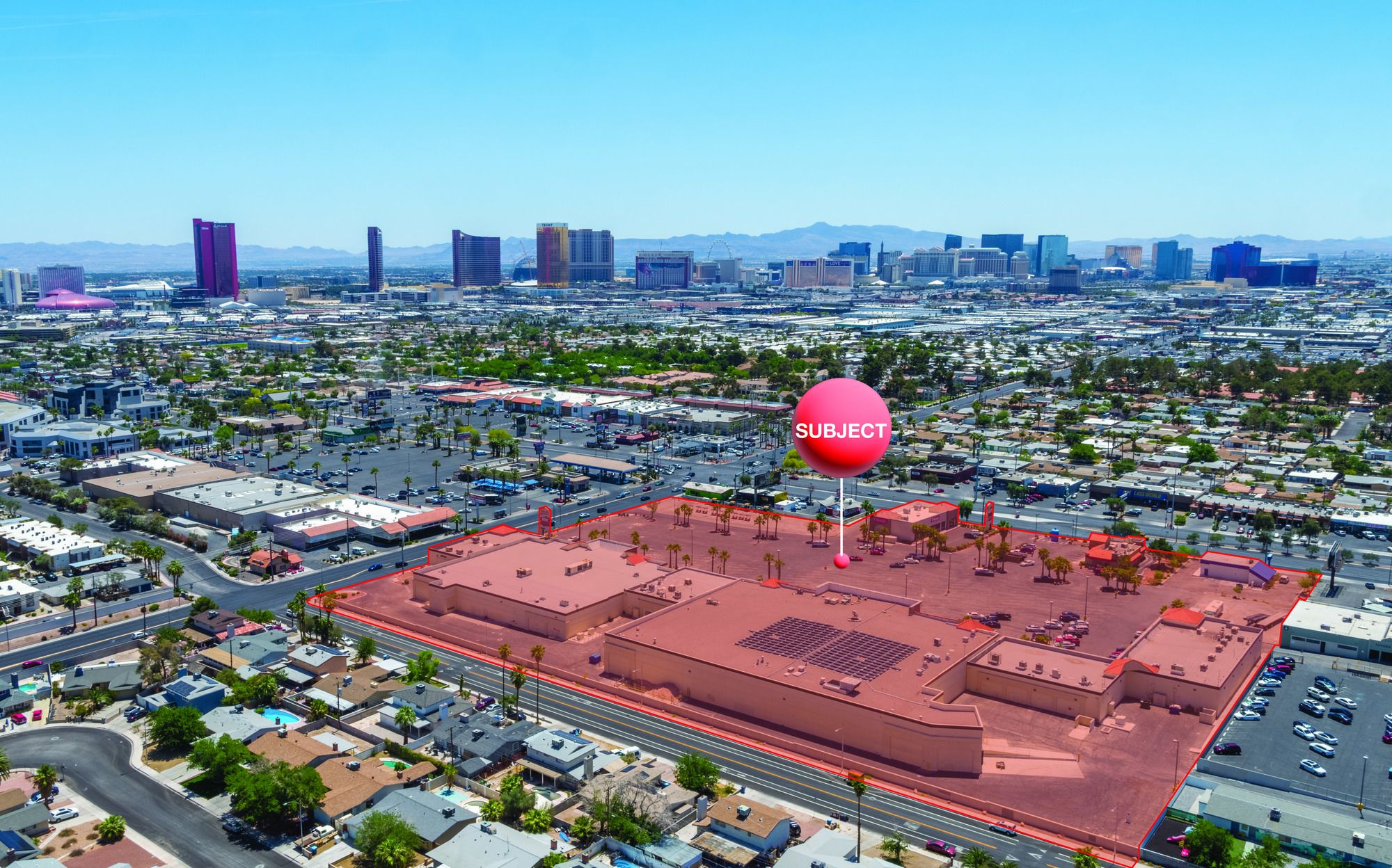 Retail and shopping center space for lease near The Strip.