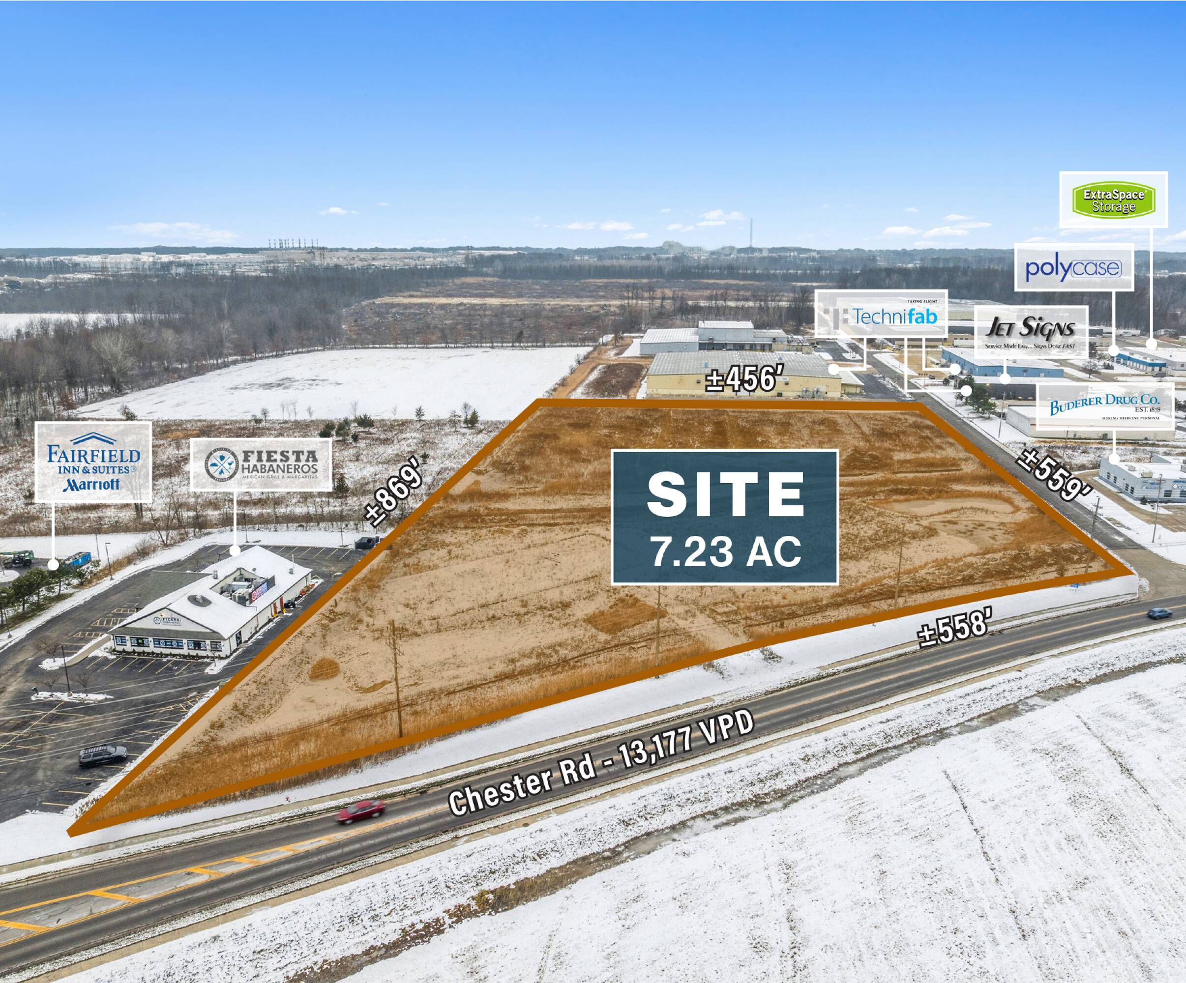 7.23 acres of commercial land for sale.