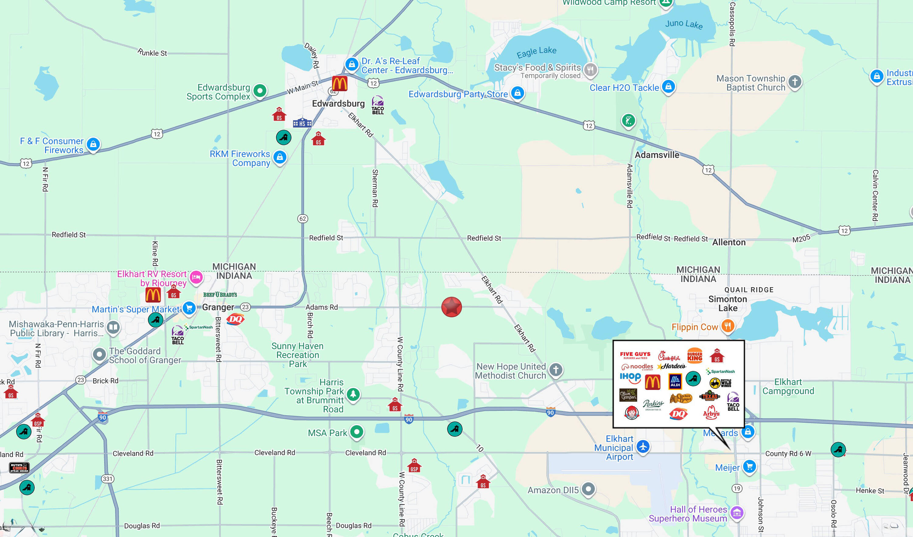 Prime 80-acre land opportunity with development potential in Granger, Indiana.