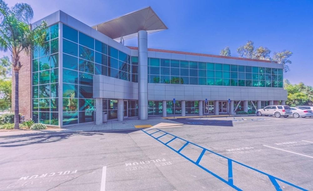 Two-story office building with multiple suites and freeway visibility.