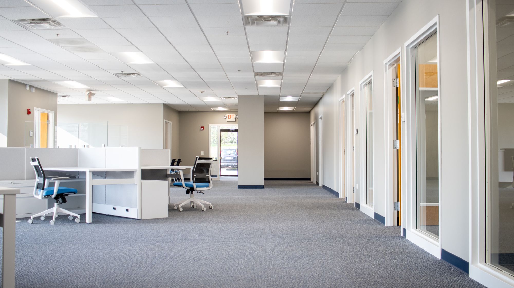 Office suites with private entrances, restrooms, and independent utilities.