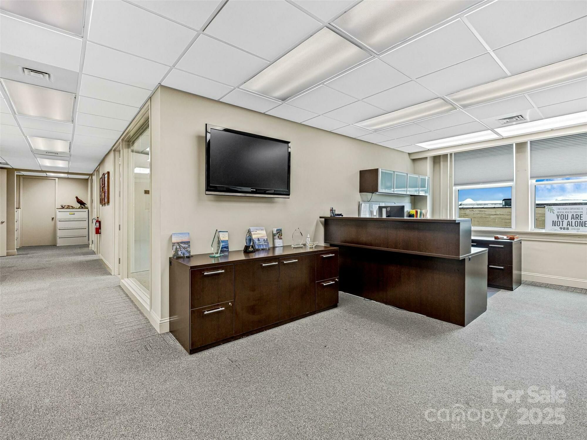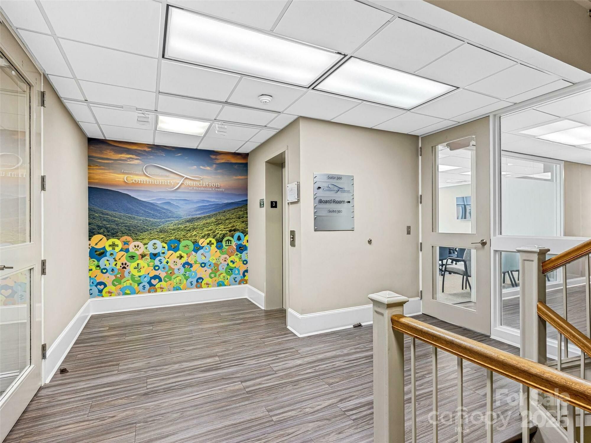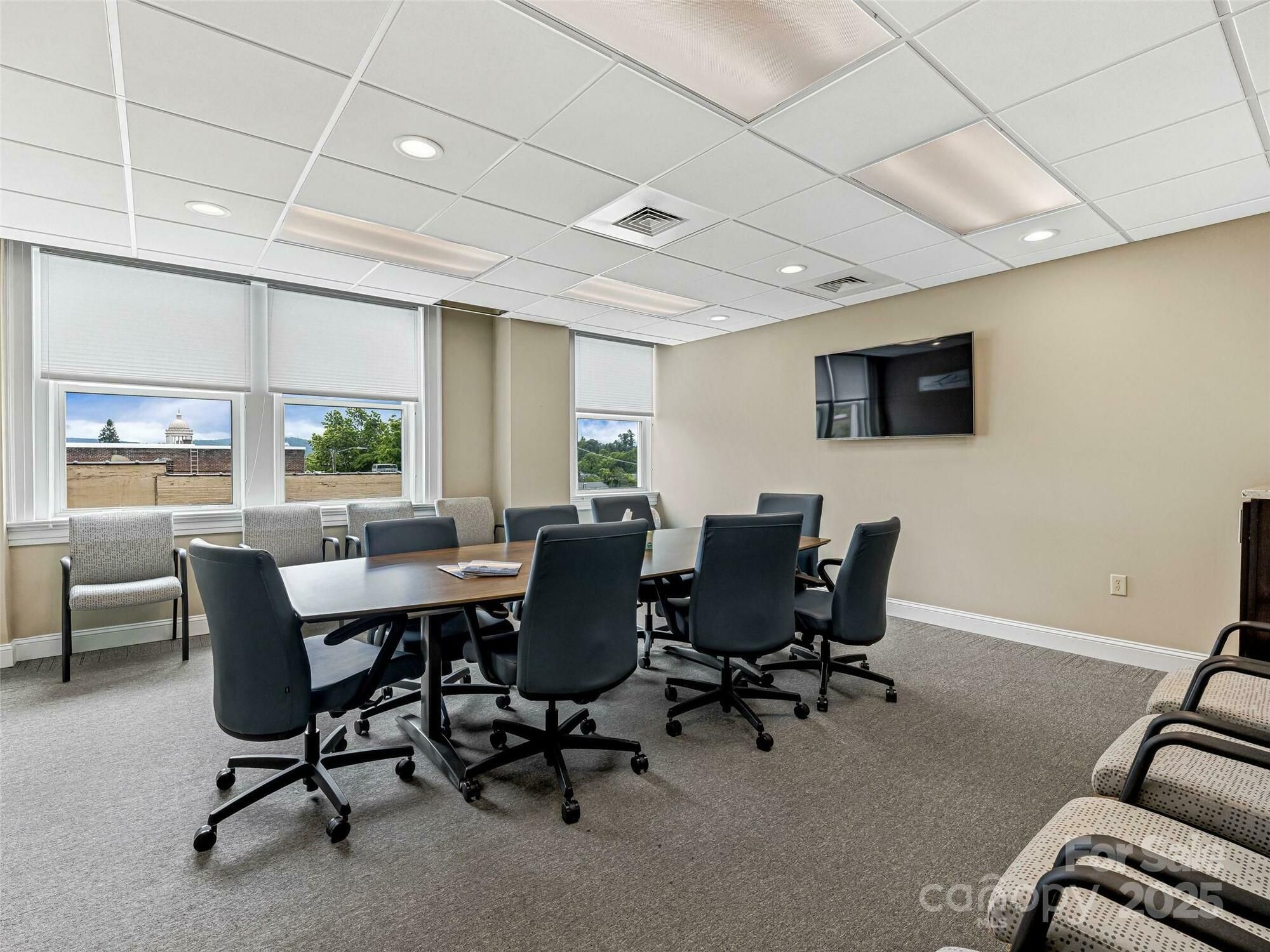 This property features: Prime location in Historic Downtown Hendersonville at the corner of 4th Avenue West and Main Street.; Class A office space spanning the entire 3rd floor (5,700 square feet).; Includes **seven to eight private offices, a spacious conference room, and an adjacent kitchen.**