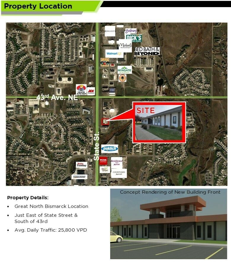 Office spaces for lease in North Bismarck with high traffic.