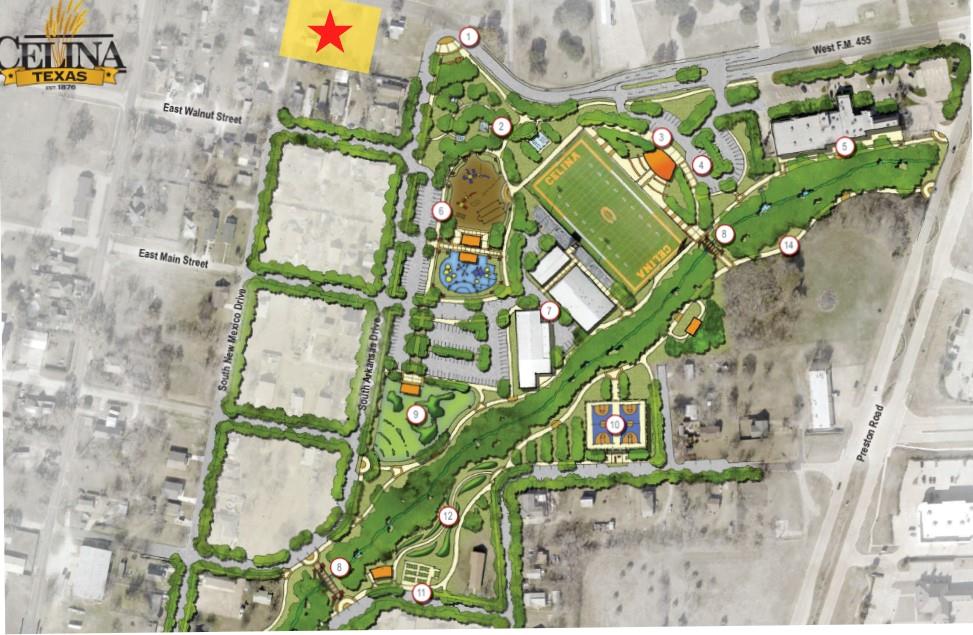 Strategic development site near Celina's Civic Hub and Ousley Urban Park.