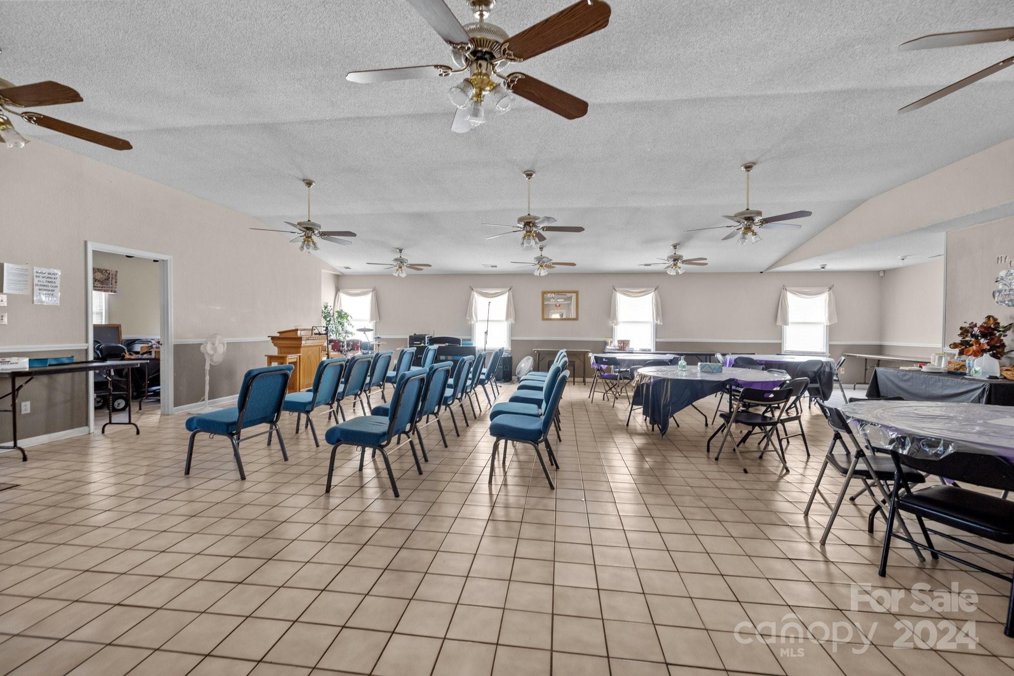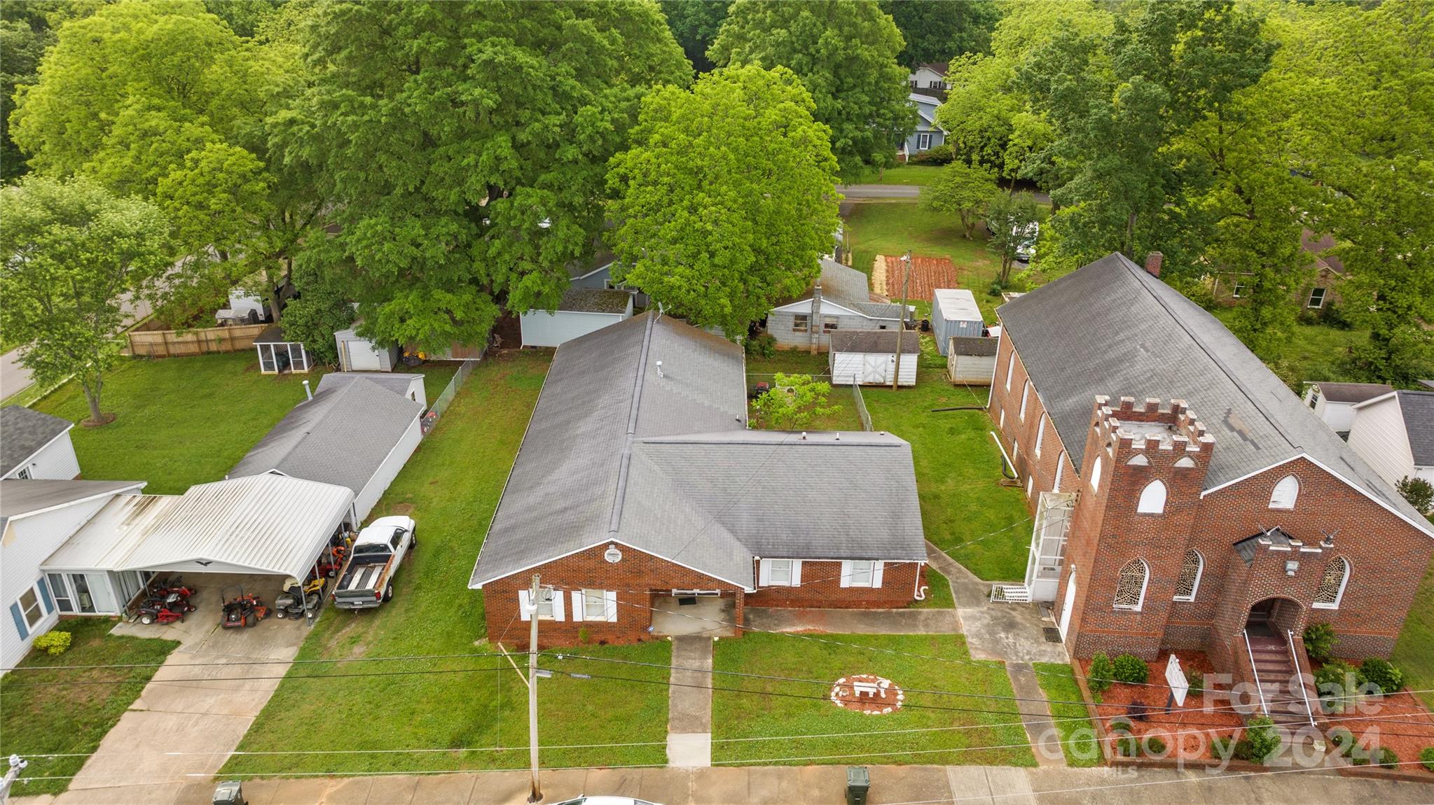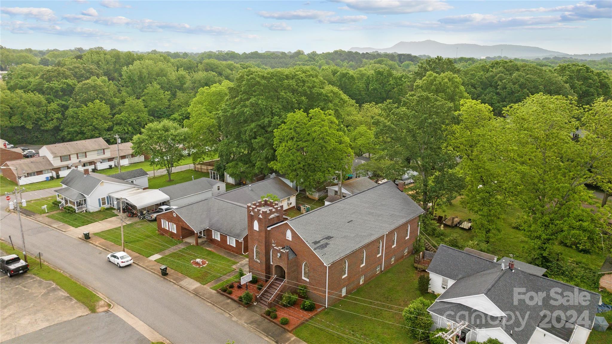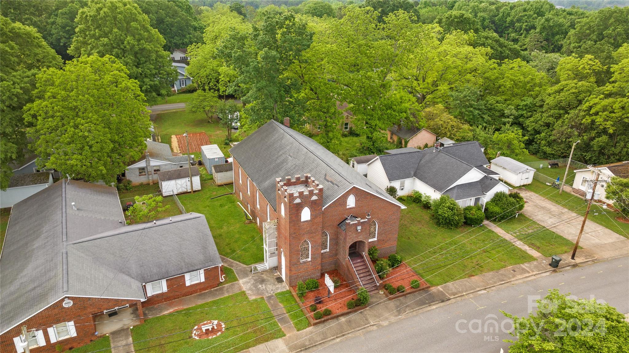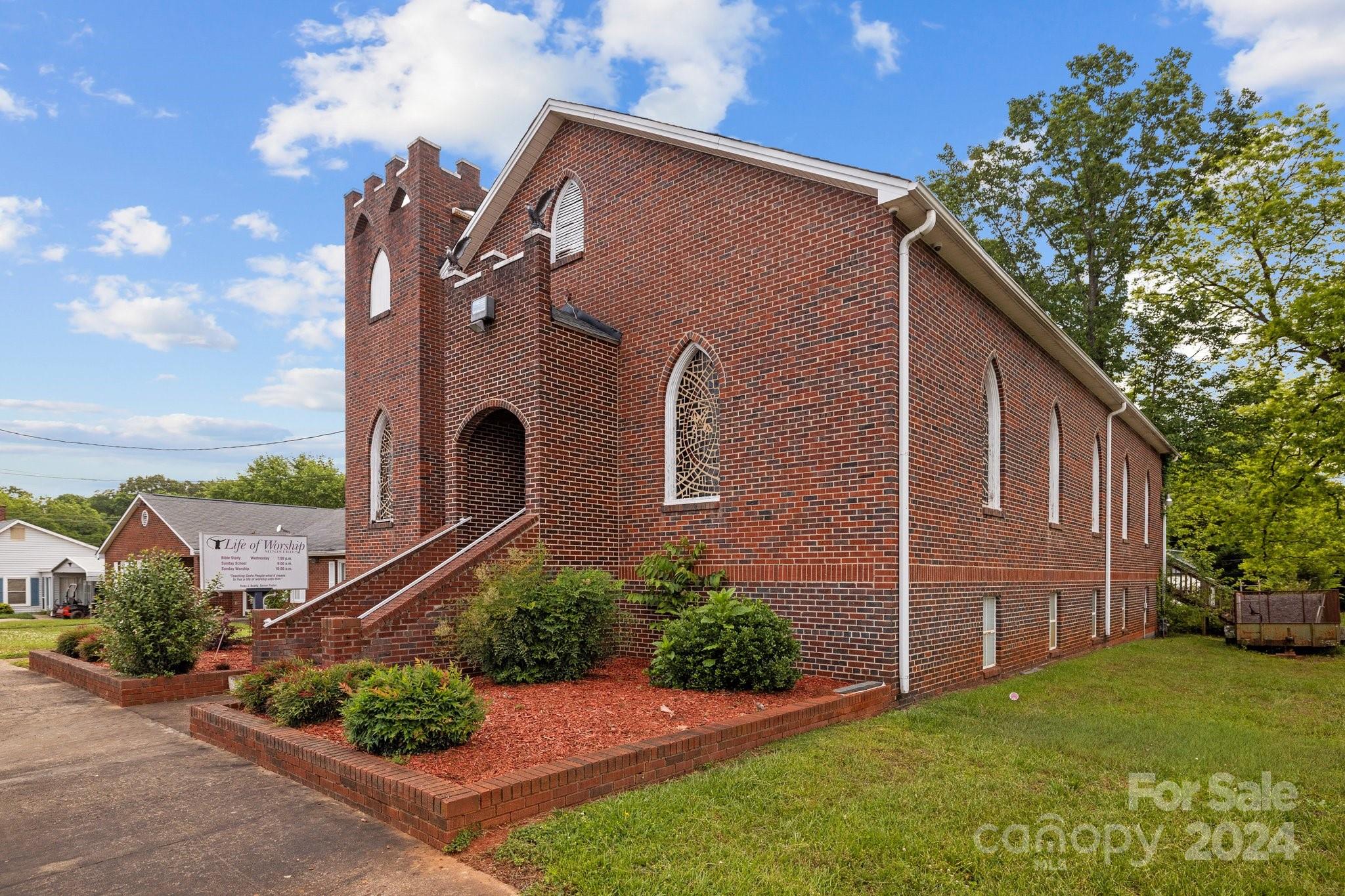 This offering features an all-brick church and an adjacent lot containing an all-brick fellowship hall. The church requires some improvements. The property includes a fully finished basement with several classrooms and a full kitchen. The fellowship hall, situated on the adjacent lot, is reported to be in good condition. The properties are being sold together as a package. Interested parties should contact the City of Kings Mountain to confirm set-back requirements.