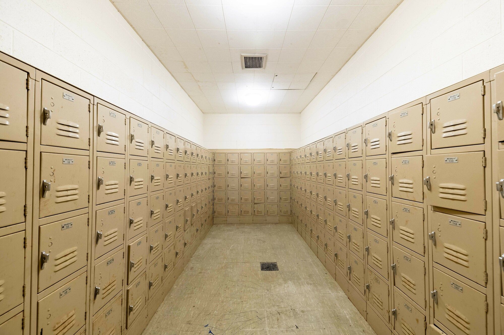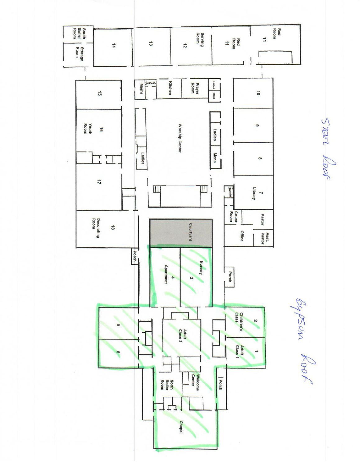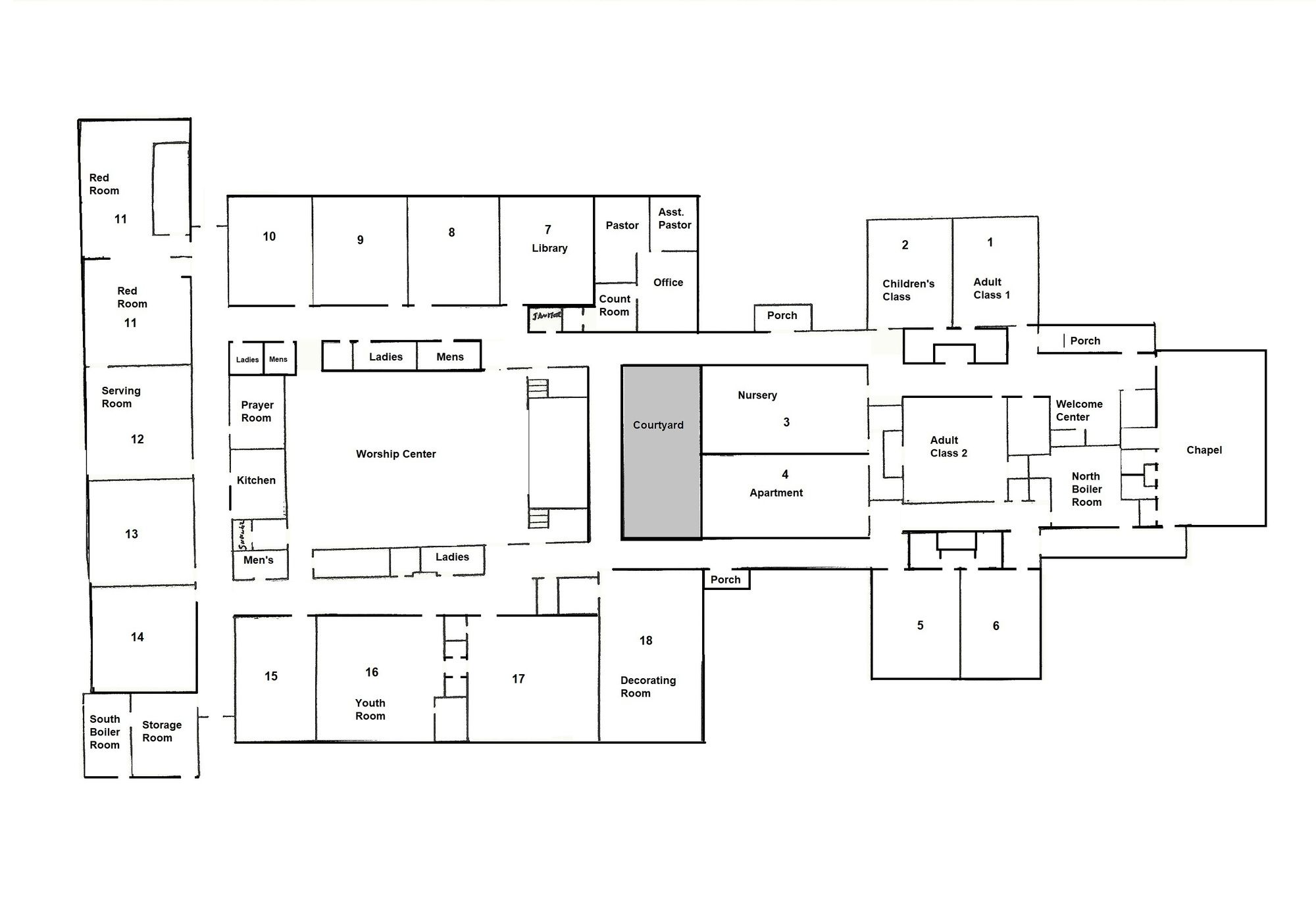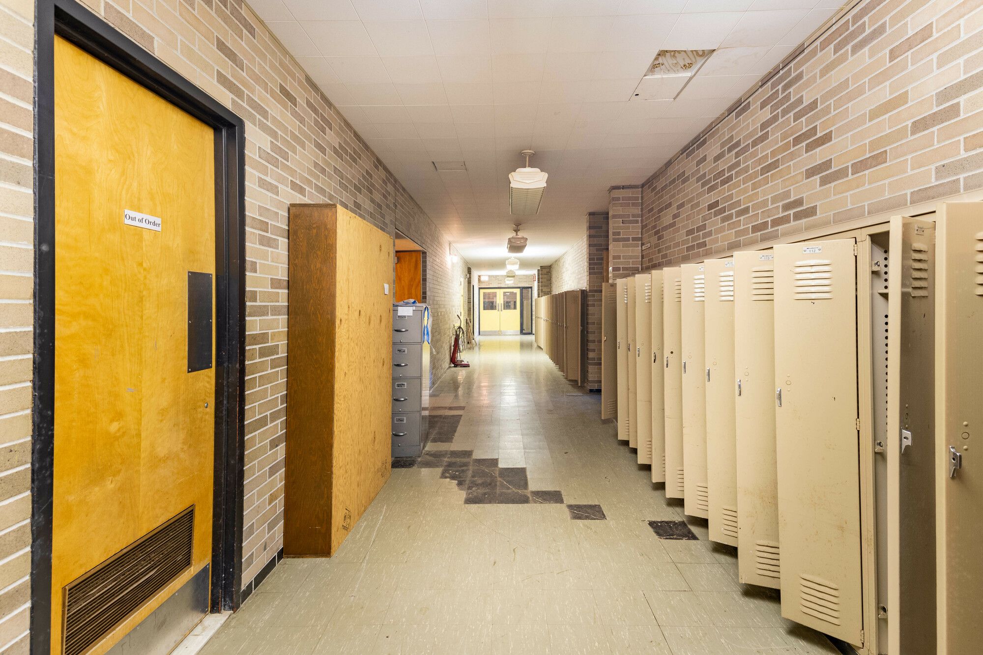 Former school building with classrooms, gymnasium, kitchen, and play yard.