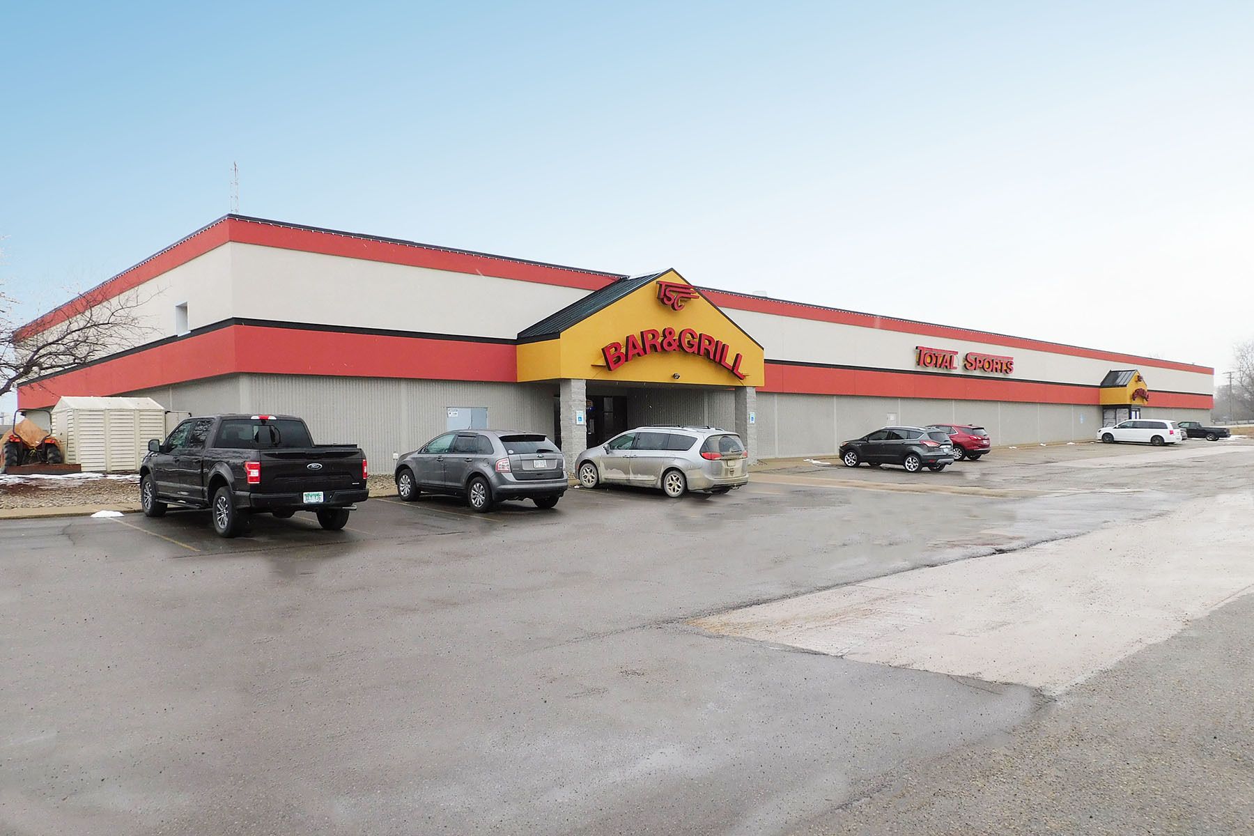 Remodeled sports and entertainment center with full bar and kitchen.