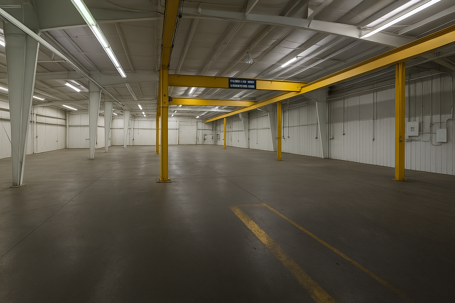 Versatile industrial space with high ceilings and crane system.