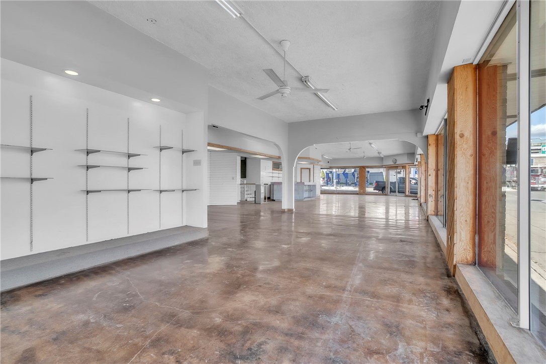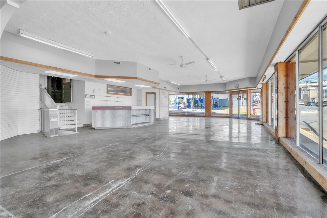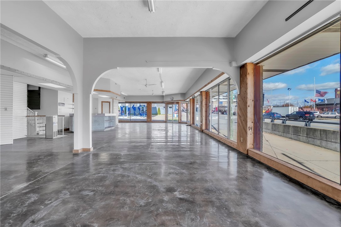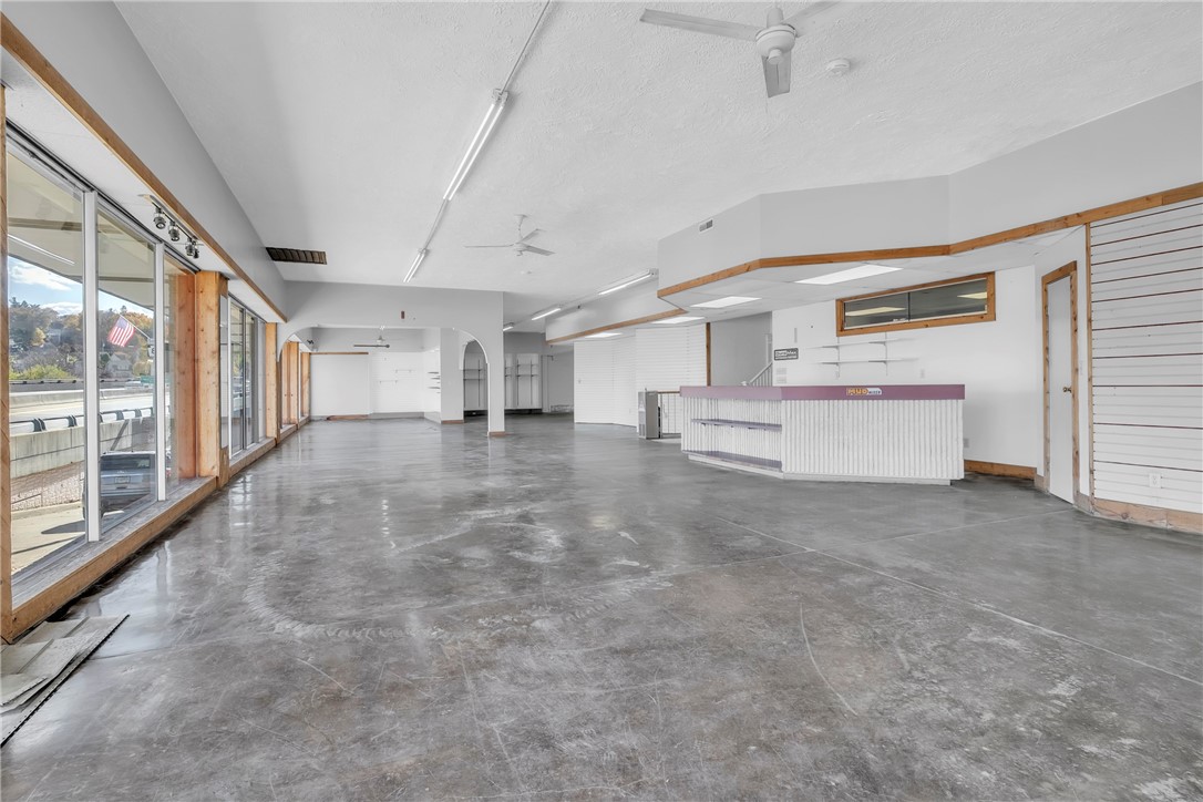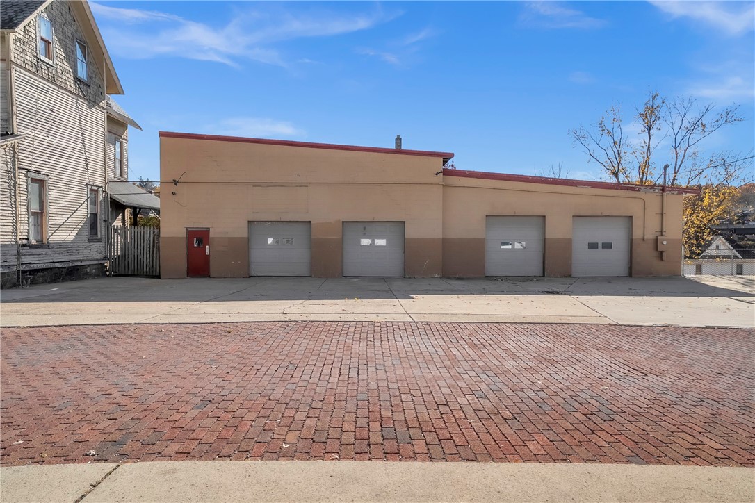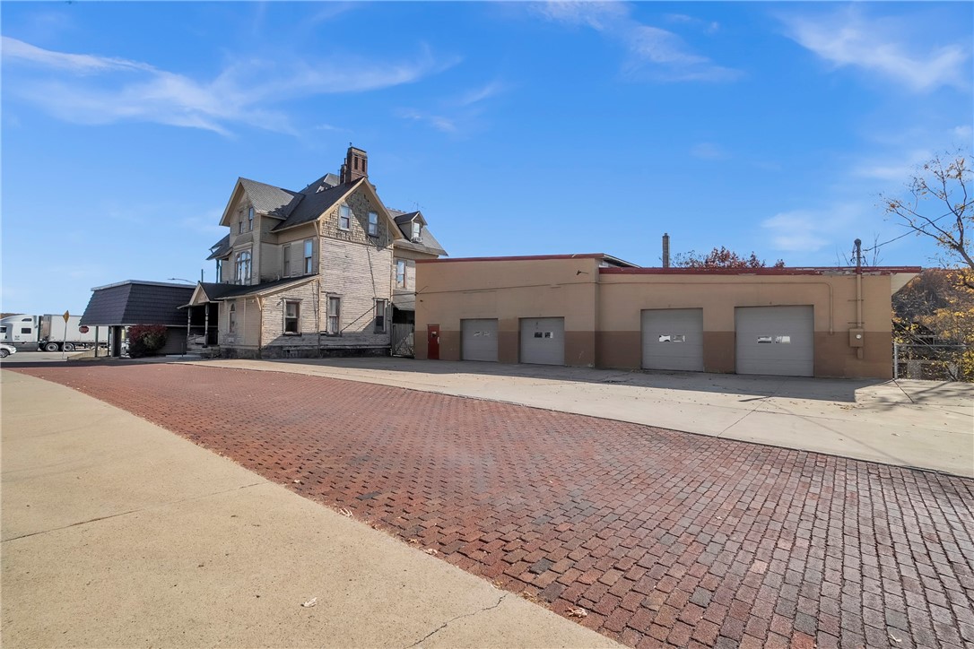 Mixed-use property with showroom, garage, and residential building.