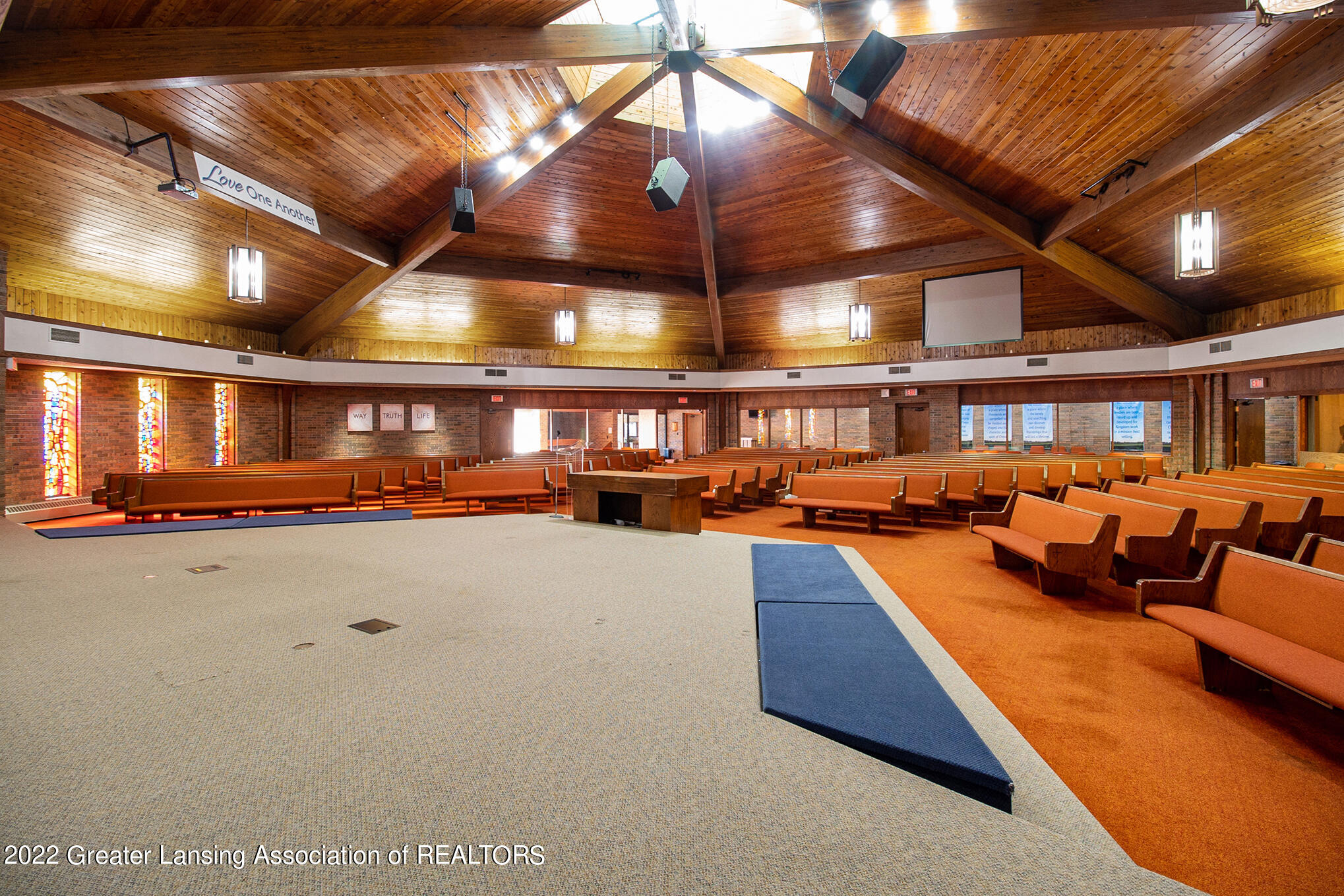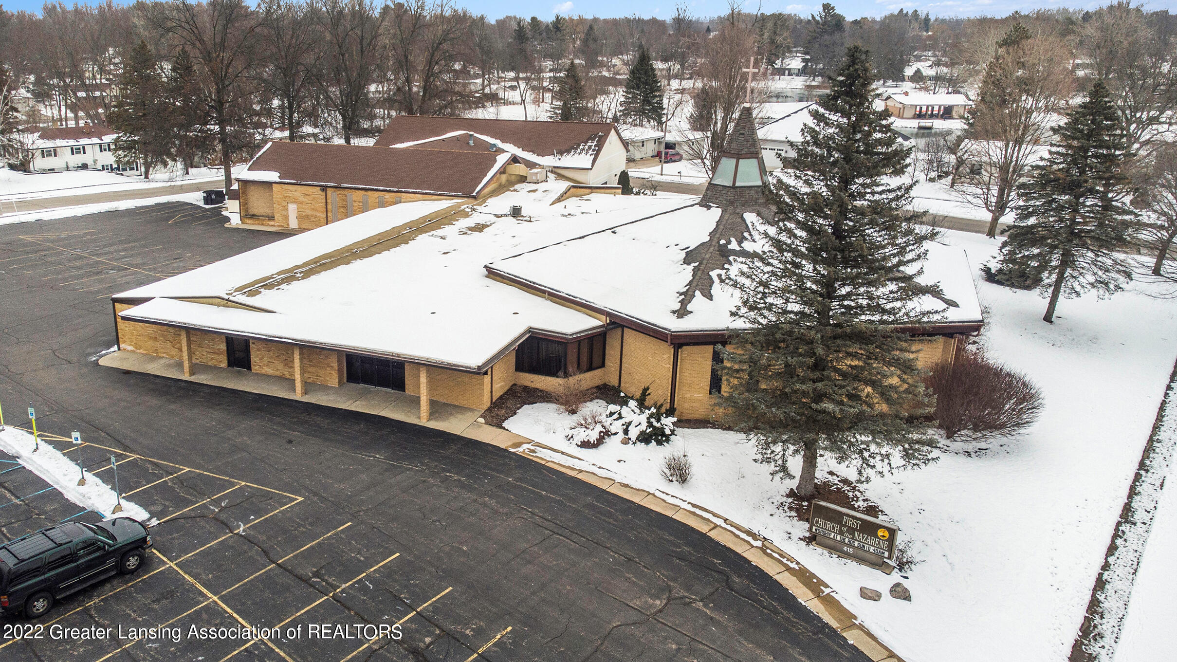 21,035 SF facility with sanctuary, kitchen, classrooms, offices.