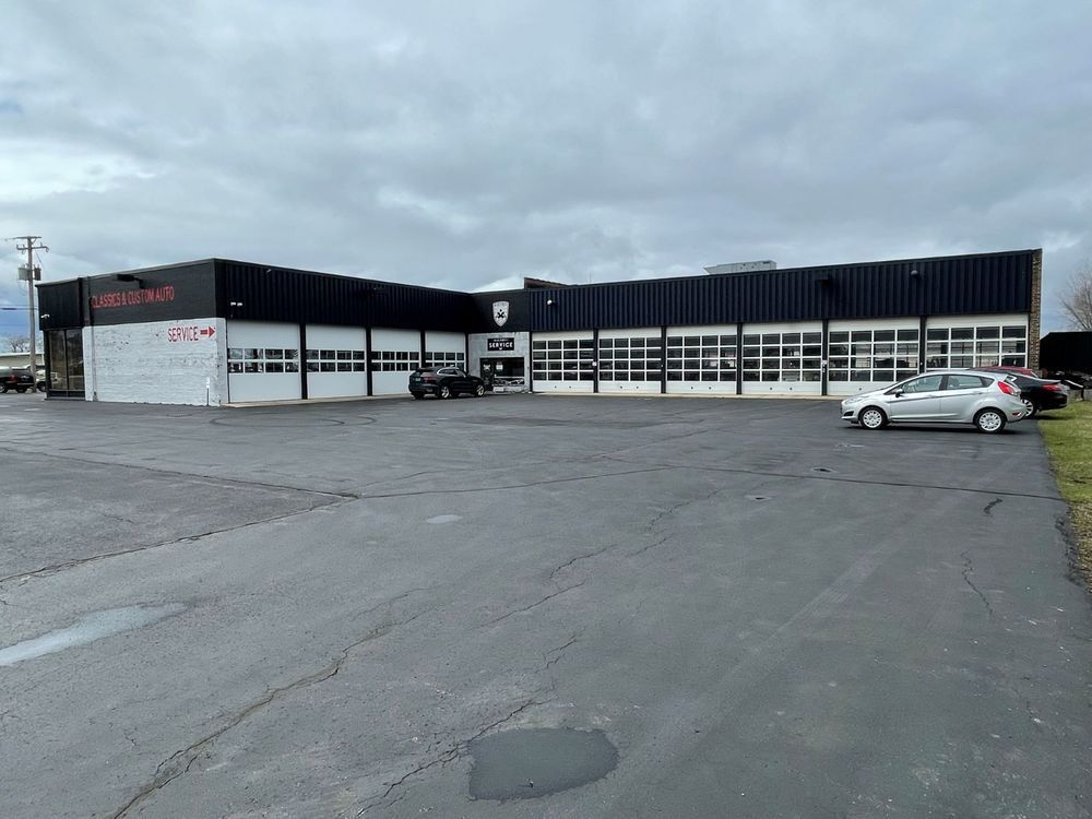 Retail property with showroom, service spaces, and expansion potential.