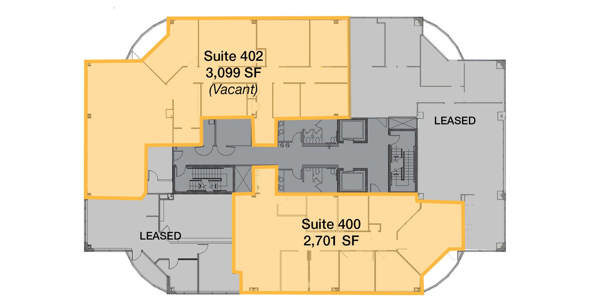 Class A office suites with high visibility and accessibility.