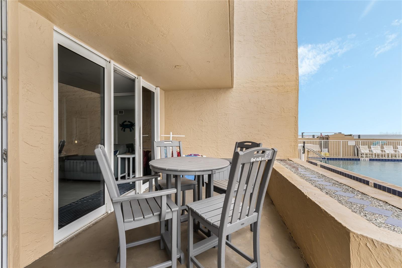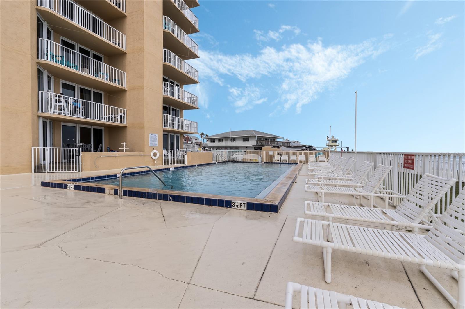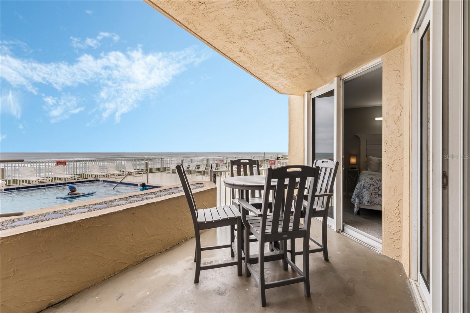 Ground floor, 2BR/2BA condo with ocean and pool views.