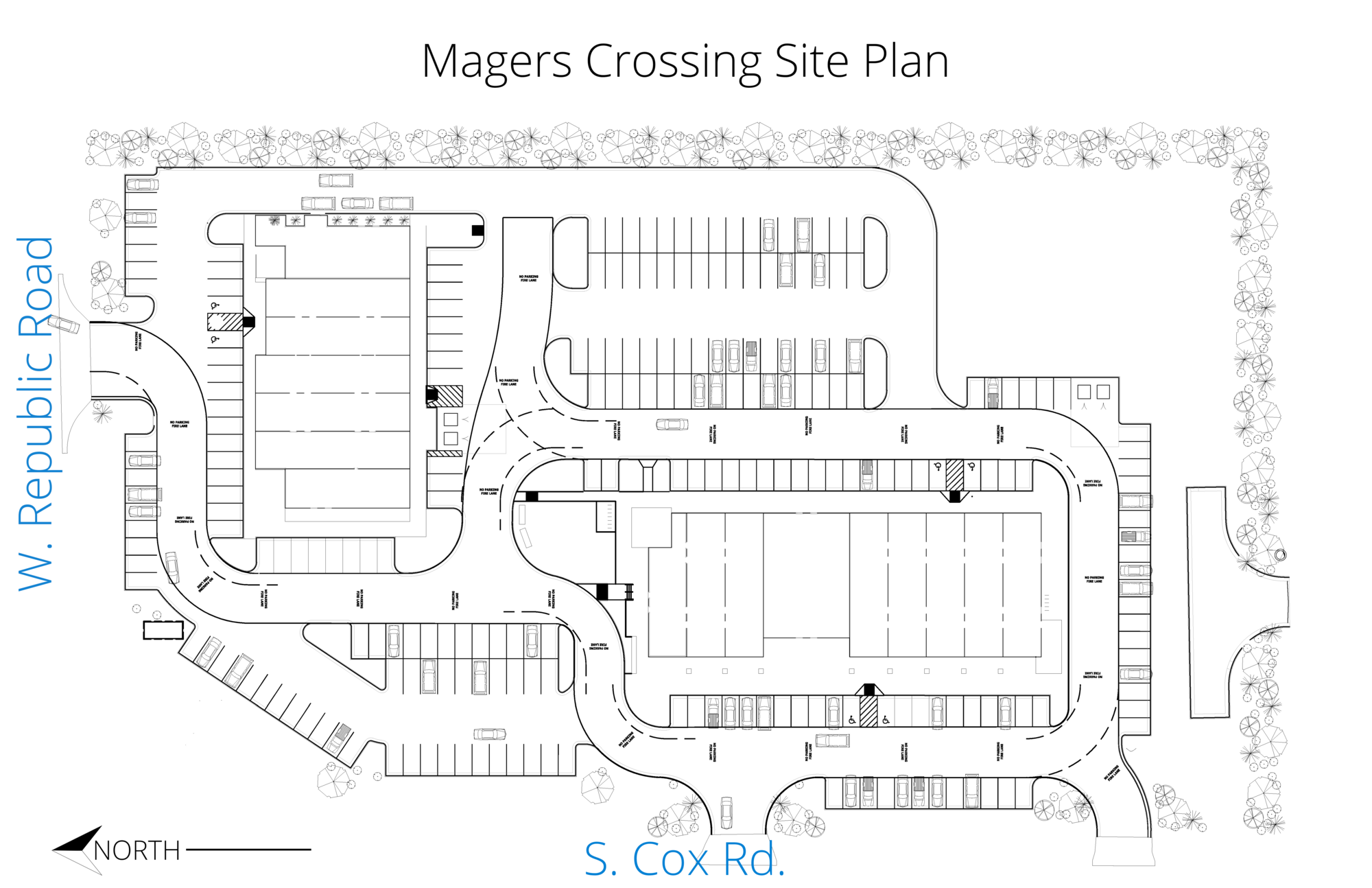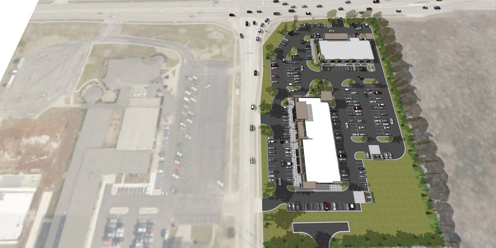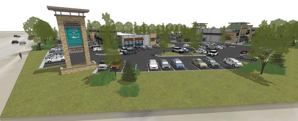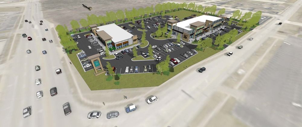 New retail center with restaurant, retail, and office spaces available.