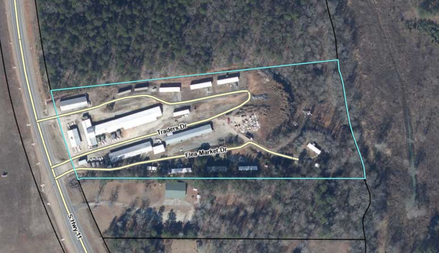 This property features: Income‑producing property with established flea market, mobile home rentals, and storage unit rentals.; Highly visible frontage on high‑traffic Highway 11, a designated scenic byway.; Operating flea market with long‑term vendor presence, offering immediate income potential.