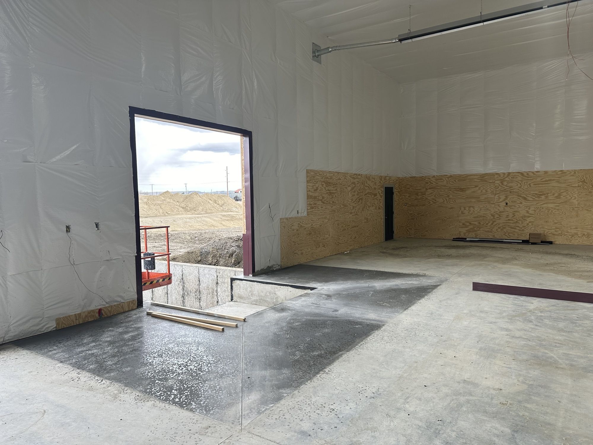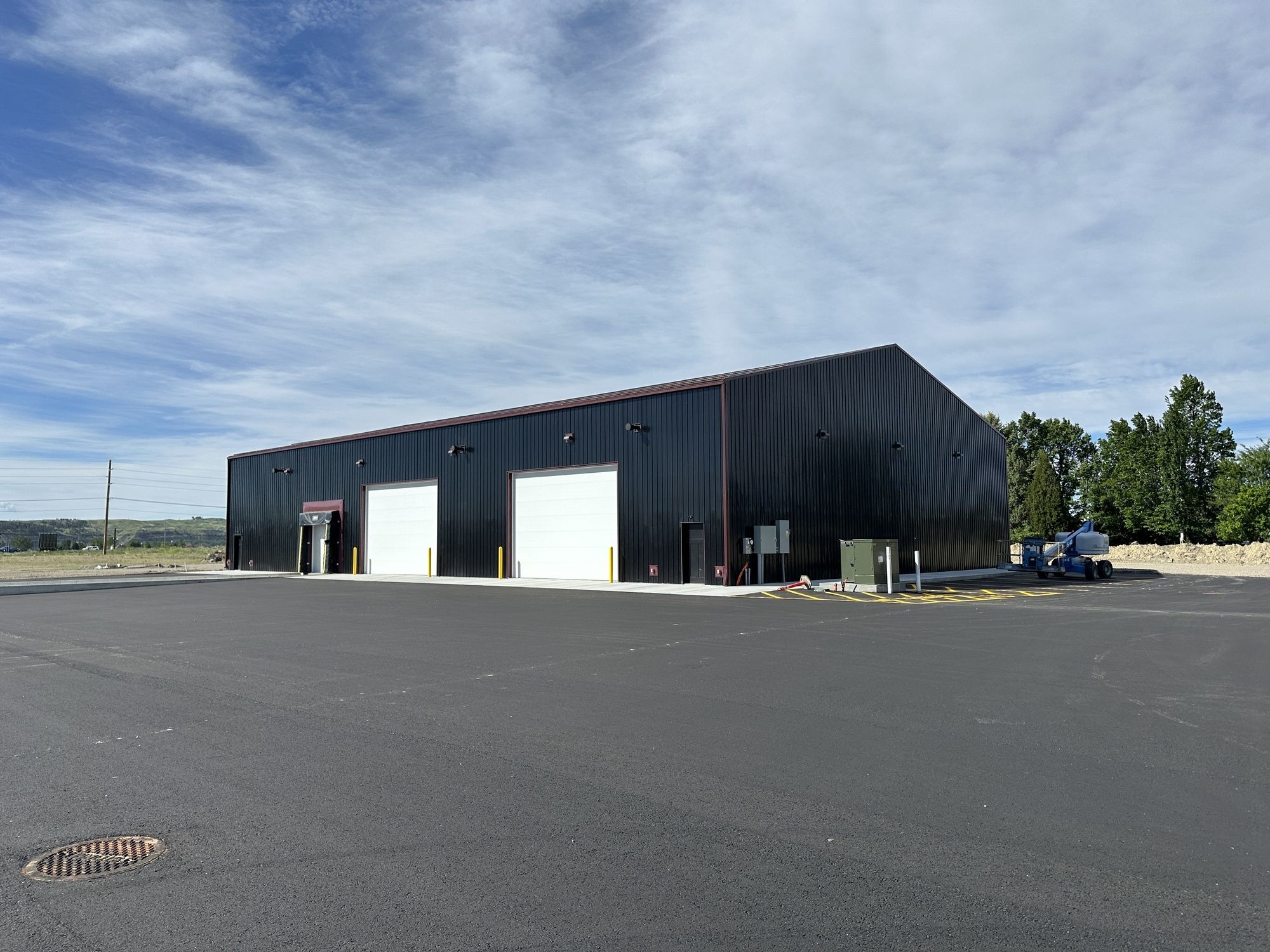 9,600 SF warehouse with dock-high access and I-90 visibility.
