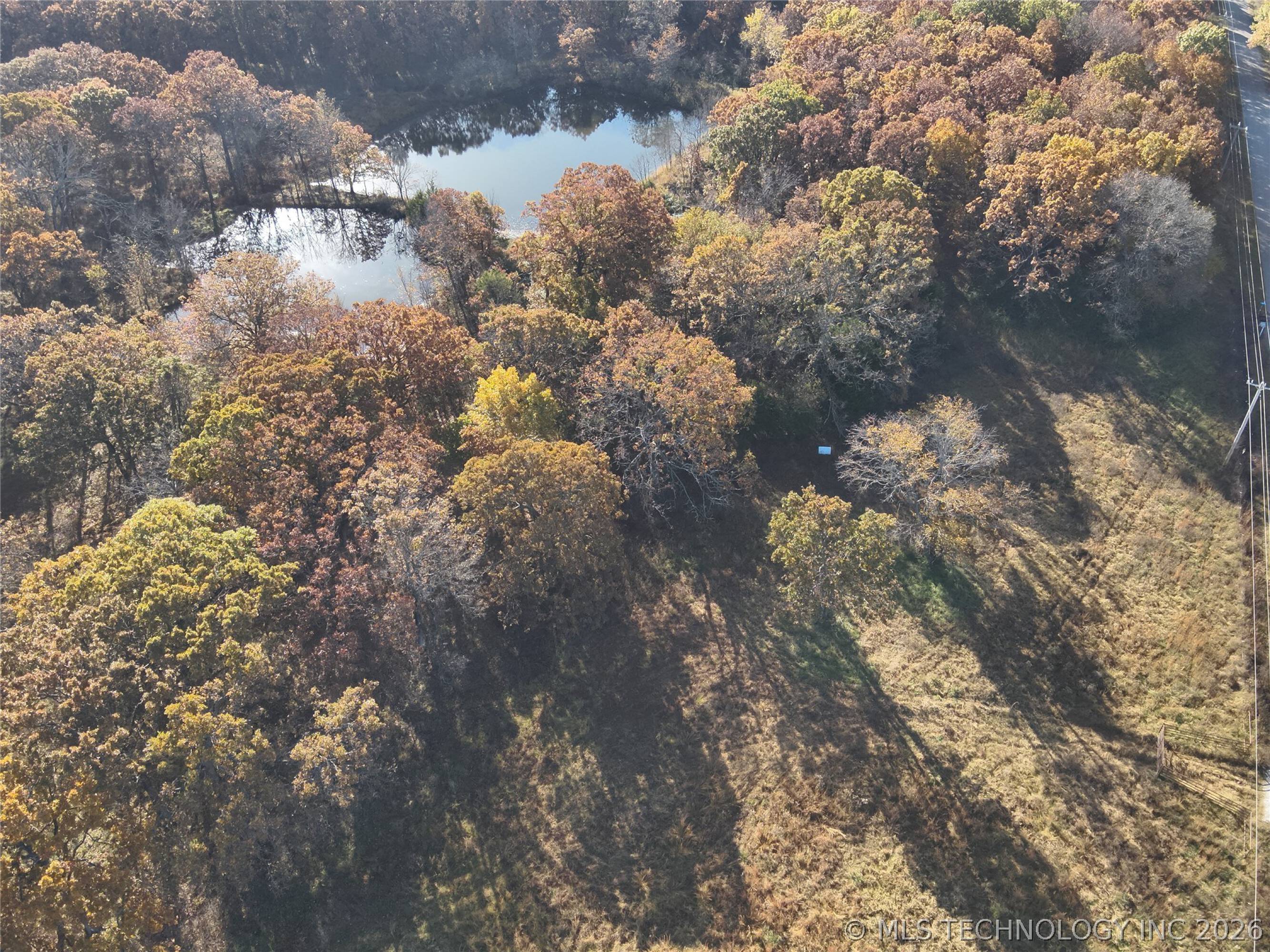 Land with hardwoods, pond, utilities, and highway access.