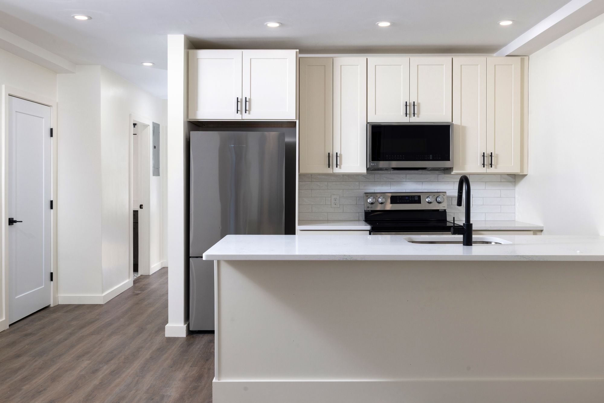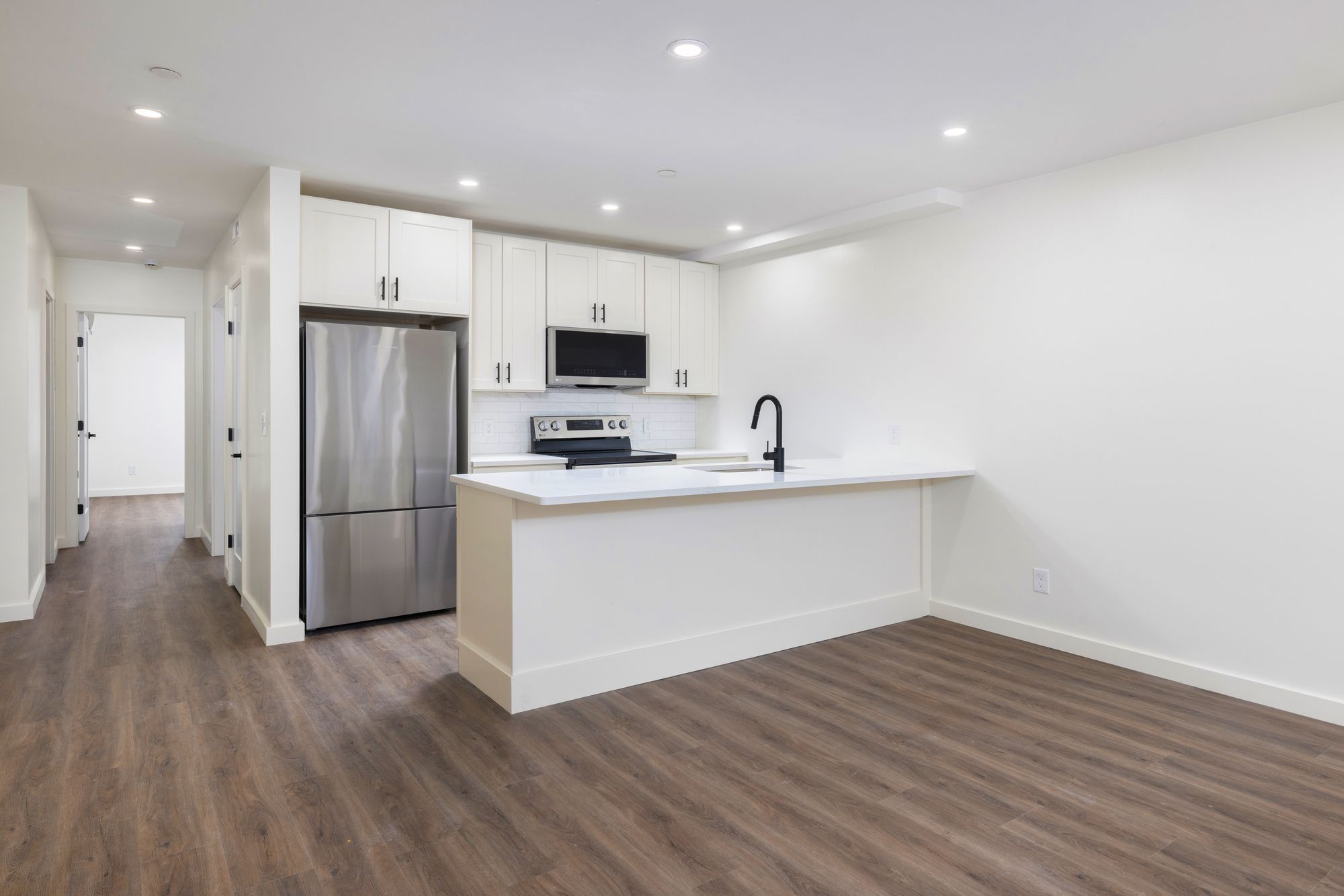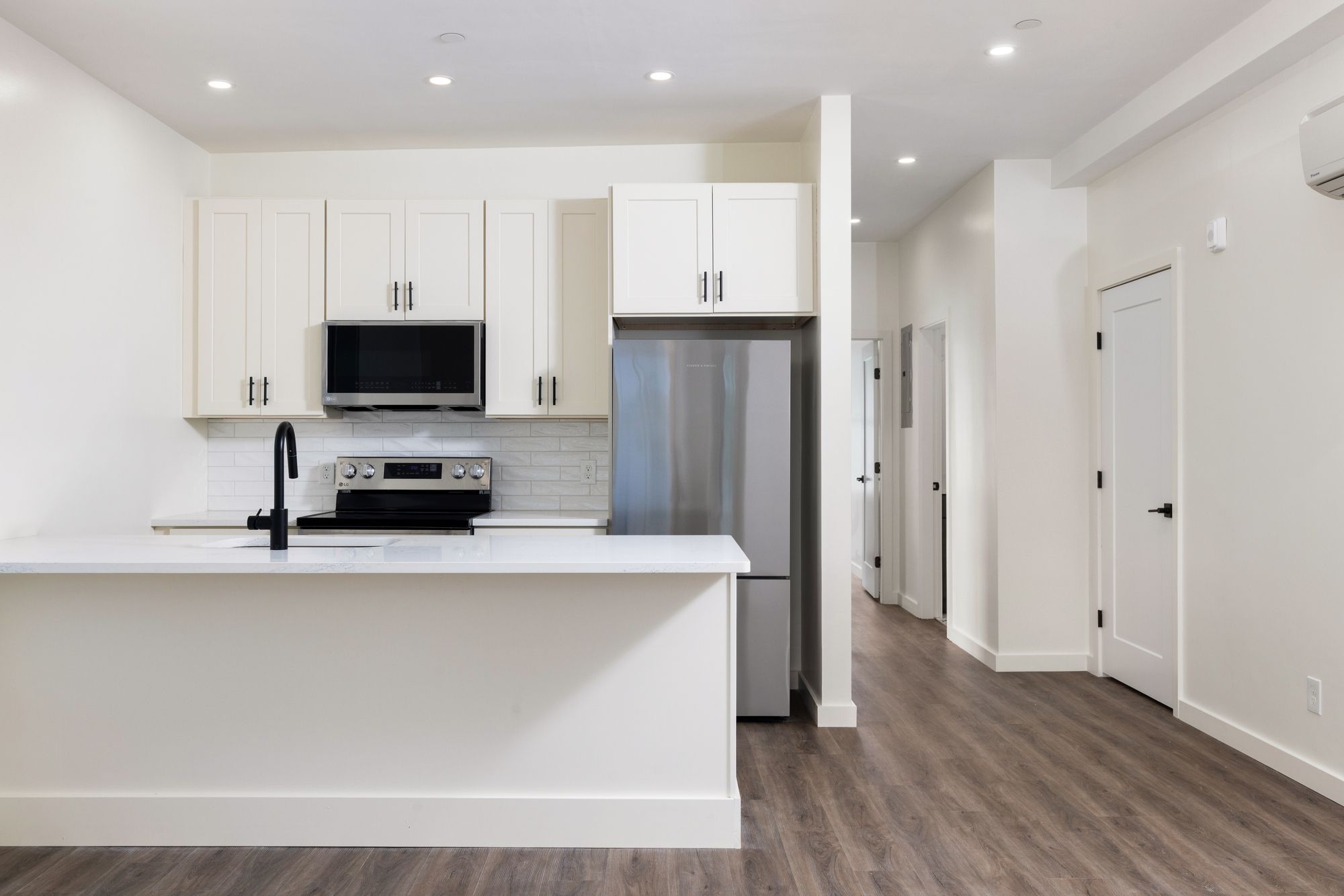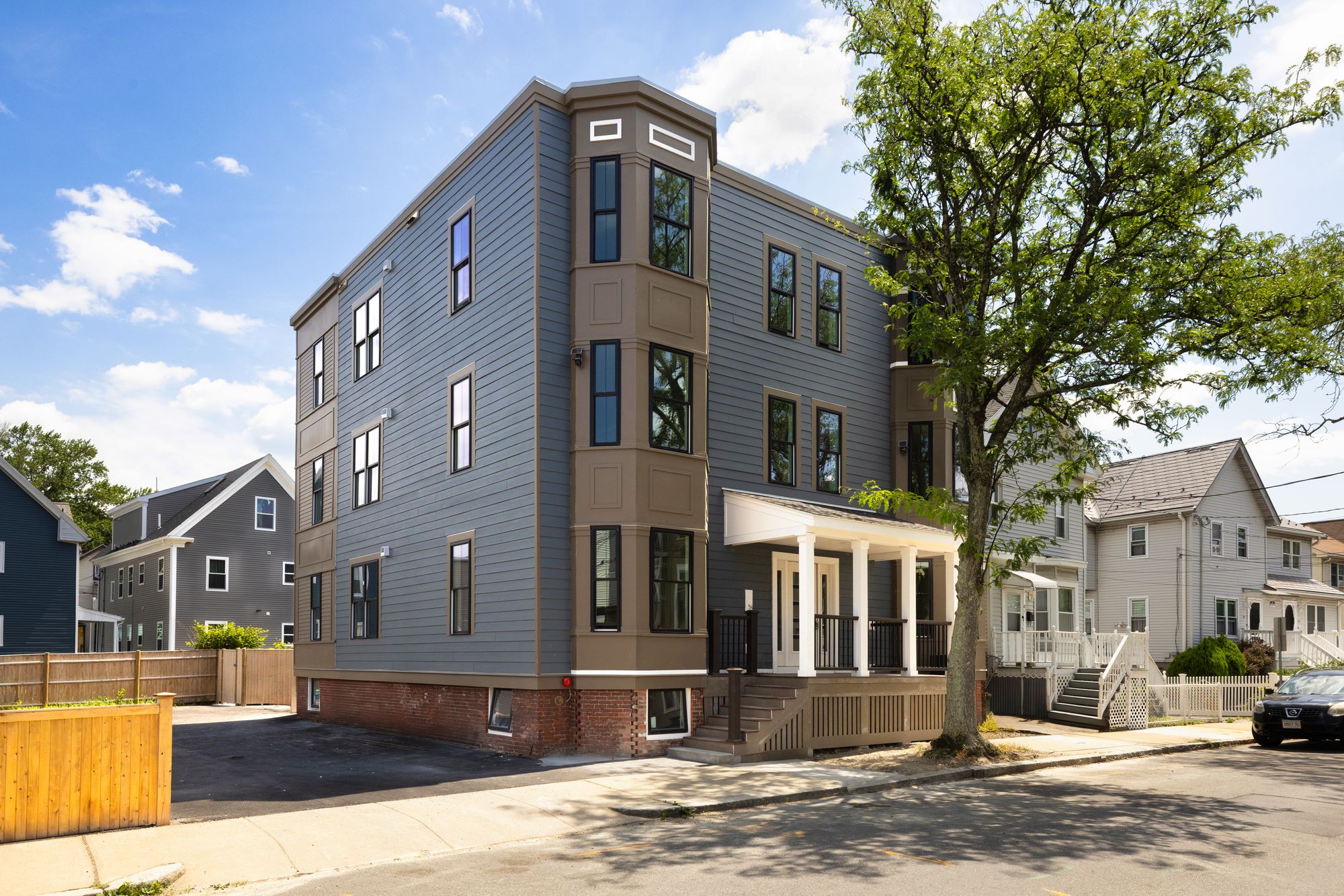 Newly constructed 6-unit multifamily property with condo finishes and parking.