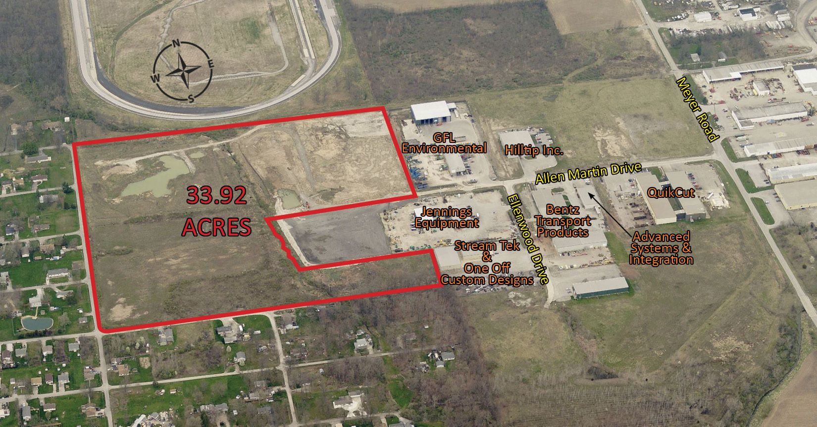 33.92 acres in heavy industrial zone, city utilities available.