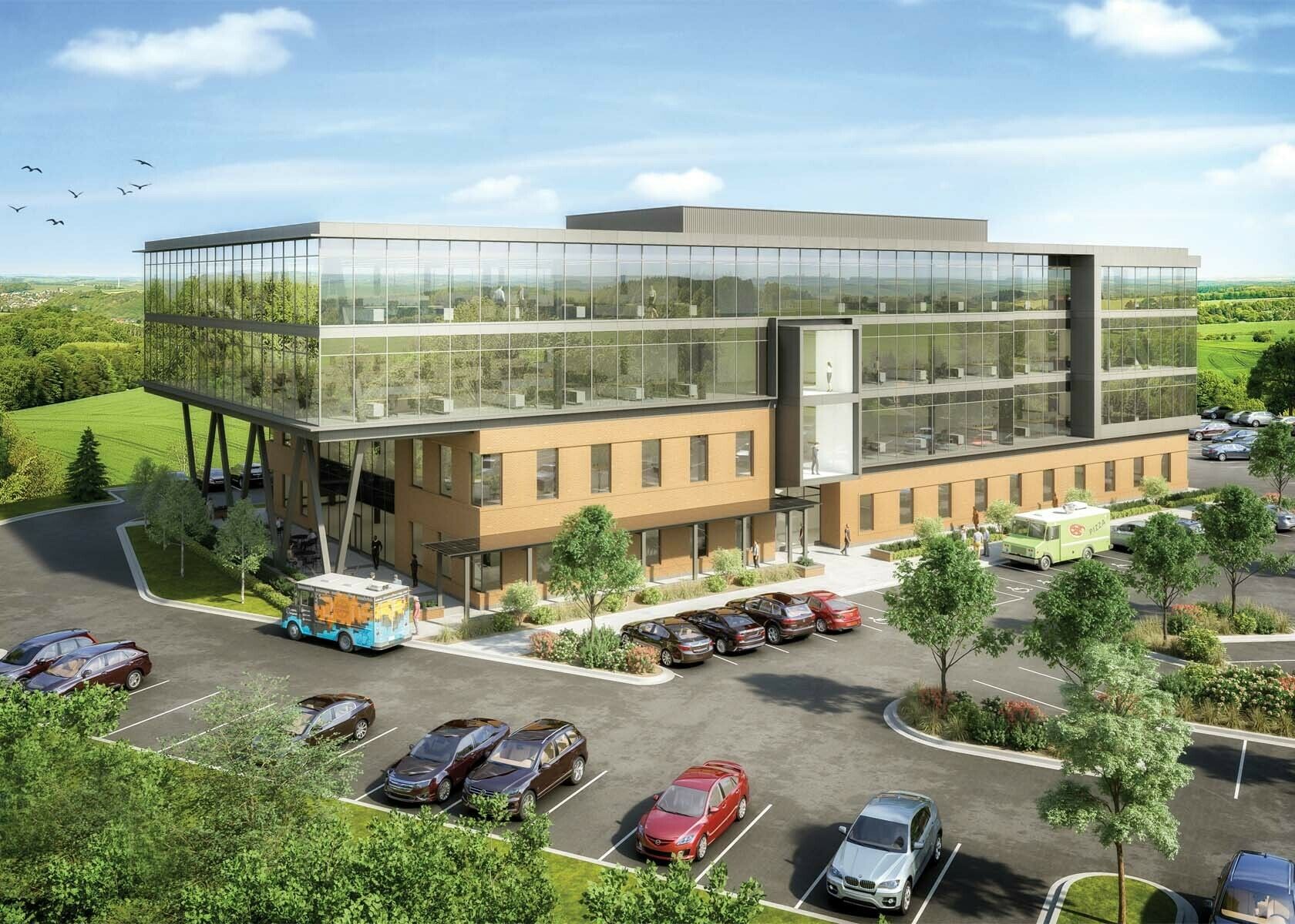 Beacon II is a four-story office building. It features a fitness center with showers and locker rooms. The property also includes an upscale lobby with collaborative work and meeting areas, as well as an entertaining space for events. The building offers views overlooking I-79 and the surrounding area.