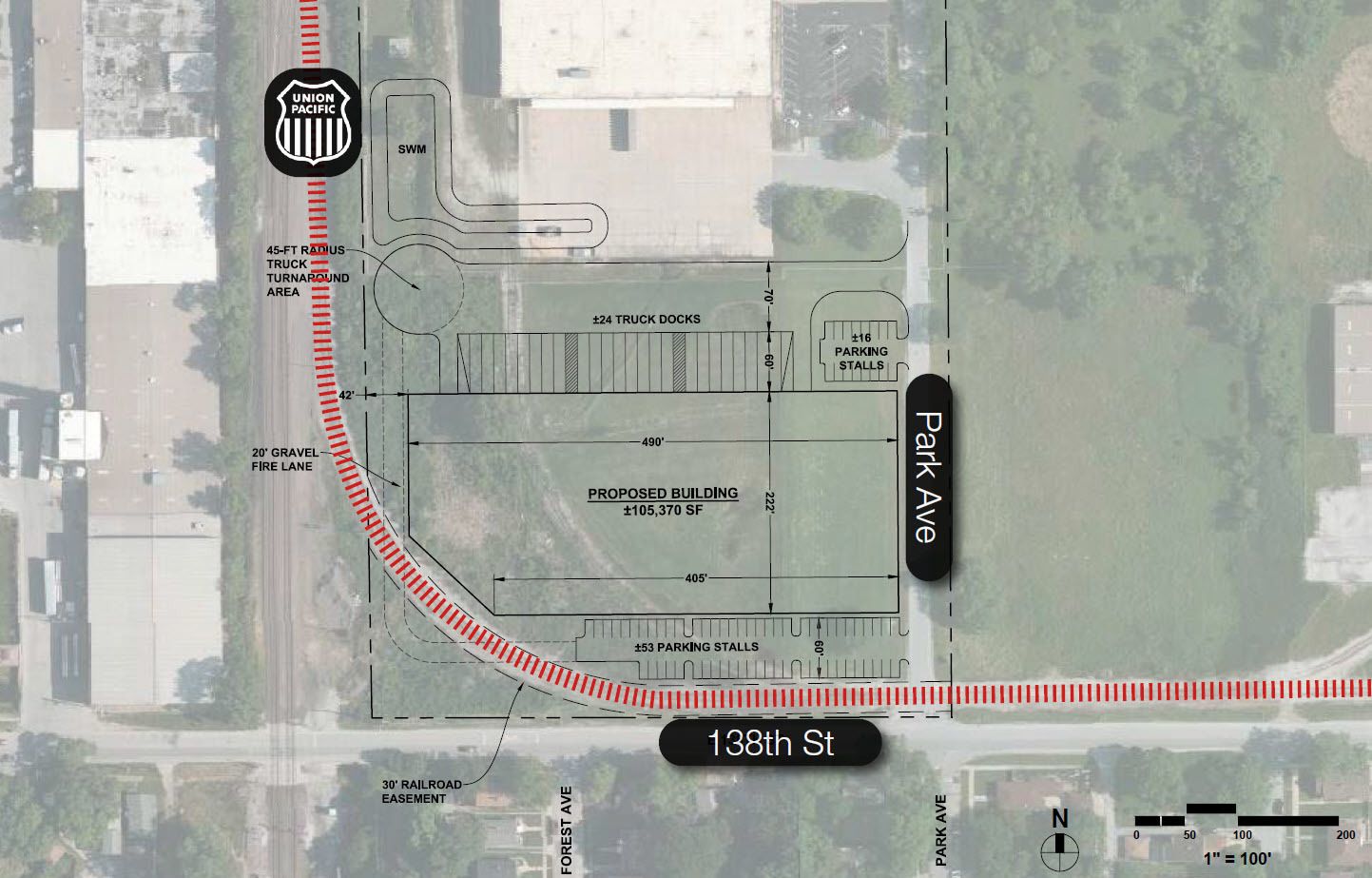 6-acre rail-served site for lease, build-to-suit opportunity.