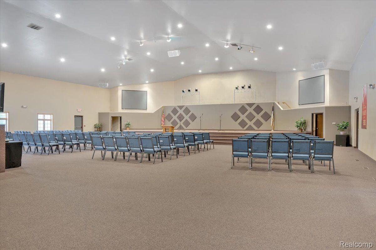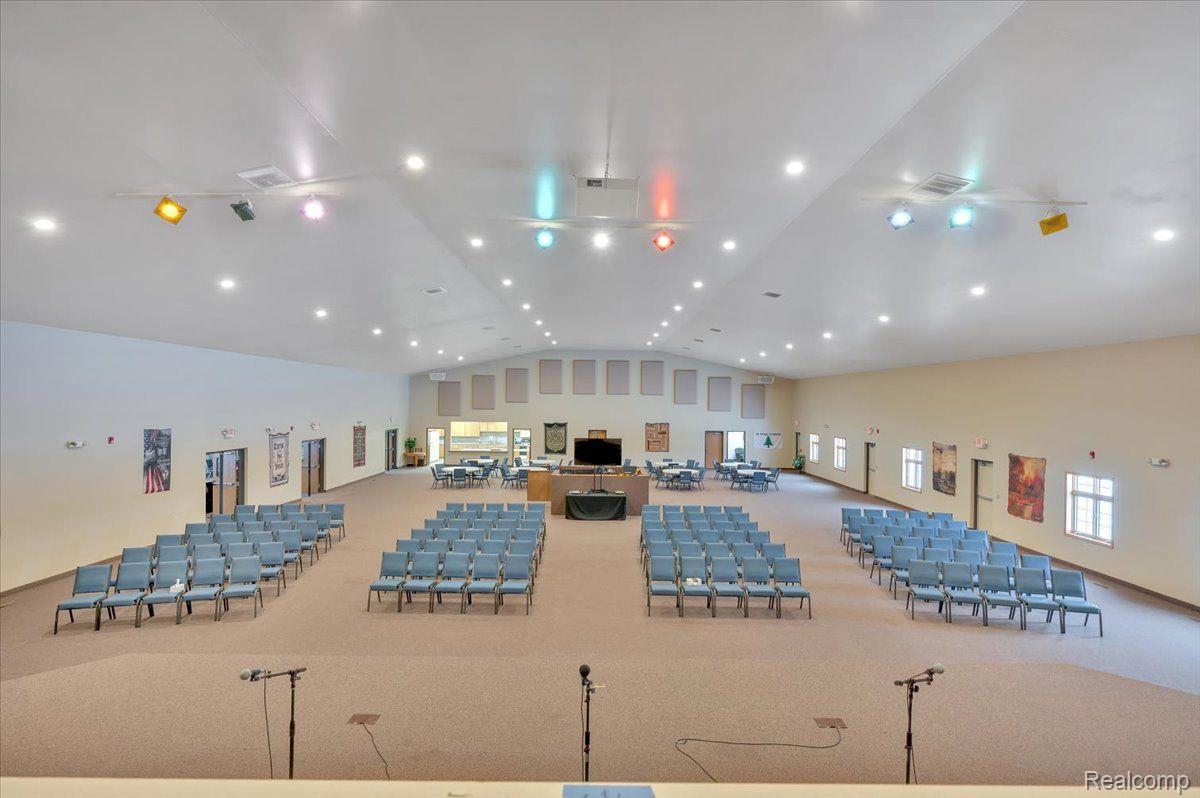 This 17.98-acre agricultural land in Attica, MI, presents a rare investment opportunity. The property, currently owned by a nonprofit organization and exempt from property taxes, is strategically located off I-69 between M-24 and M-53. It features 20,000 sq ft of versatile building space and expansive grounds, including a pavilion, baseball field, and privacy landscaping. While presently zoned for agricultural use, the property is approved for commercial zoning, making it suitable for future development. Potential uses include a corporate campus, private school, event venue, or wellness retreat. The interior includes a 3,000+ sq ft media room with a full kitchen, stage, and control booth, suitable for community gatherings or professional productions. Additional features include executive offices with private baths, spacious corridors, multiple rooms, public restrooms, and a loft-style upper level.