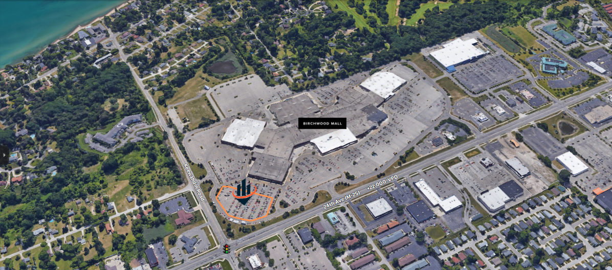 Land outlots available at Birchwood Mall with high visibility.