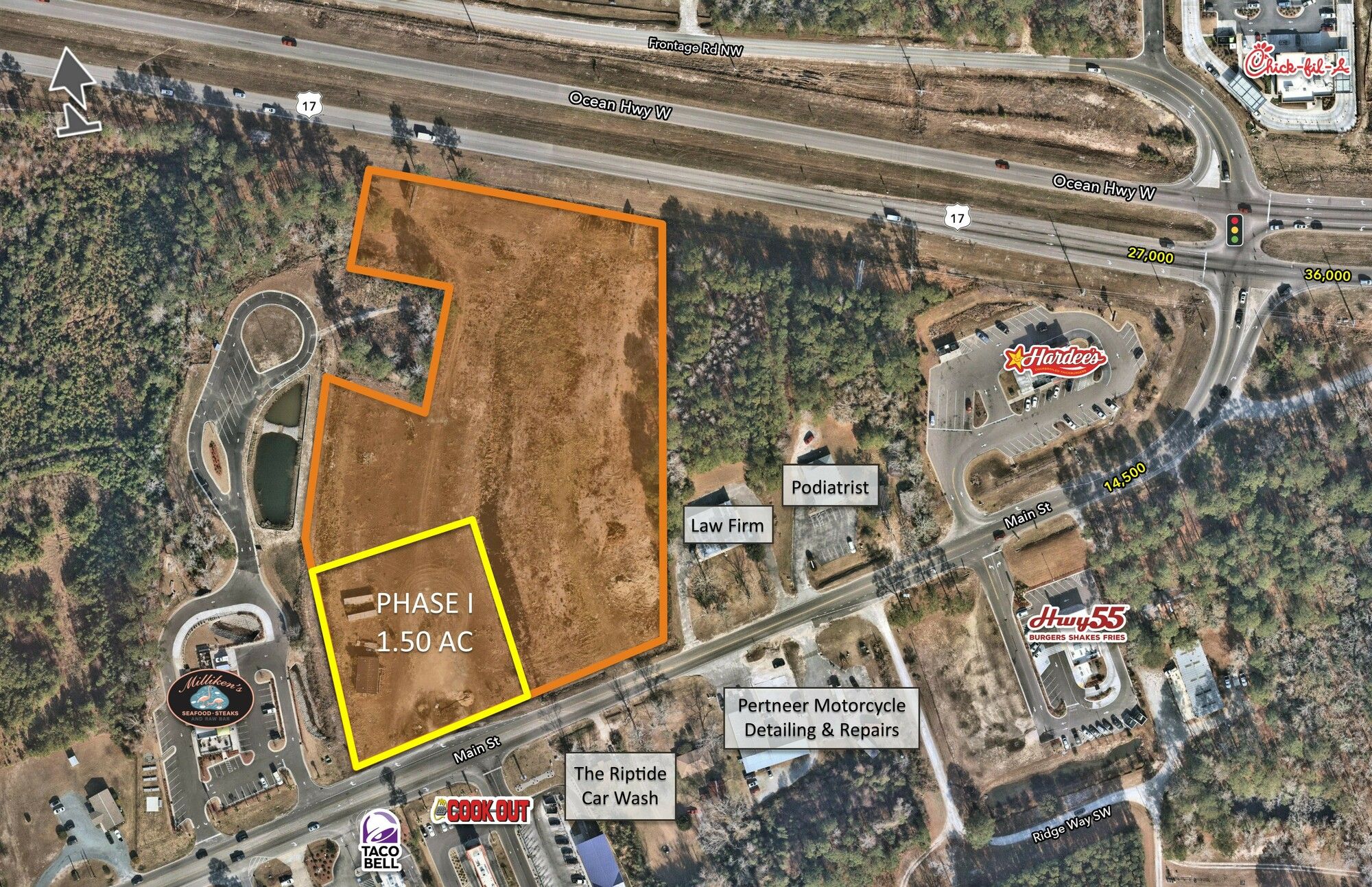 Land available for ground lease or build-to-suit in Shallotte.