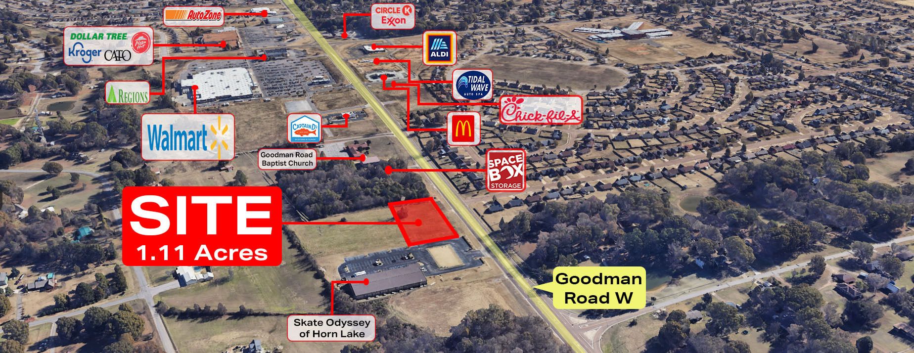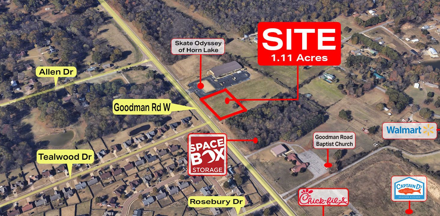1.11-acre outparcel on Goodman Road, Horn Lake, Mississippi.
