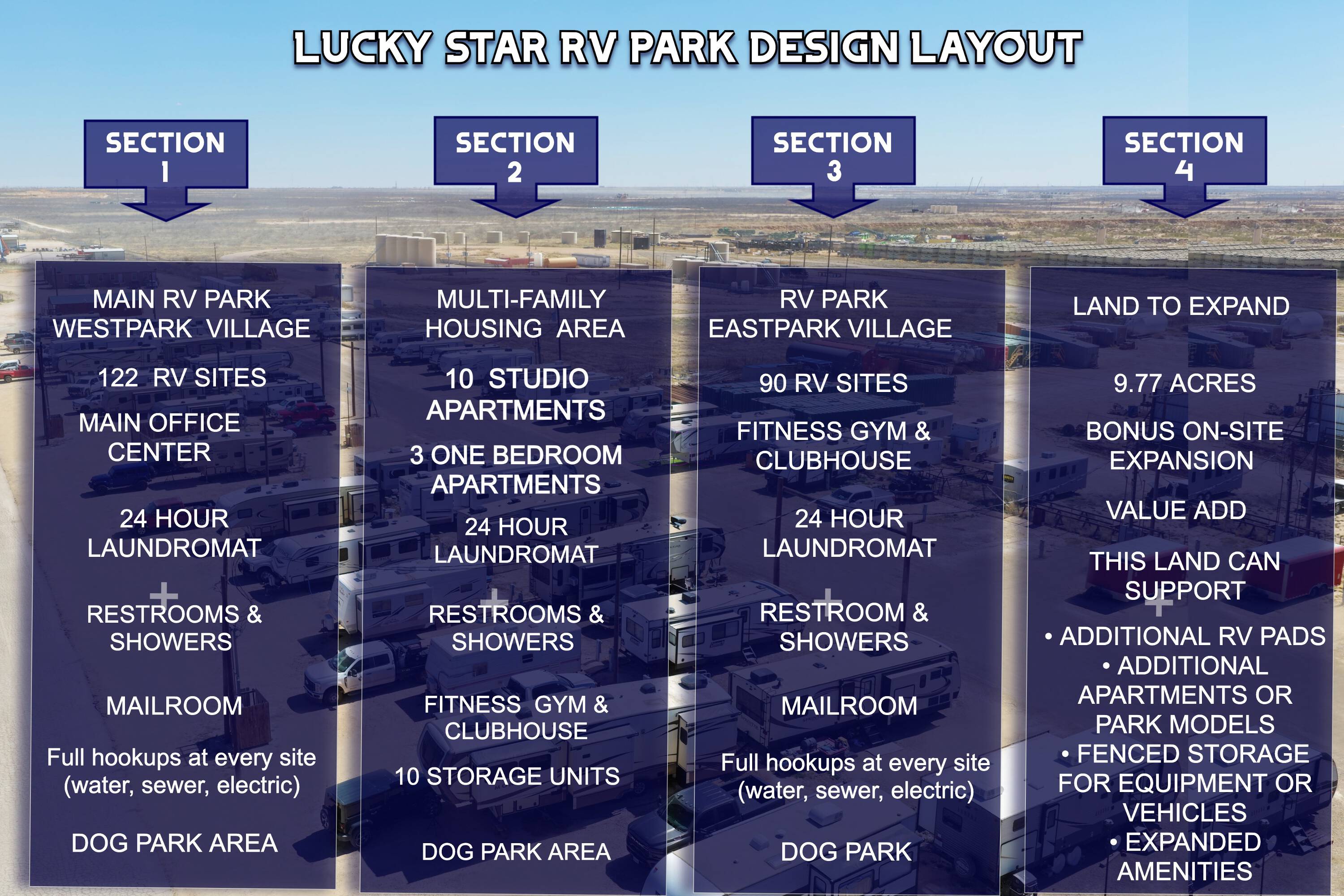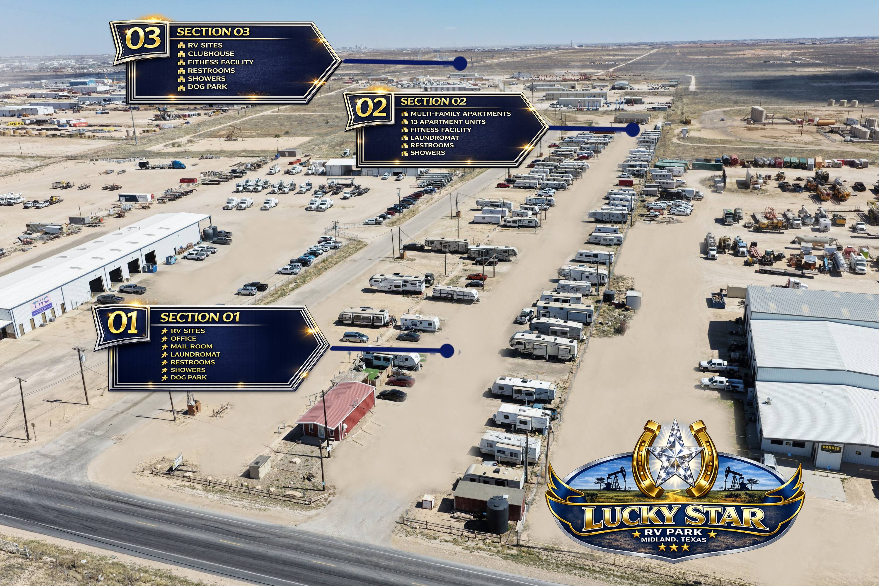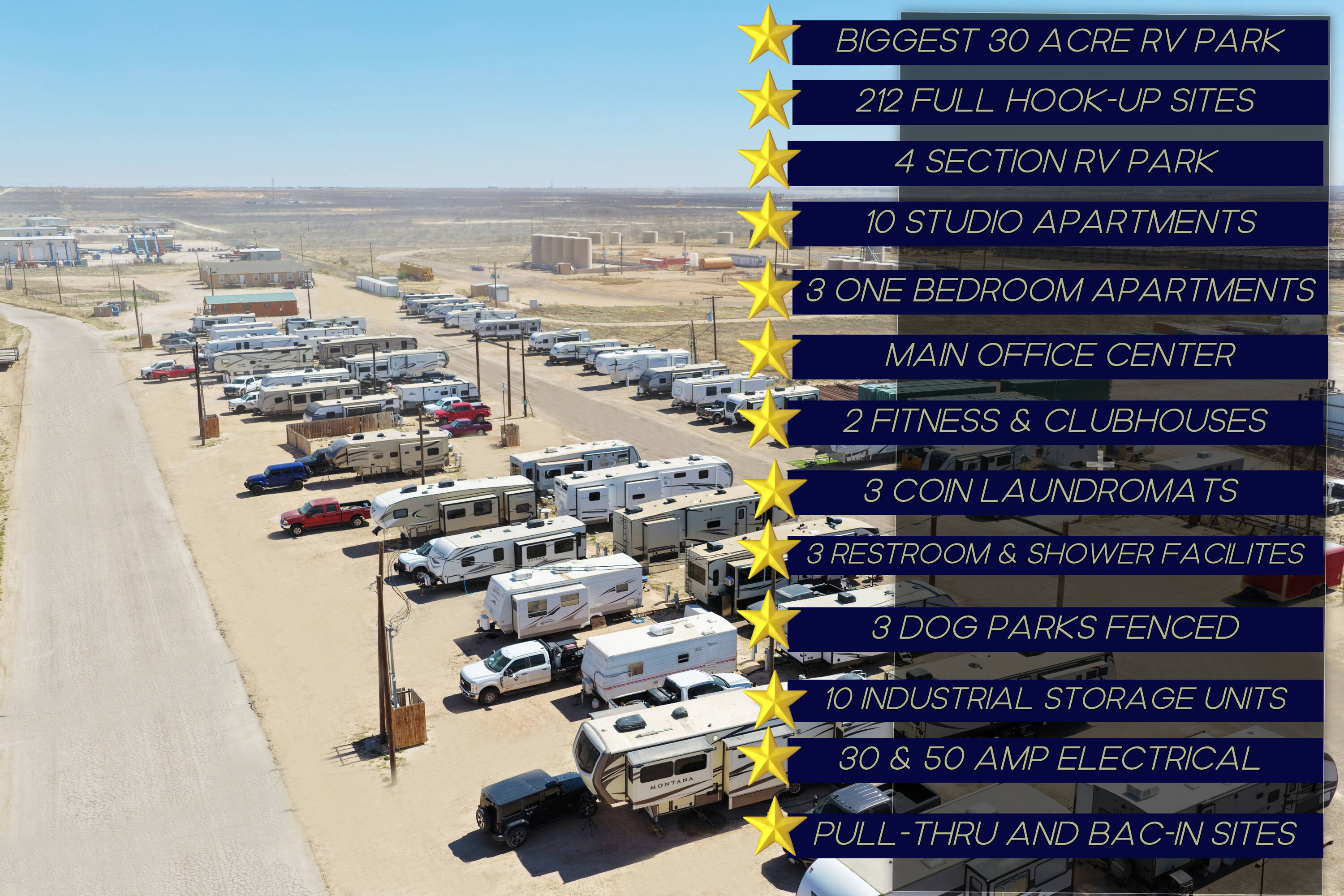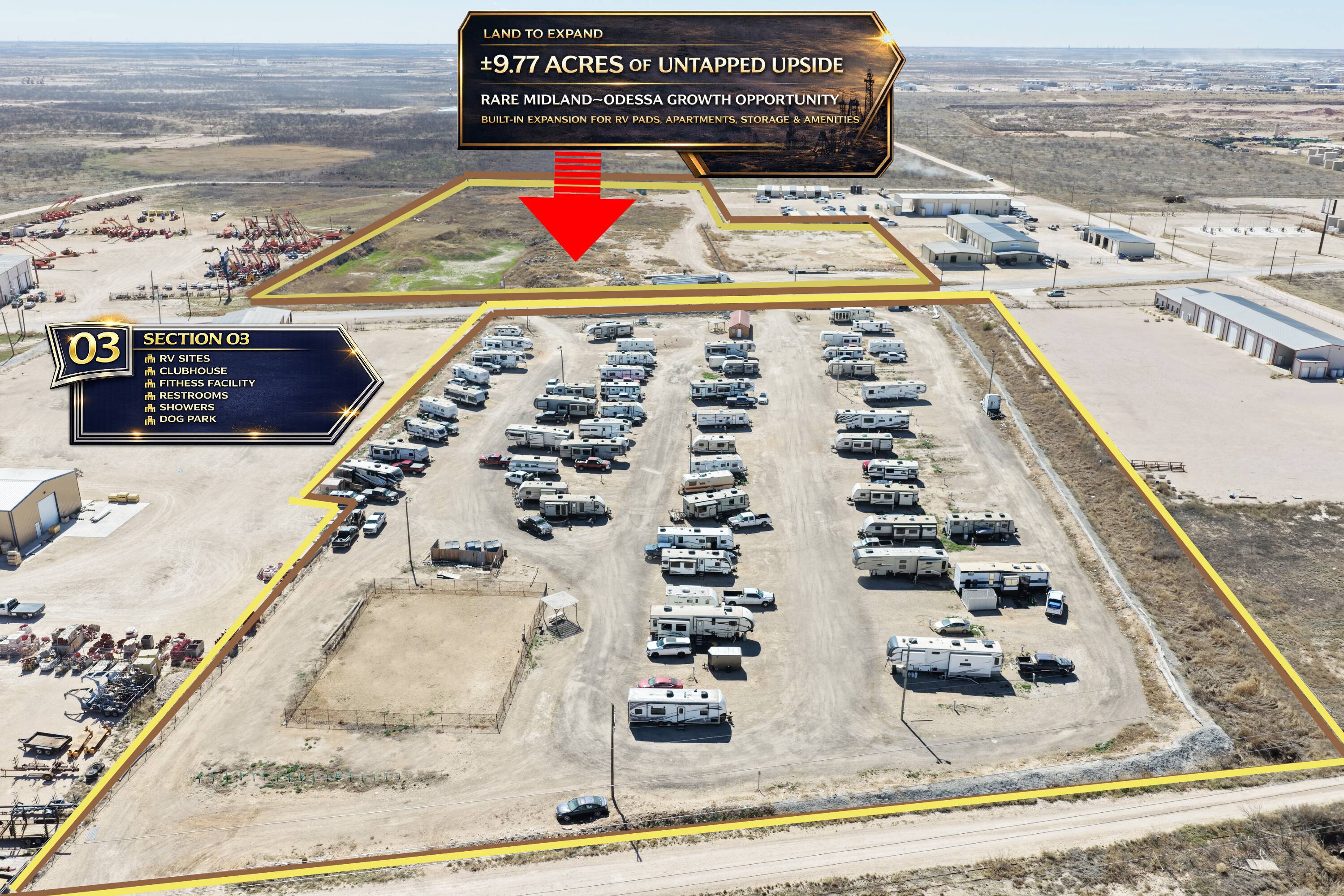 212 RV sites and 13 apartments between Midland and Odessa.