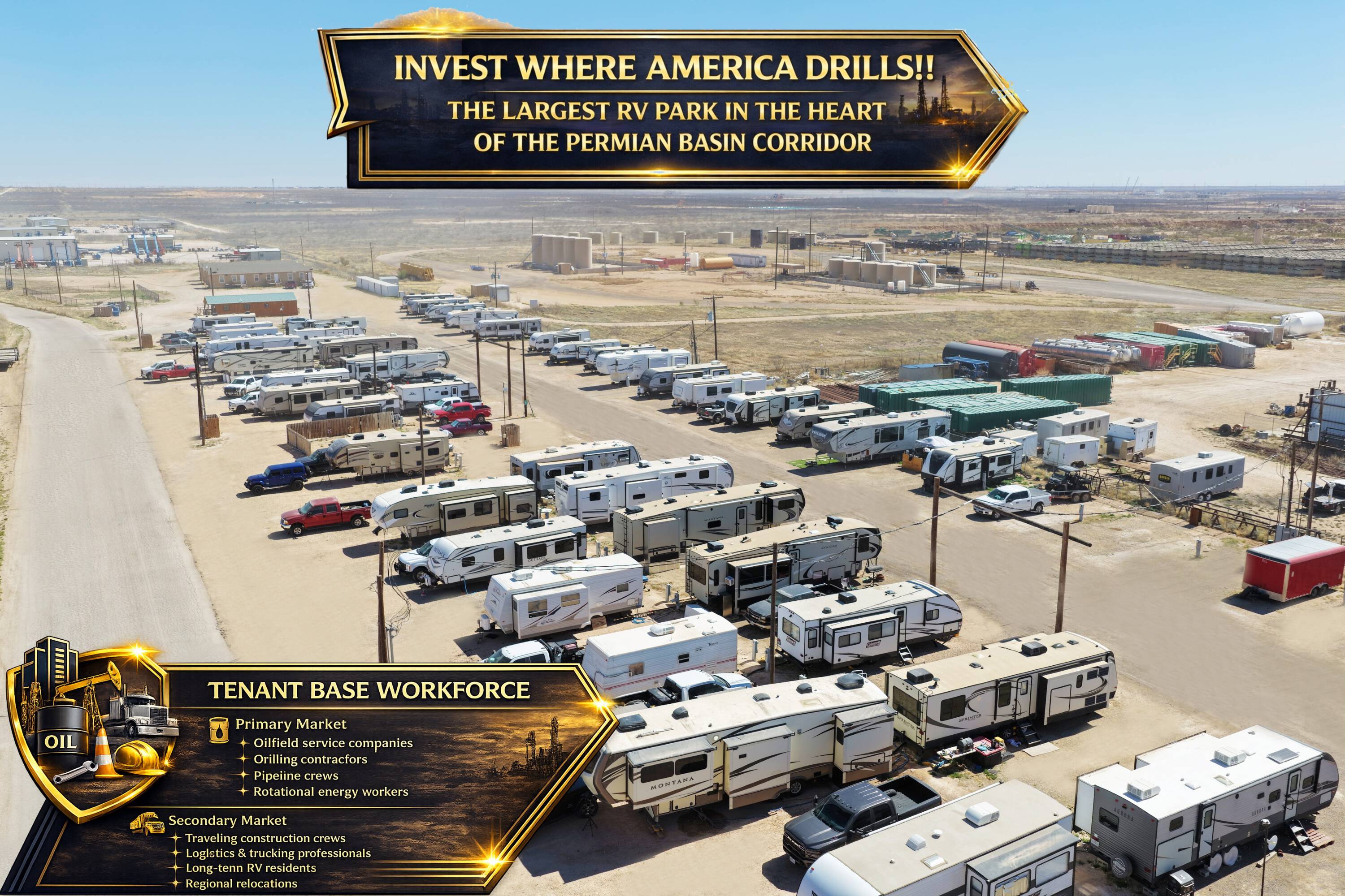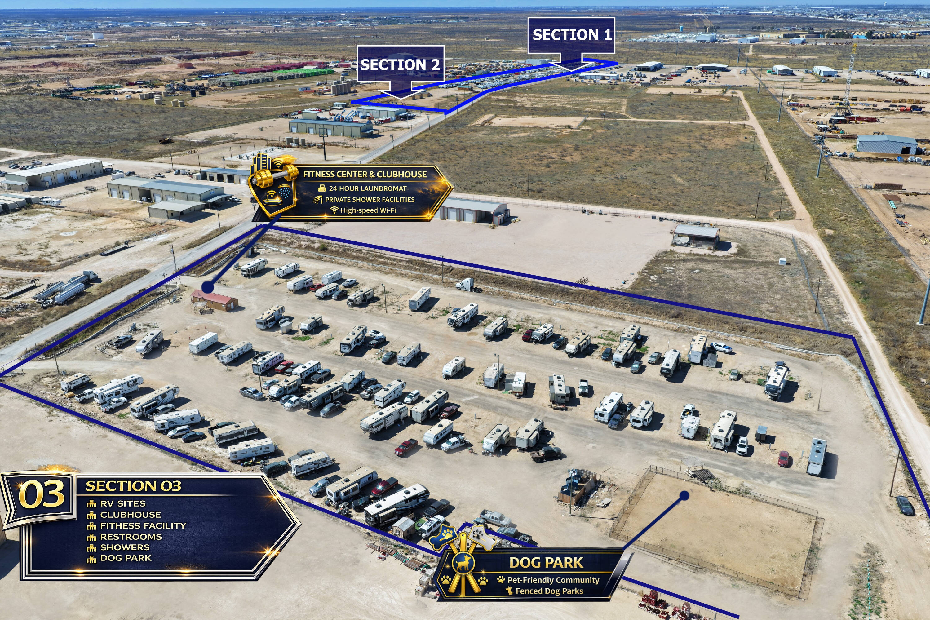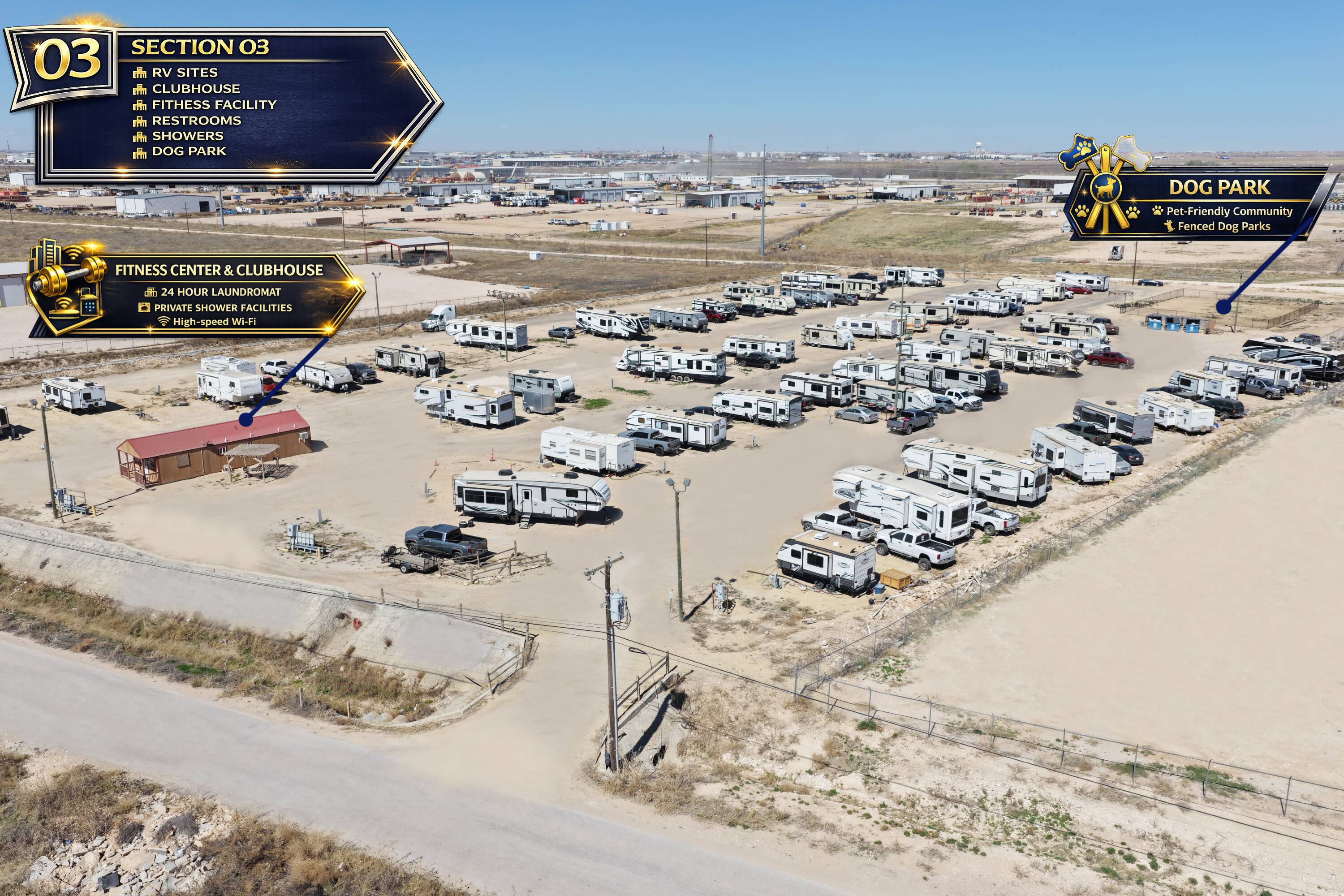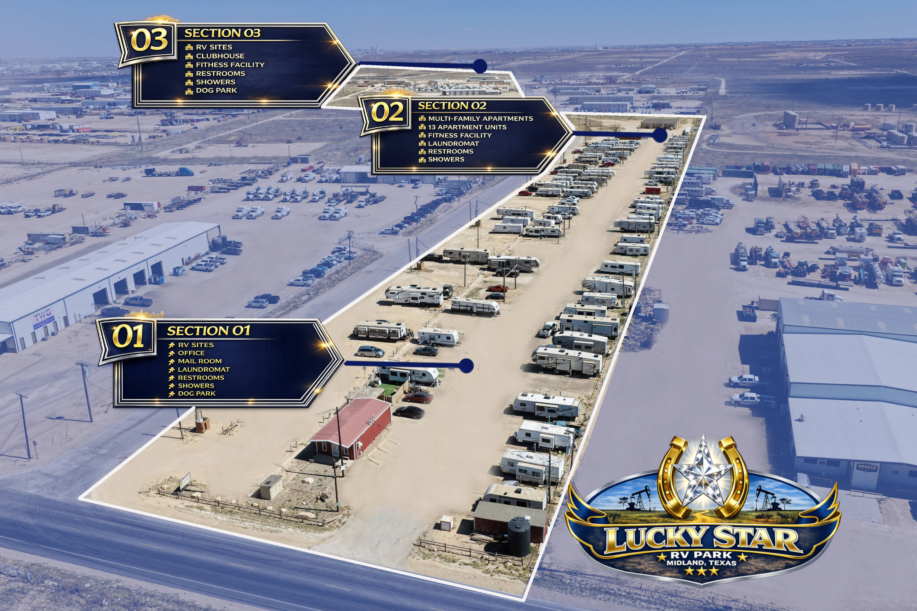 212 RV sites and 13 apartments between Midland and Odessa.