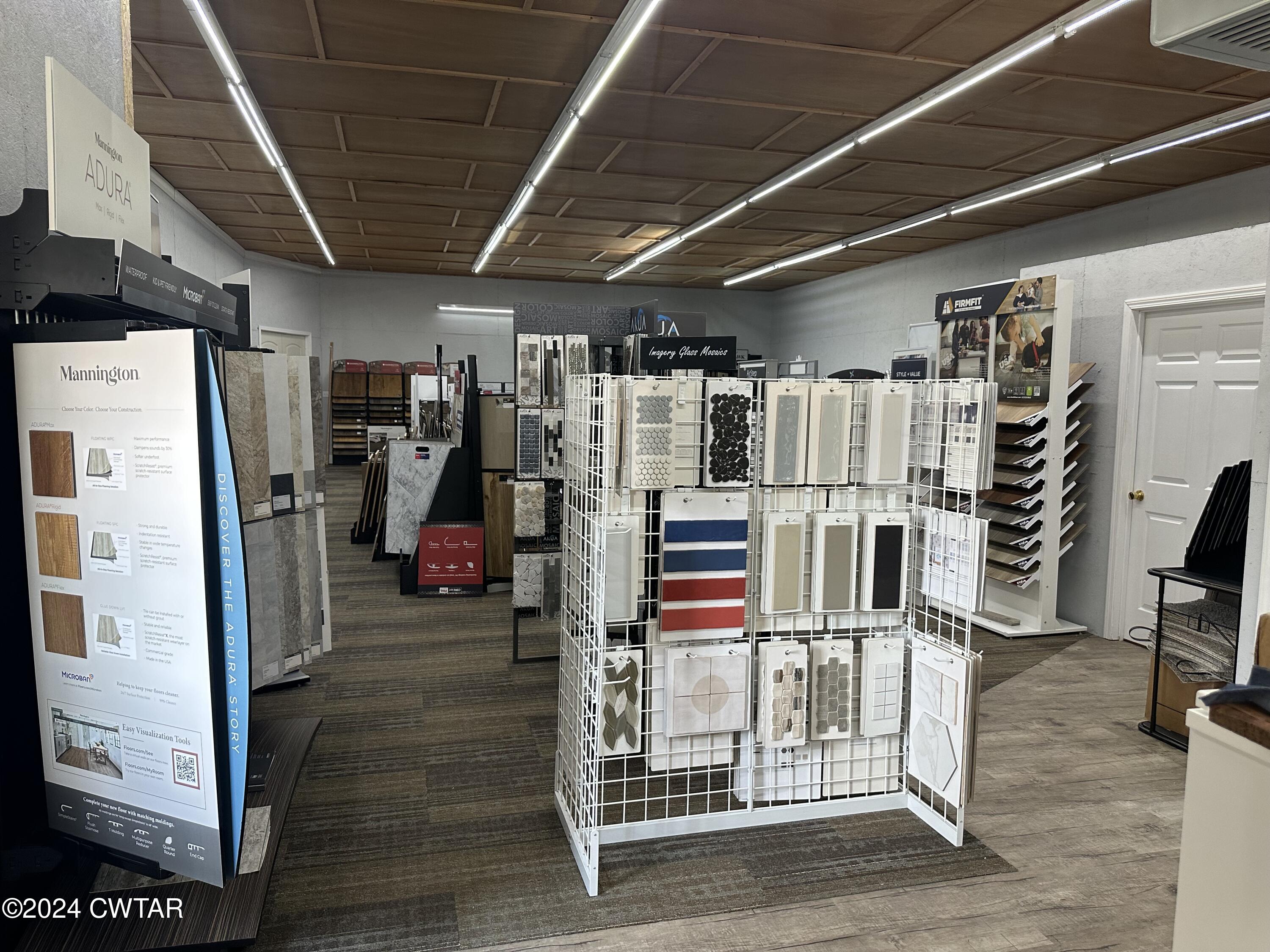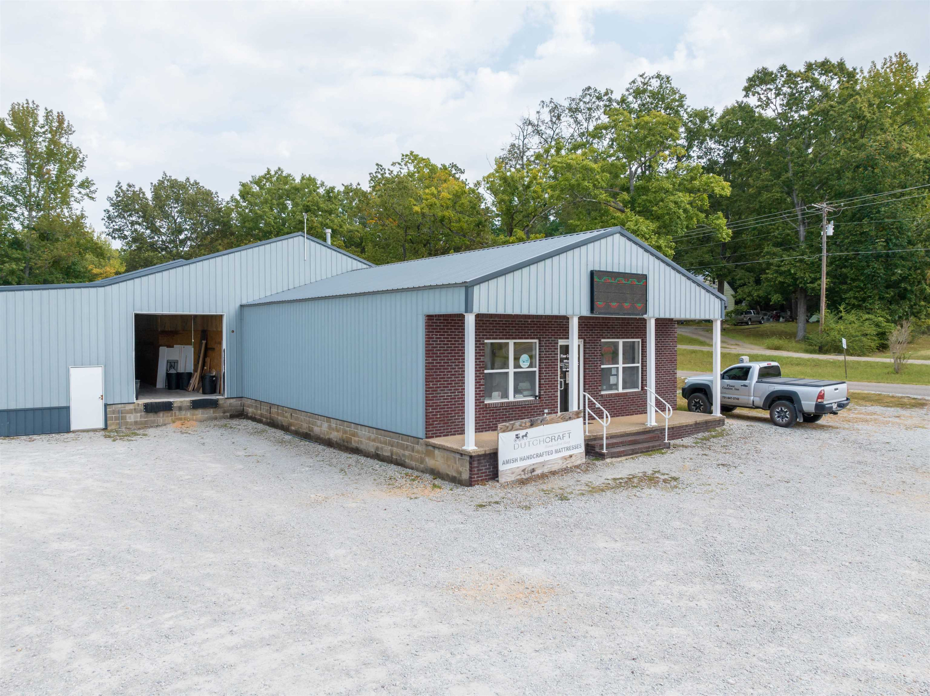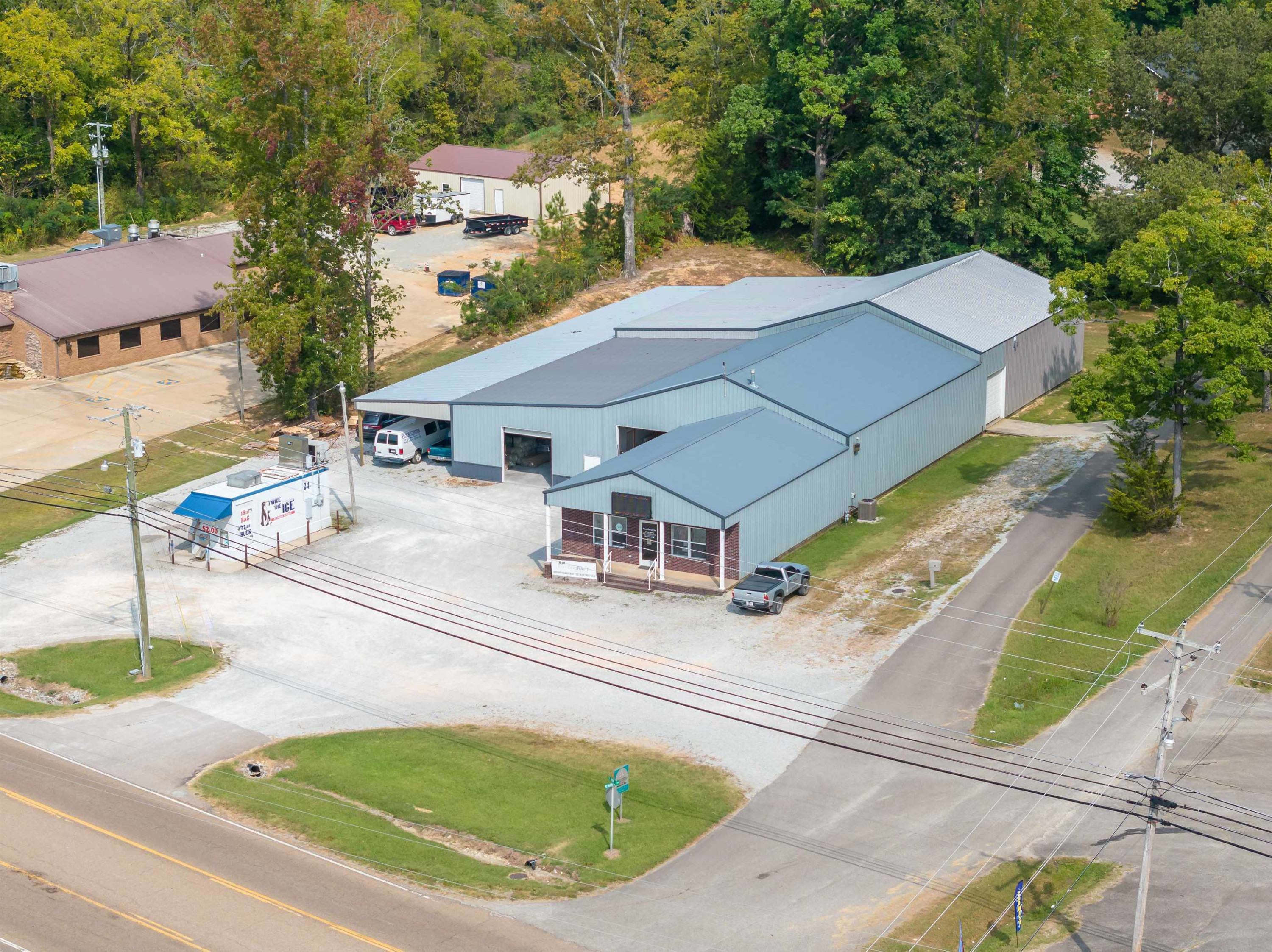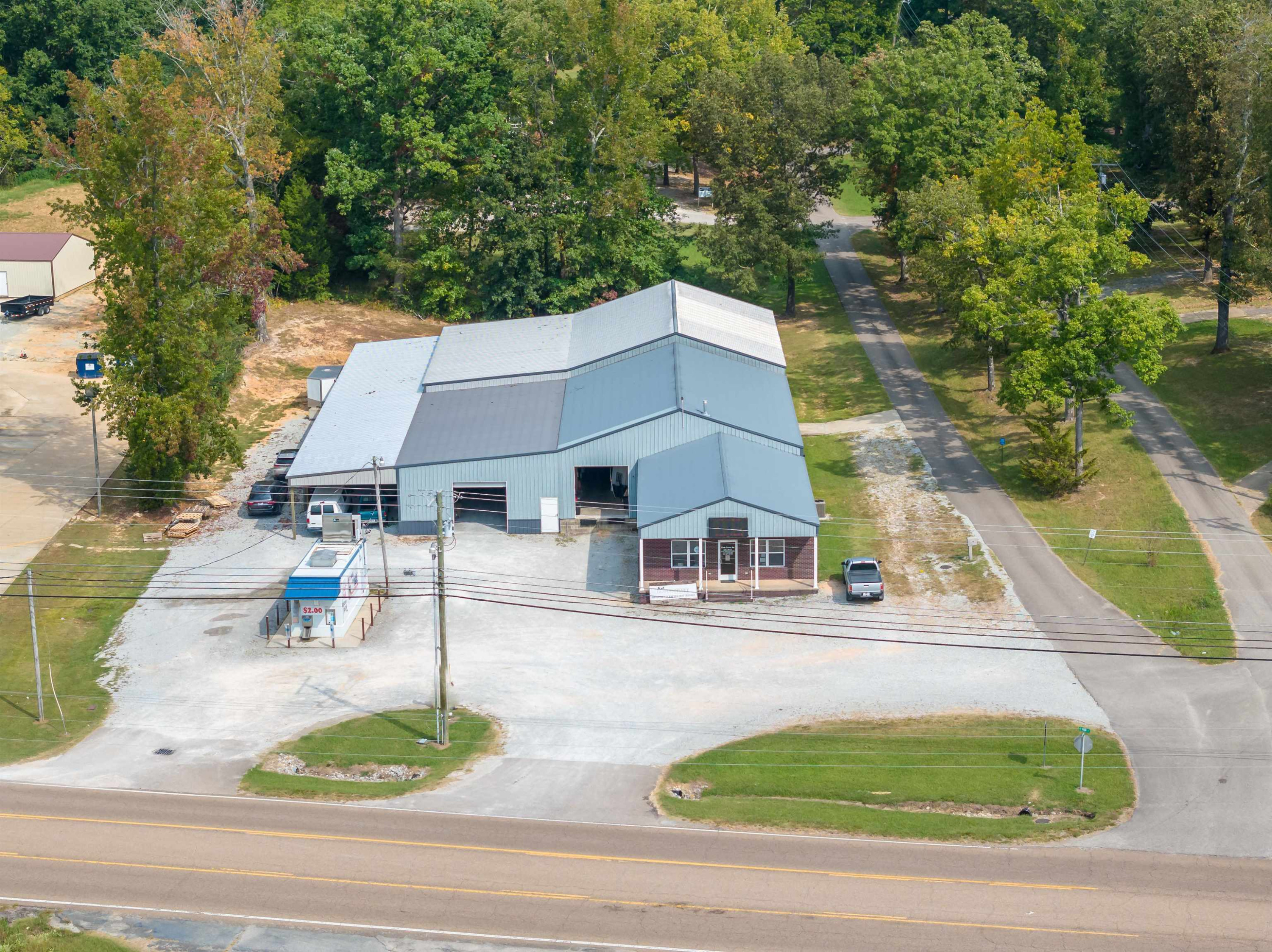 This property features: Large 15,000+ sq ft commercial building with **3500 sq ft heated/cooled showroom space**.; **Prime corner lot location with 459' total frontage** on Highway 412E/East Main St and Peavahouse Blvd.; Includes a loading dock and two roll‑up ground loading doors.