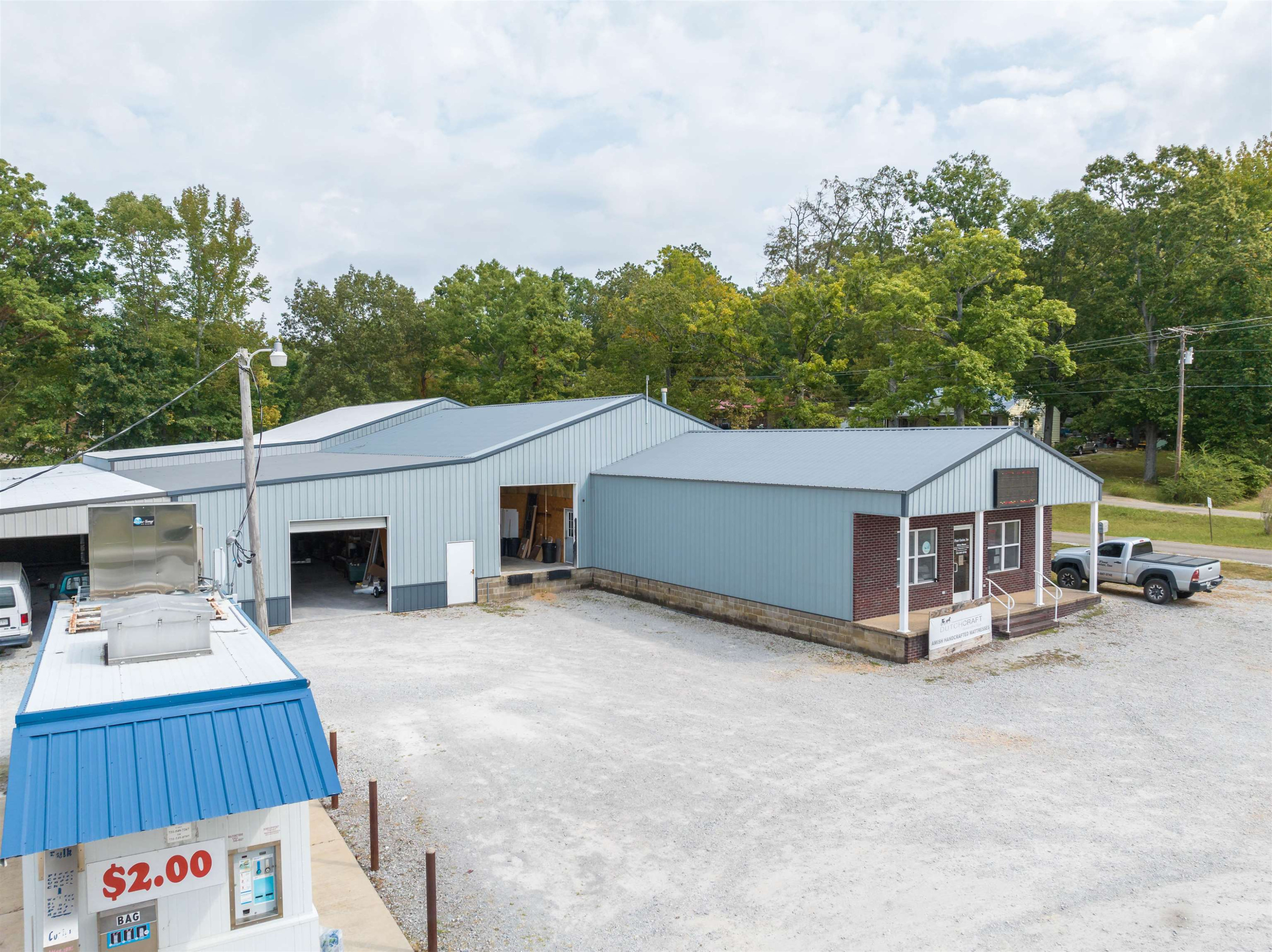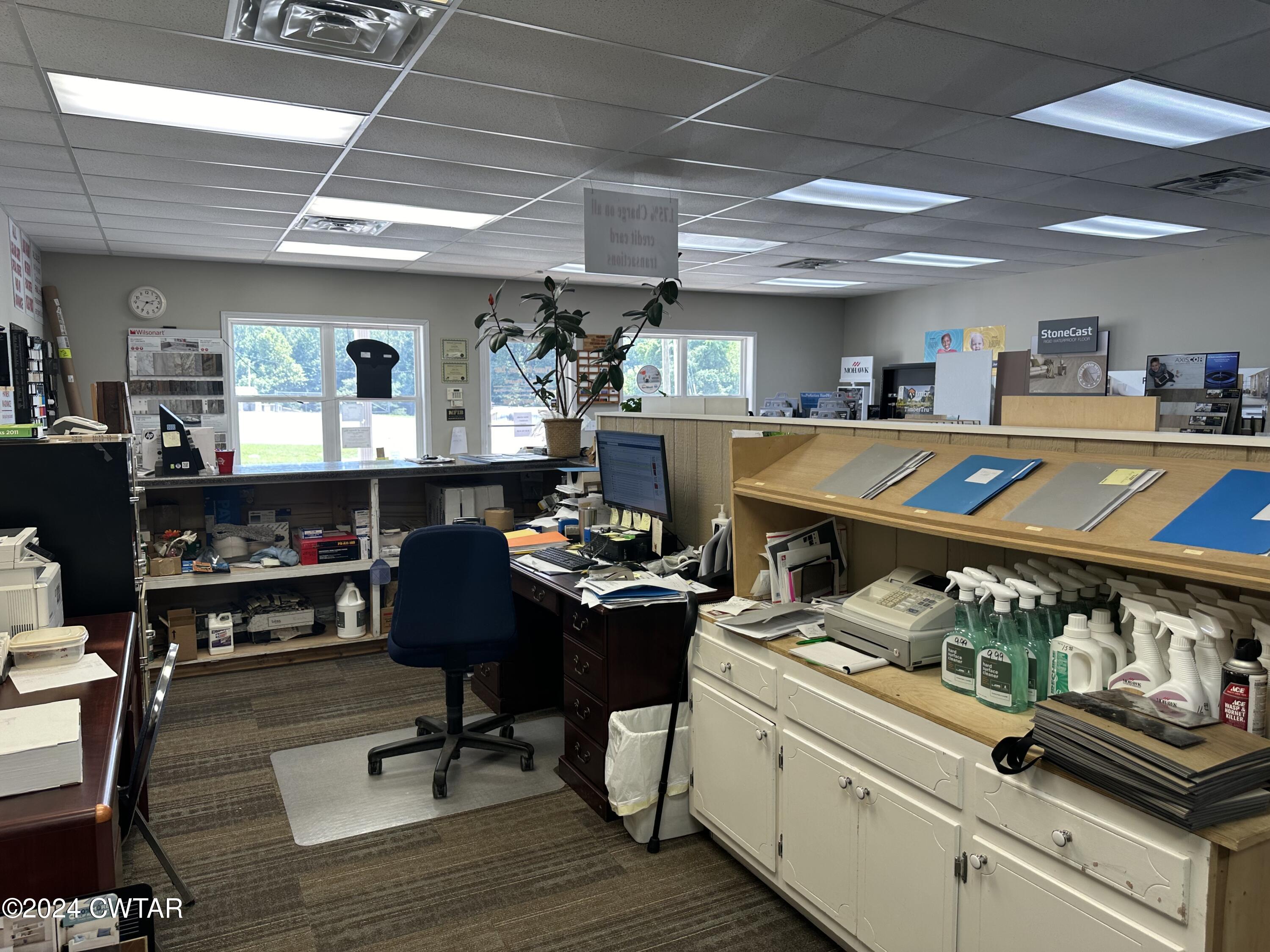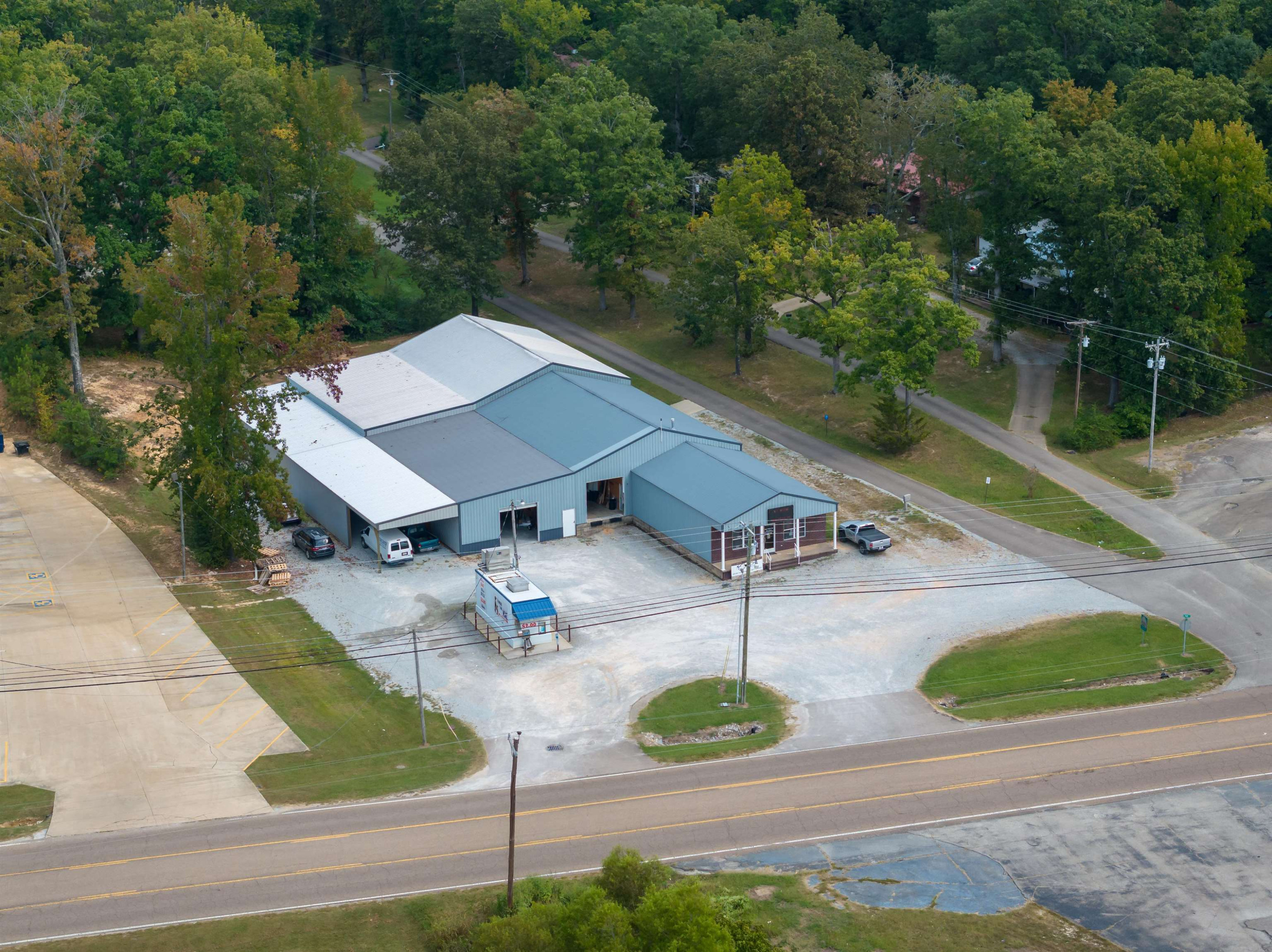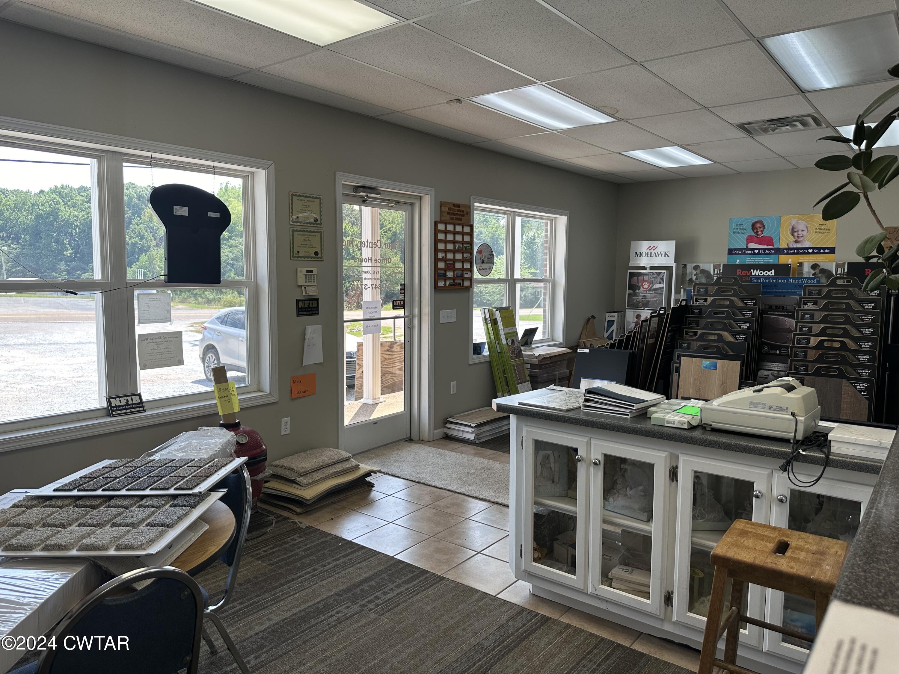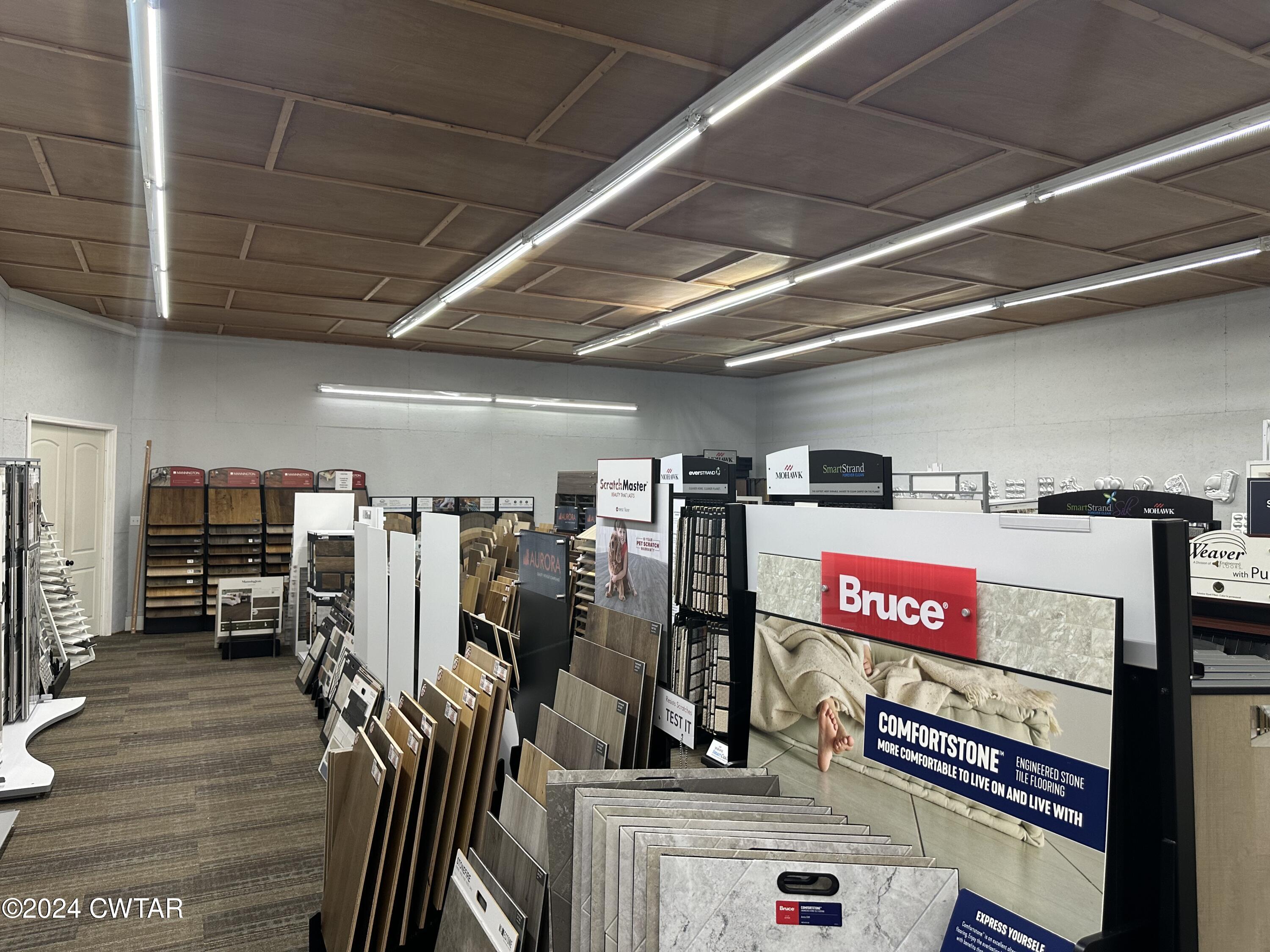 This property features: Large 15,000+ sq ft commercial building with **3500 sq ft heated/cooled showroom space**.; **Prime corner lot location with 459' total frontage** on Highway 412E/East Main St and Peavahouse Blvd.; Includes a loading dock and two roll‑up ground loading doors.