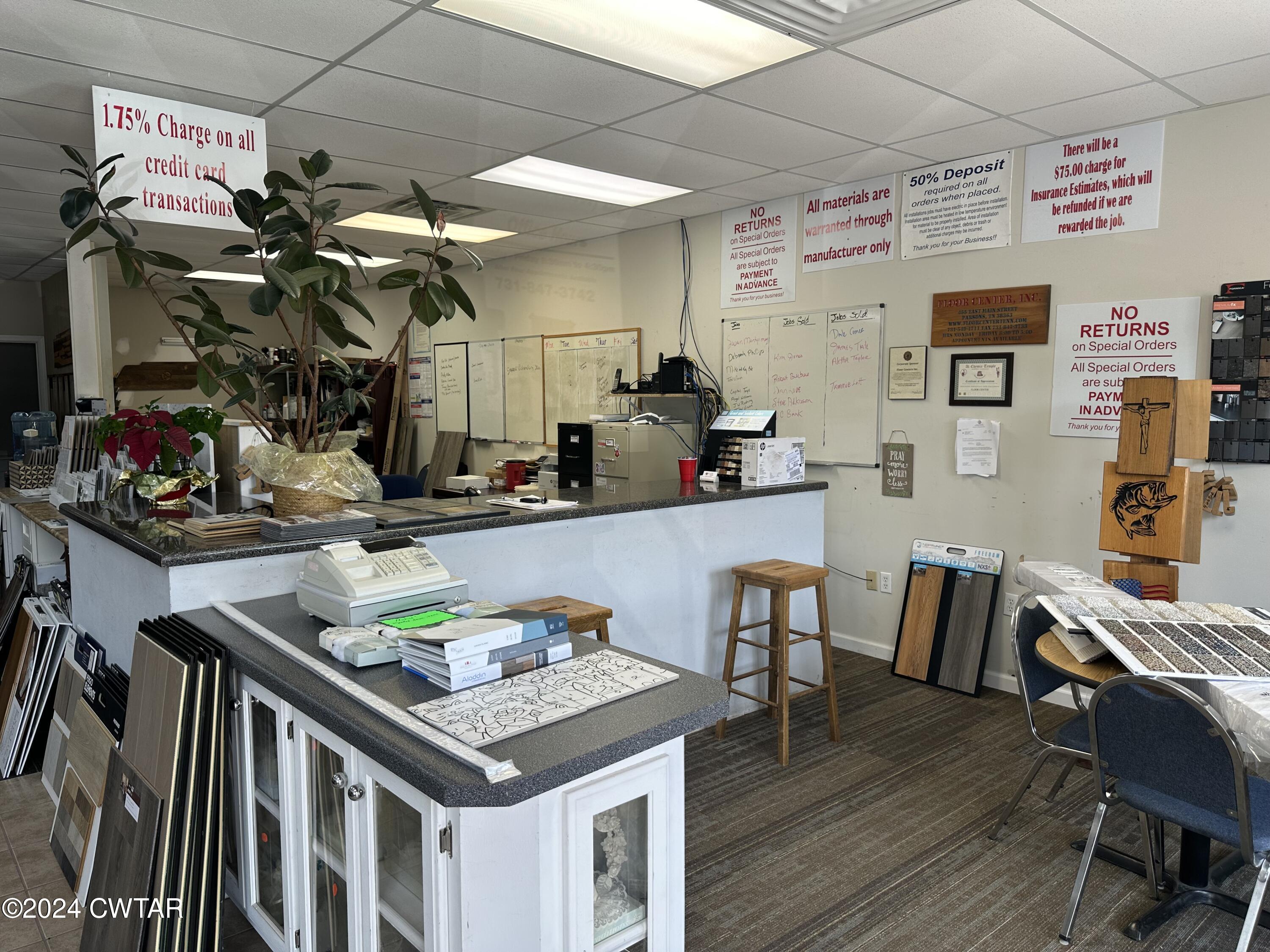 This large commercial building is located within Parsons city limits on an acre corner lot. It features 459 feet of frontage, with 156 feet along Highway 412E/East Main St and 303 feet along Peavahouse Blvd. The building encompasses over 15,000 square feet under roof, including approximately 3,500 square feet of heated and cooled space and 2,400 square feet of heated warehouse space, with the remainder being unheated warehouse space. The property includes one loading dock and two roll-up ground loading doors. Currently operating as a floor covering retail and installation business, the building offers potential for various uses such as retail, service, restaurant, or venue. The pole barn portion of the building could be removed to create additional parking or renovated for rentals. The property is located 5 miles from the TN River, 15 miles from I-40, and between Memphis and Nashville.